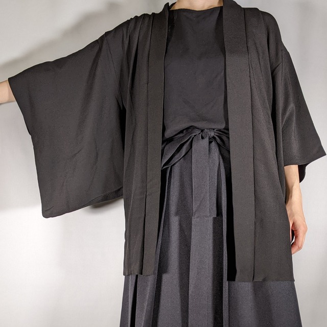 【14487】 ヴィンテージ 夏物羽織 黒 無地 シンプル 和洋折衷コーデ / Japanese vintage kimono black sheer haori jacket
