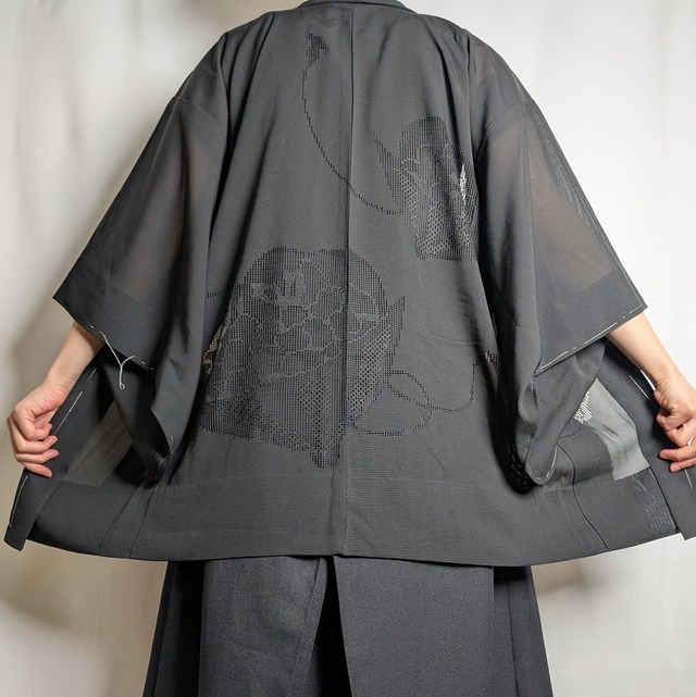 【14490】 ヴィンテージ 夏物羽織 黒 刺繍 和洋折衷コーデ / Japanese vintage kimono black sheer haori jacket
