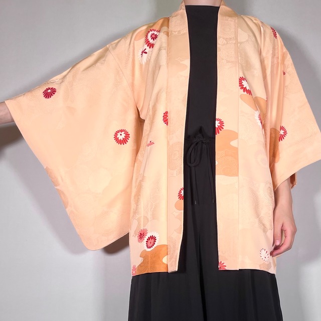 【12215】 古着 ヴィンテージ 色羽織 クリーム色 菊模様 レトロ