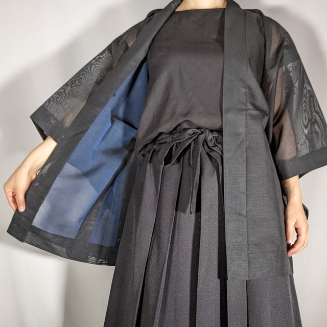 【14166】 ヴィンテージ 夏物羽織 黒 透け感 和洋折衷コーデ / Japanese vintage kimono haori jacket sheer for summer