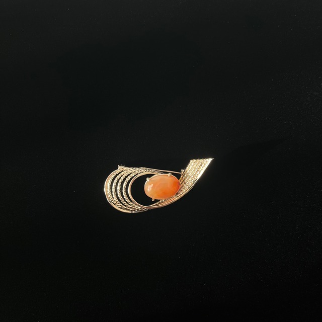 【13544】 アンティーク ブローチ シルバー 天然石 オレンジ antique brooch
