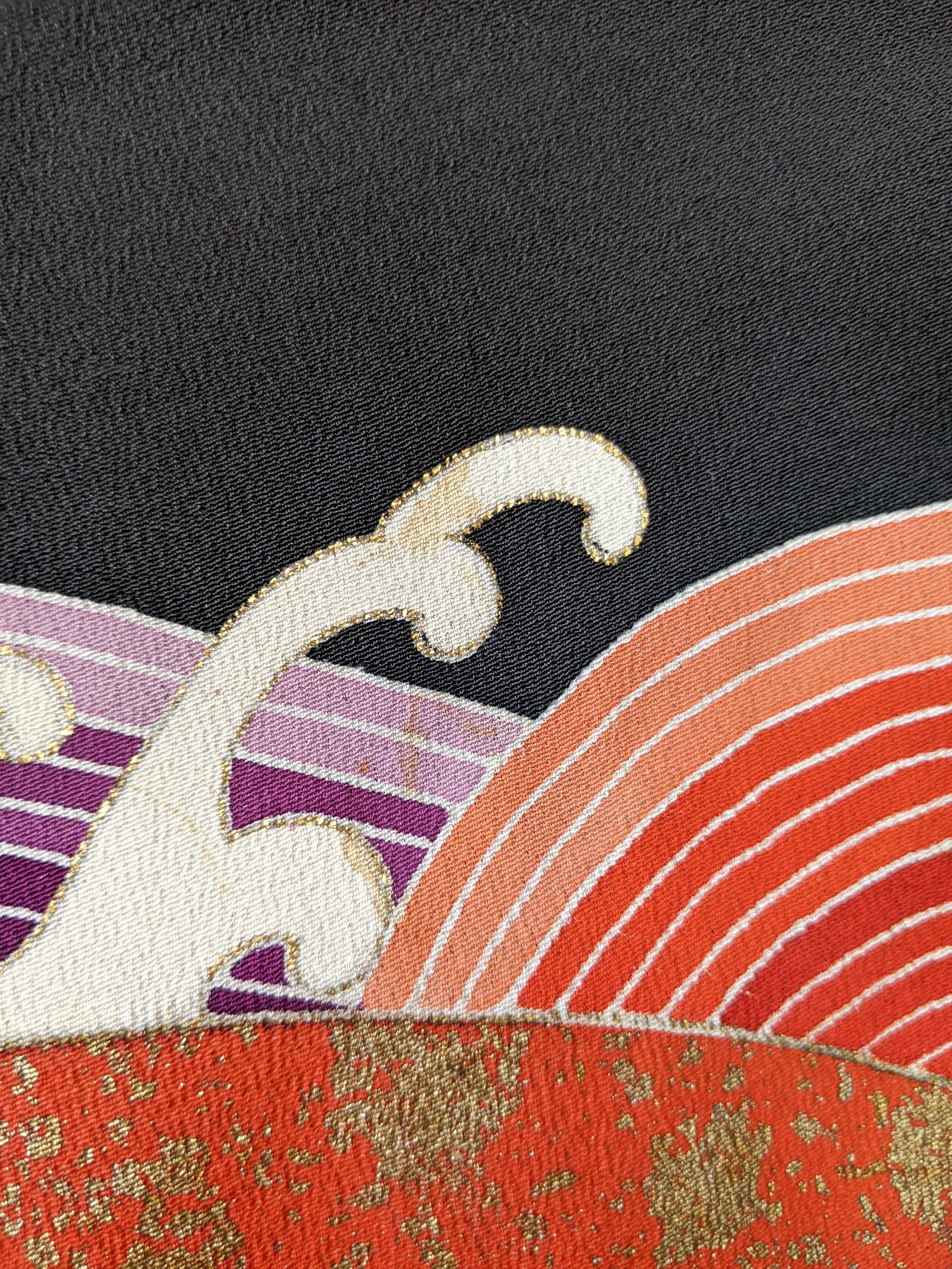 【13907】 着物リメイク 黒留袖 ロングコート 荒波模様 扇子 kimono tomesode remake long coat black