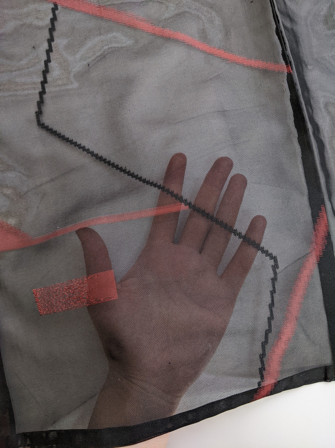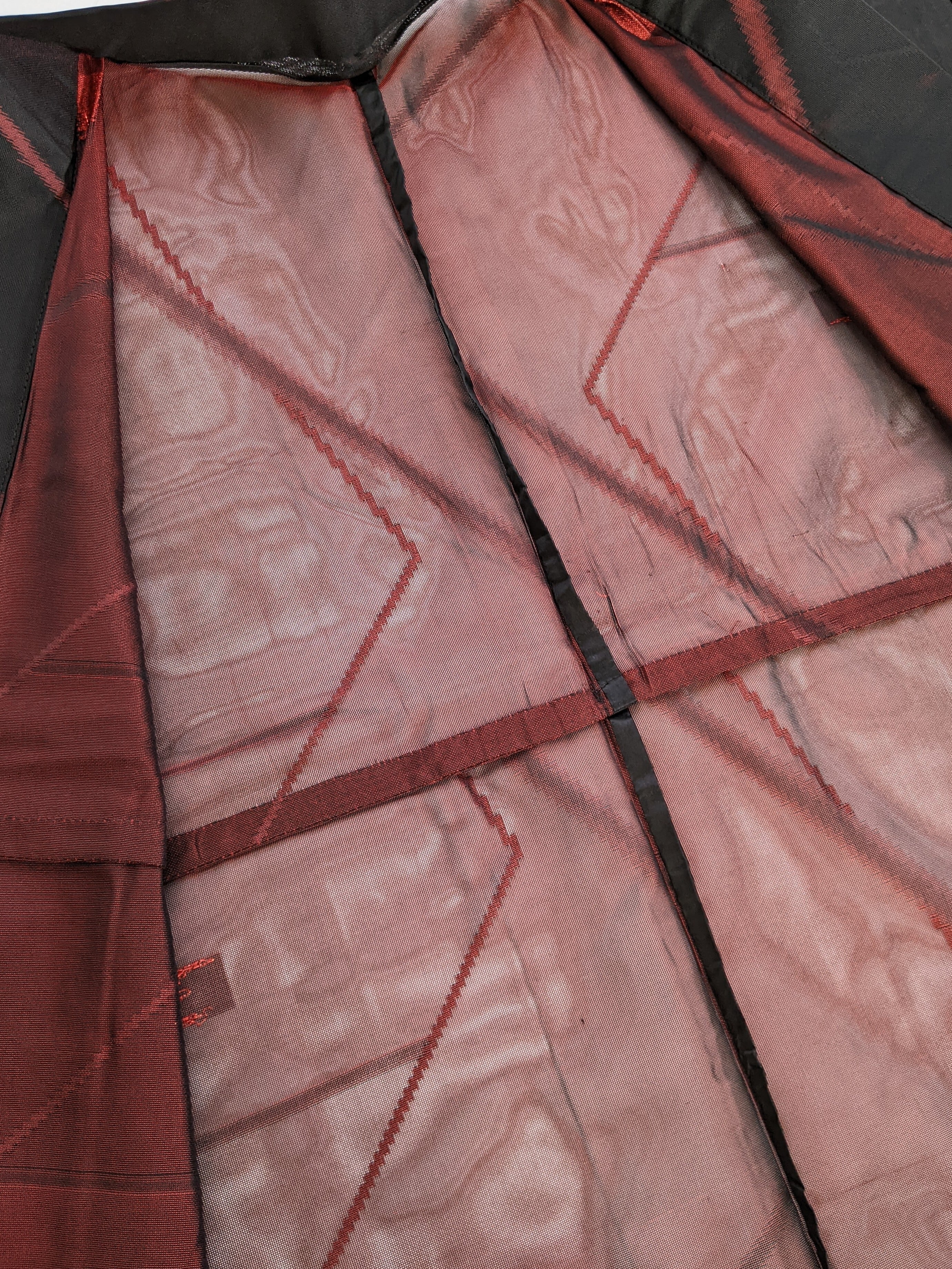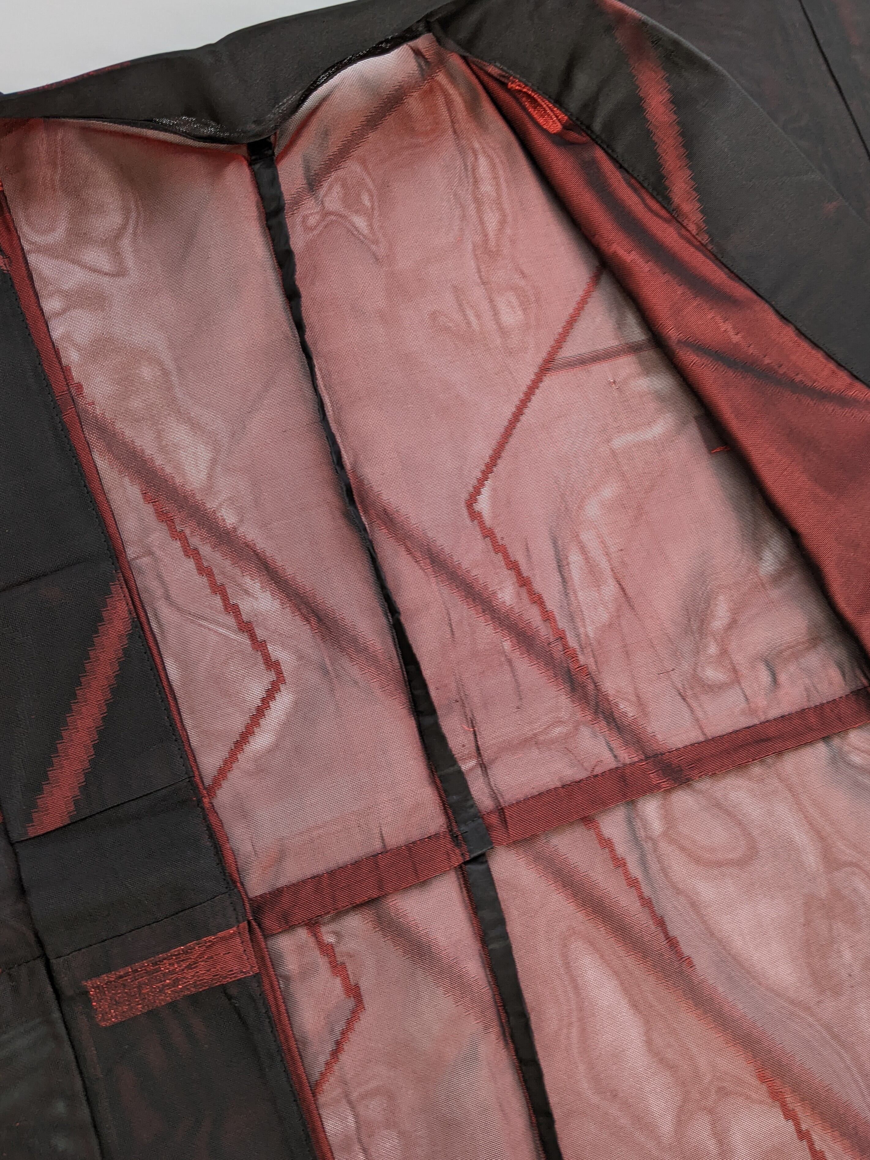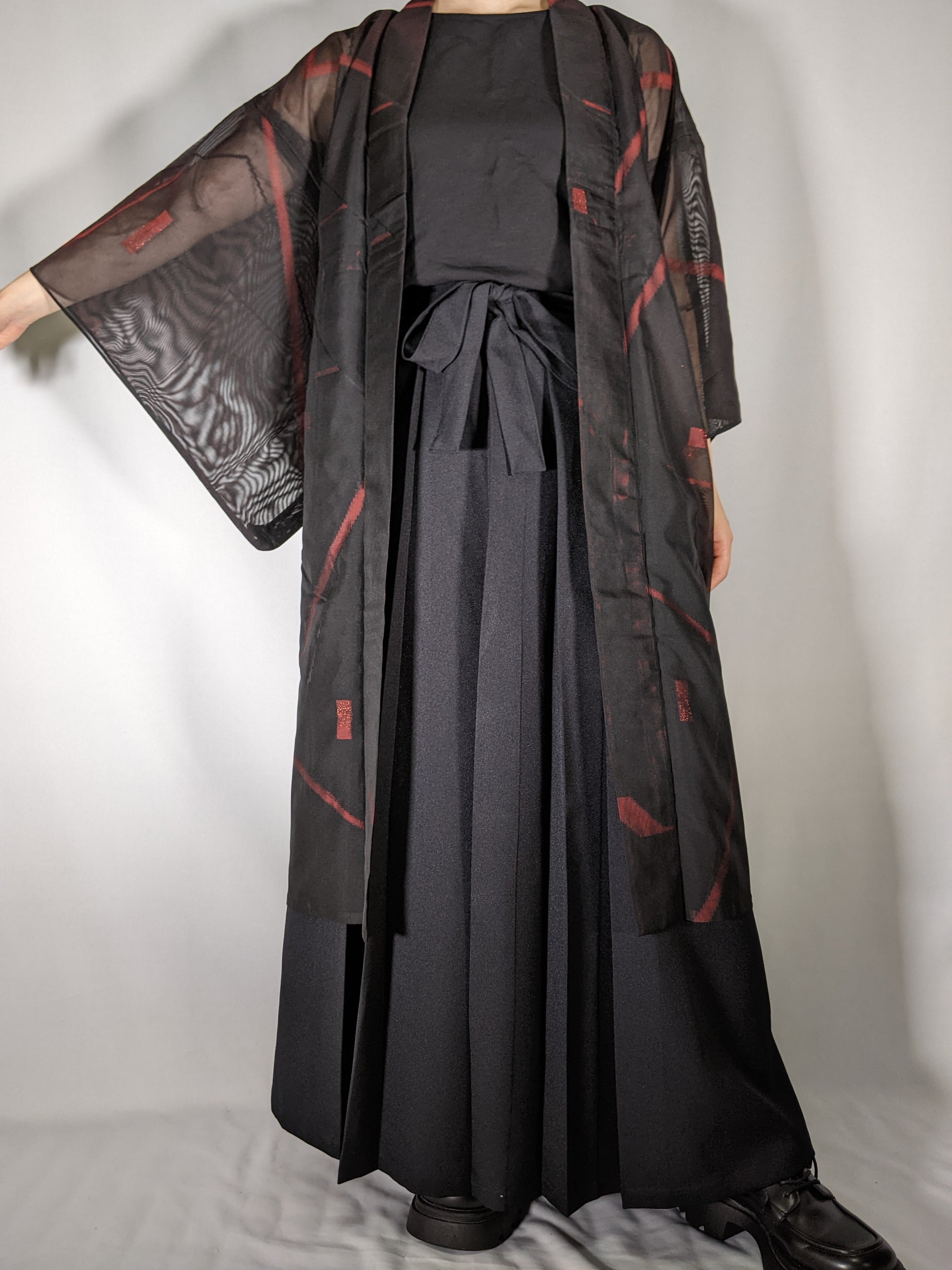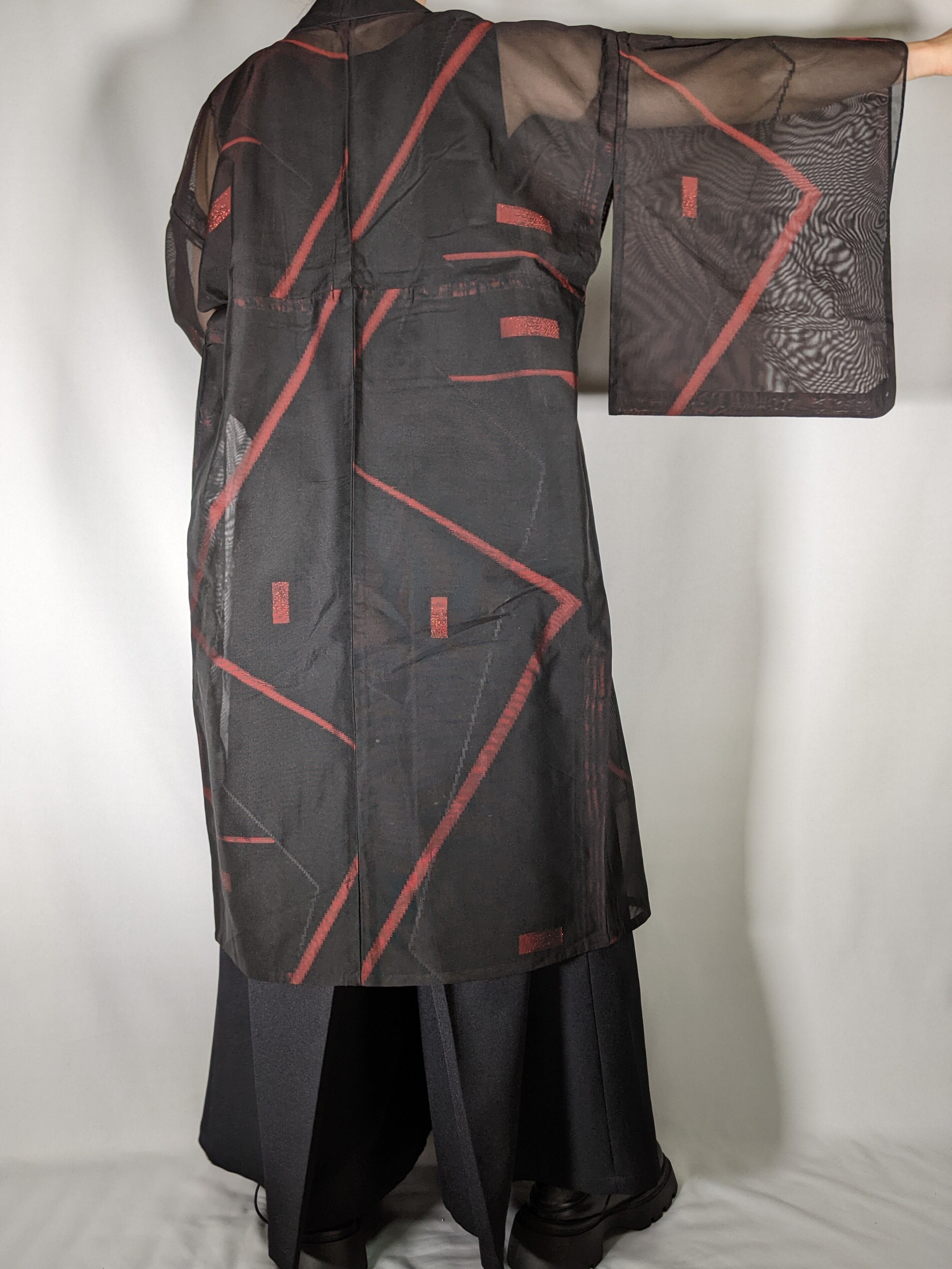【14110】 着物リメイク 夏物着物 透け感 黒 裏地赤 ロングコート kimono tomesode remake long coat black red