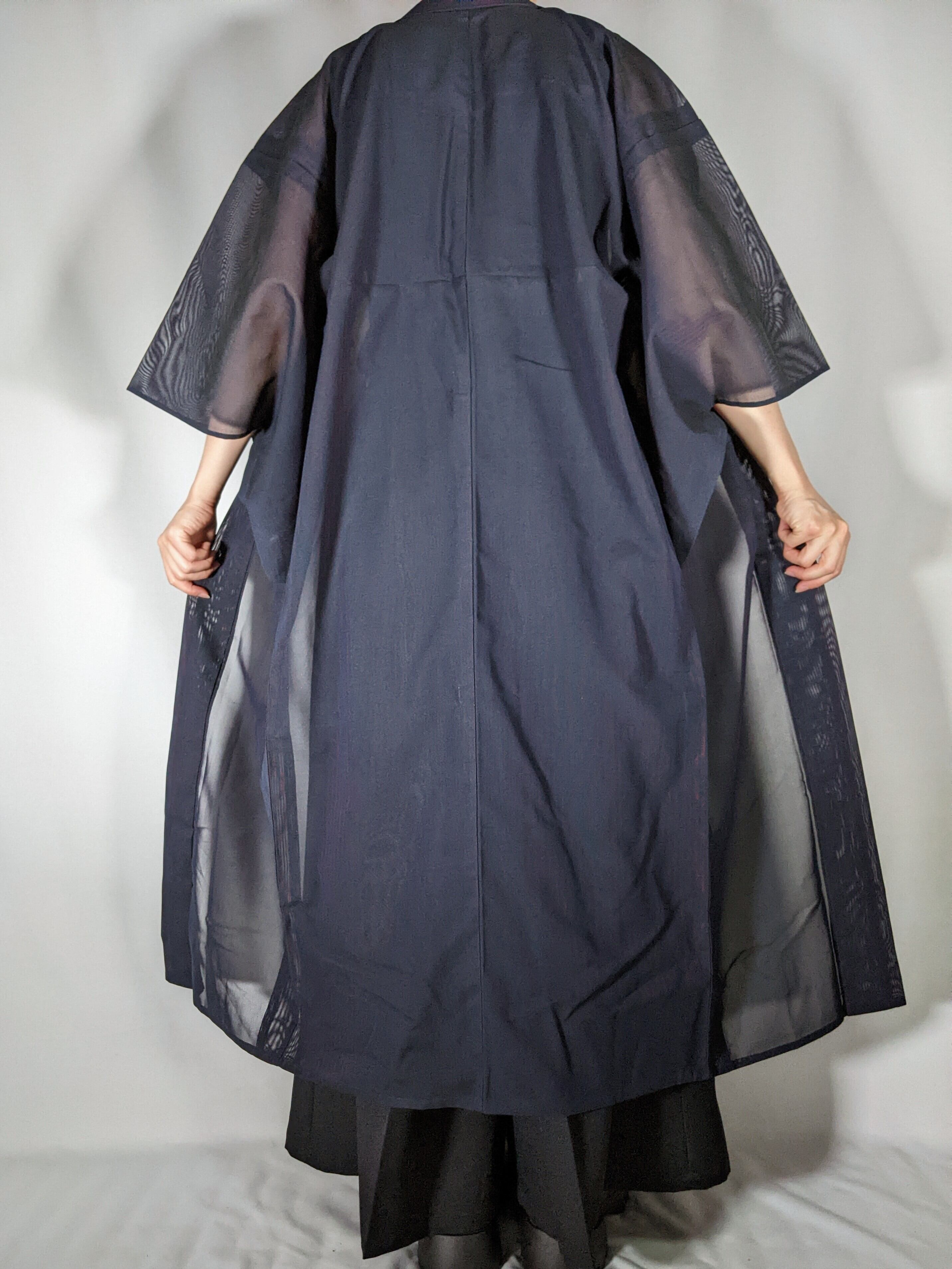 【14113】 着物リメイク 夏物着物 透け感 黒 ロングコート kimono tomesode remake long coat black