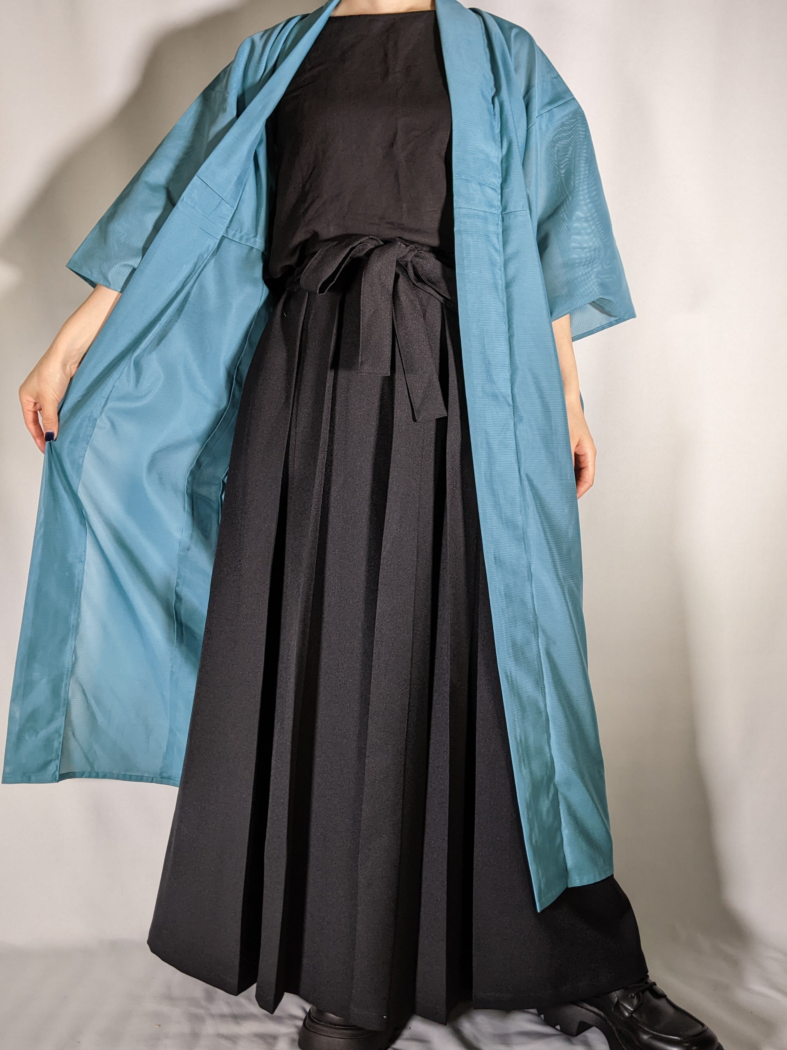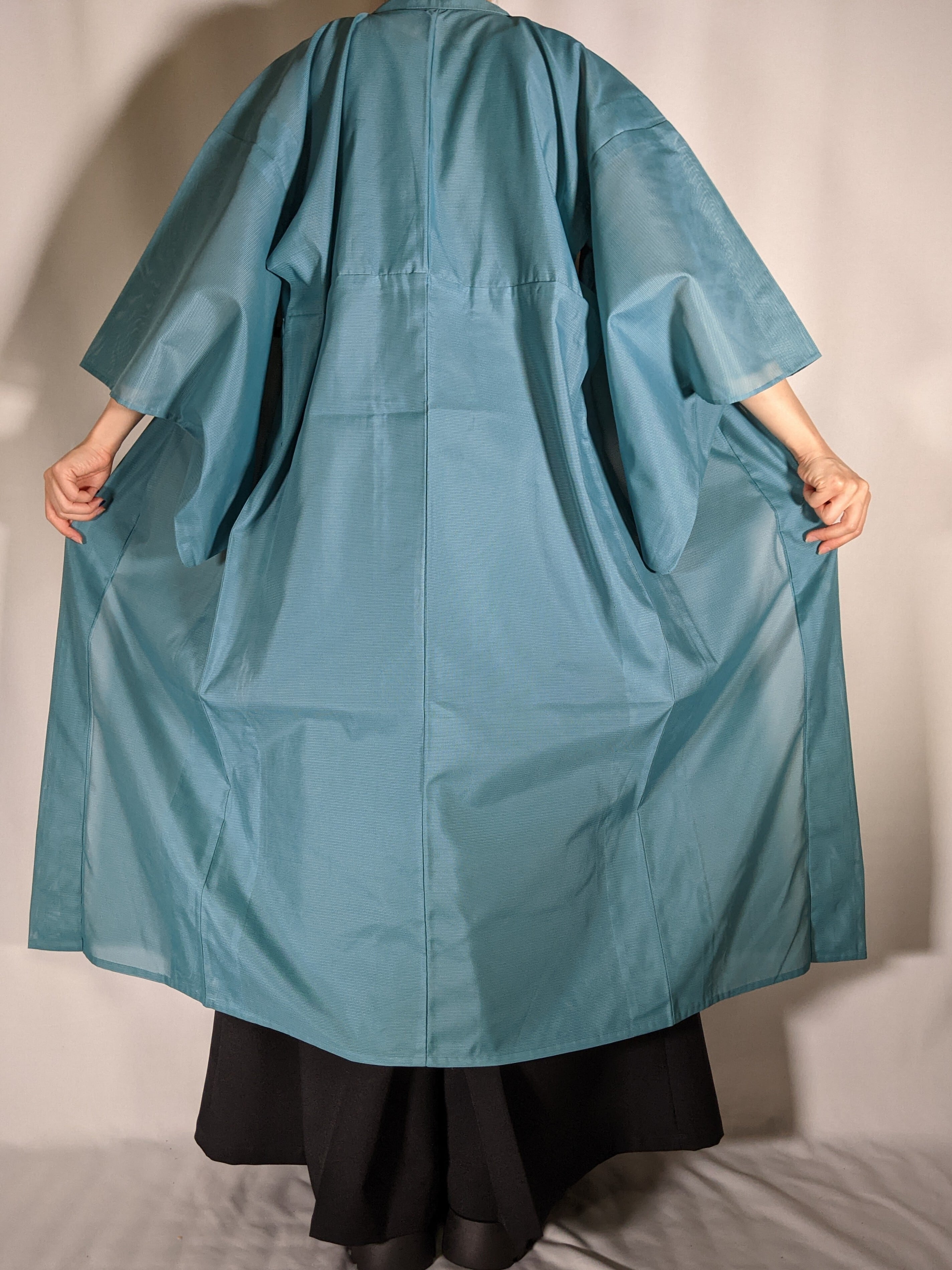 【14122】 着物リメイク 夏物着物 透け感 水色 ロングコート kimono tomesode remake long coat light blue