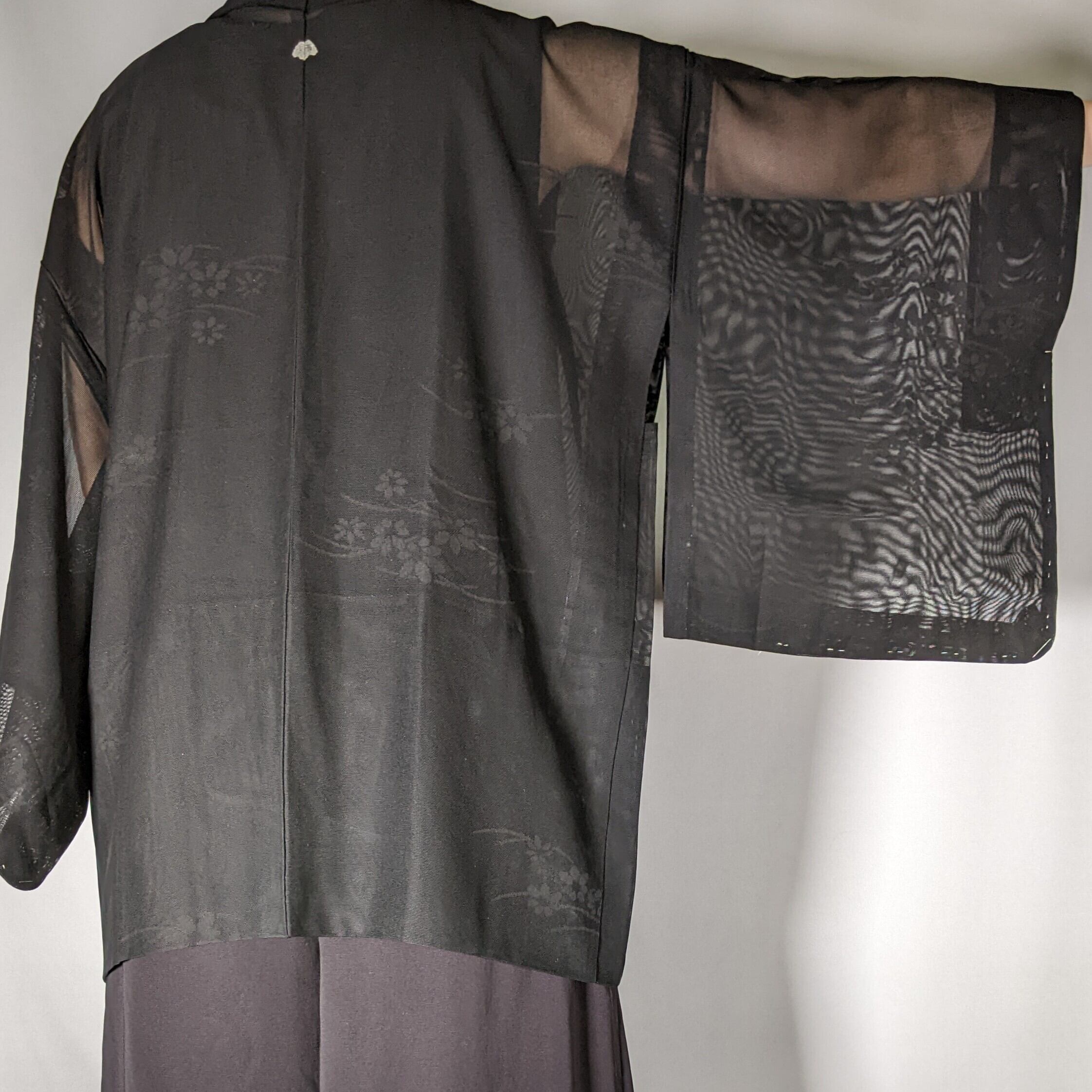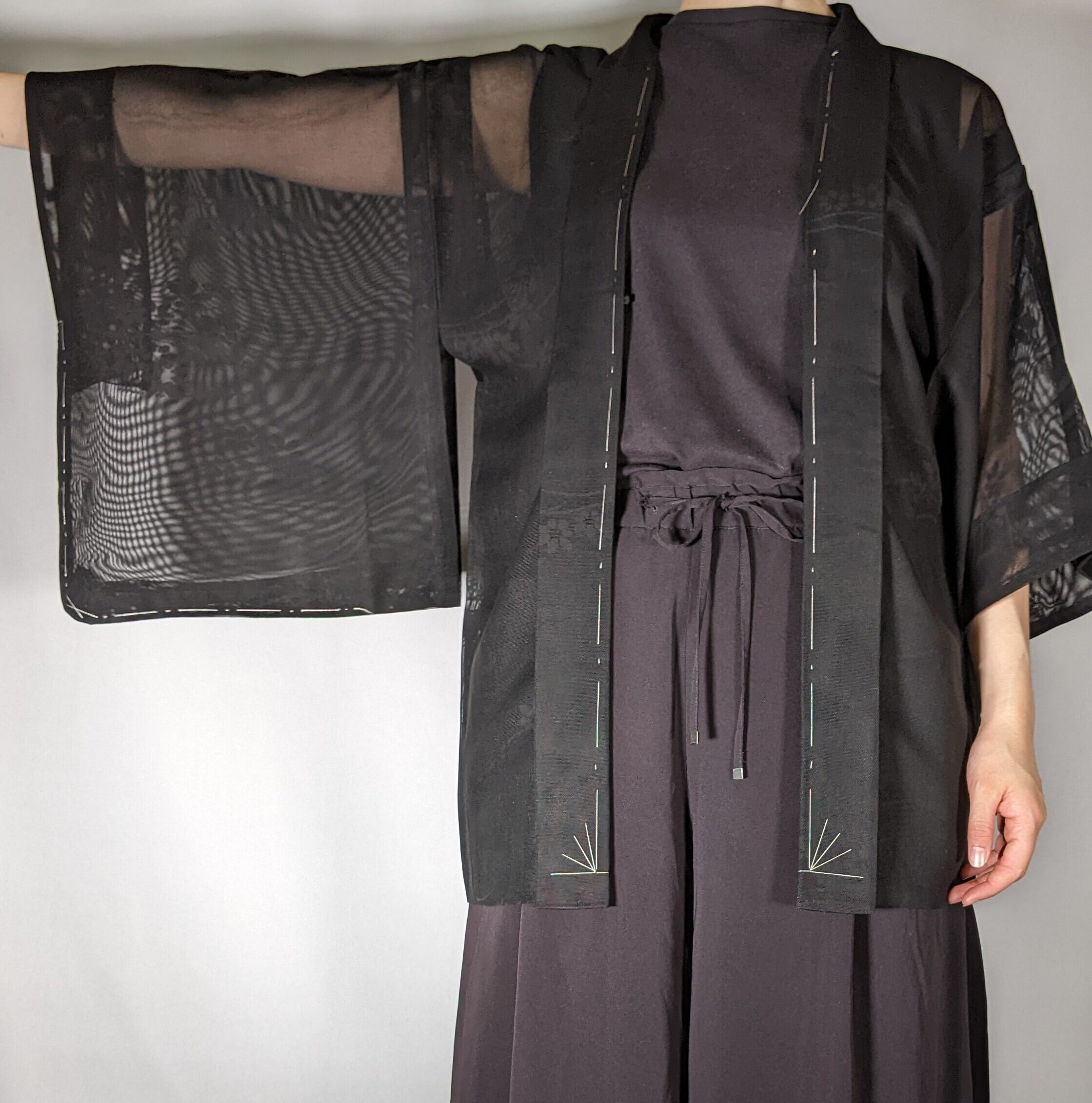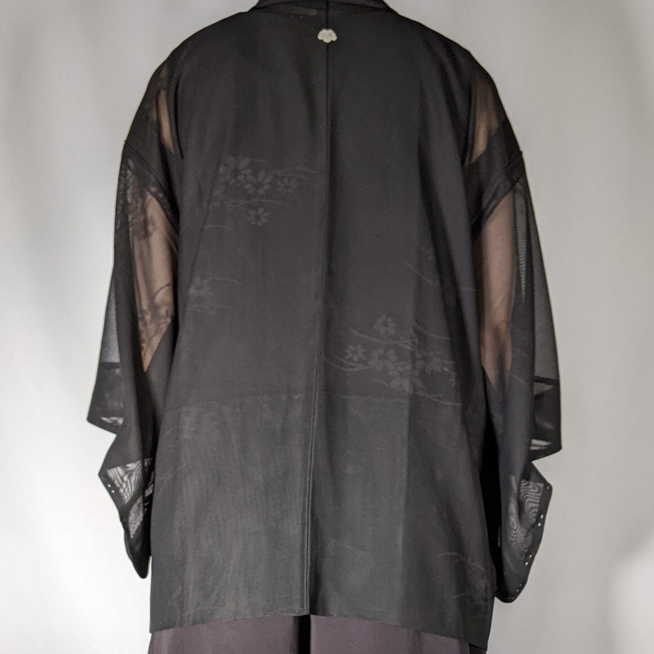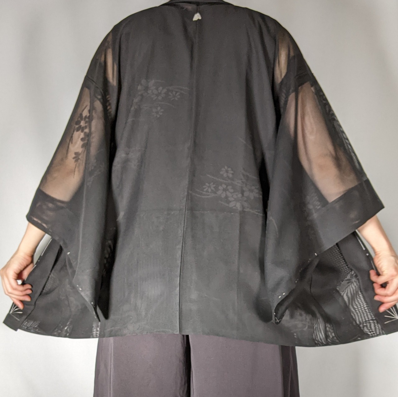 【14143】 ヴィンテージ 夏物羽織 黒 透け感 花模様 和洋折衷コーデ / Japanese vintage kimono haori jacket sheer for summer