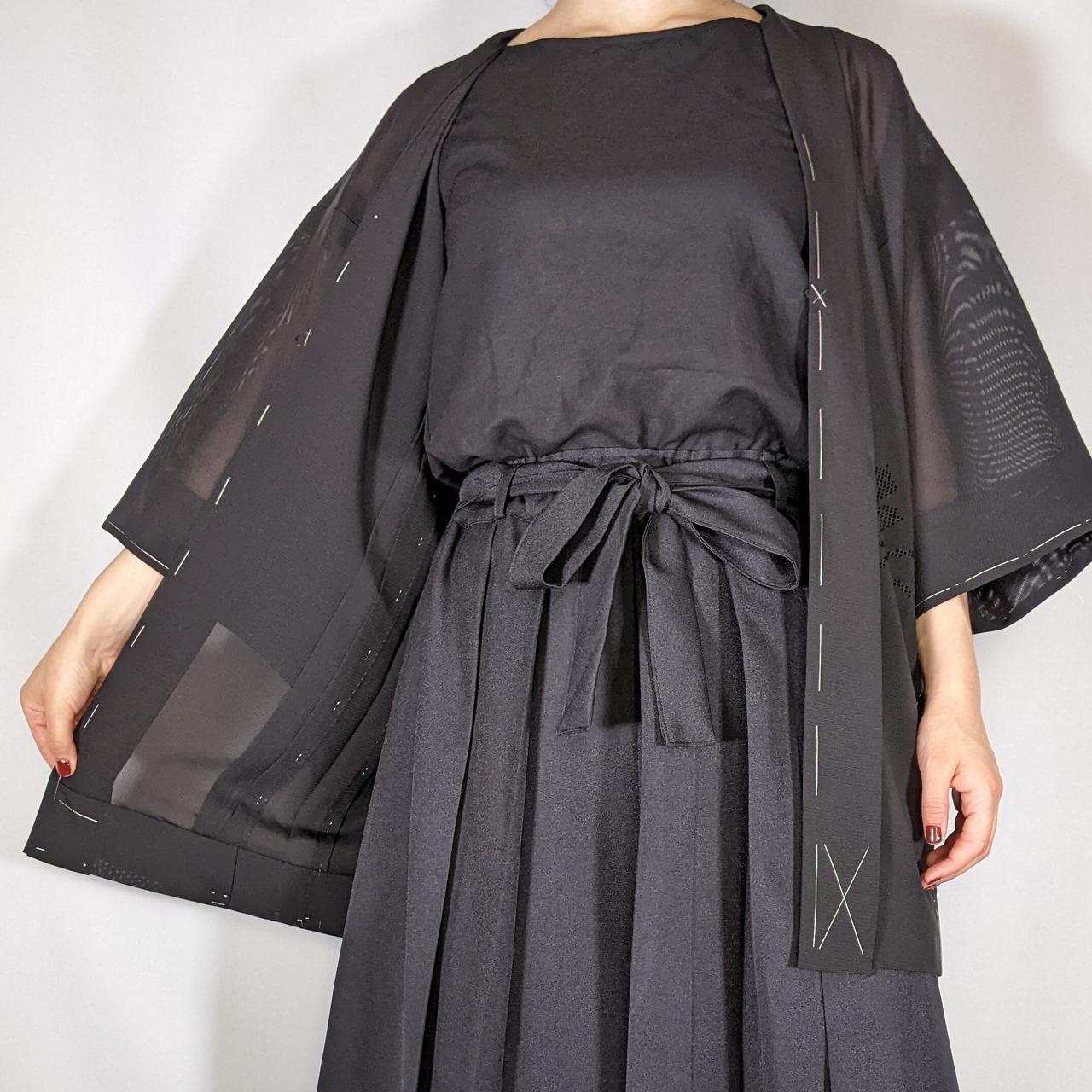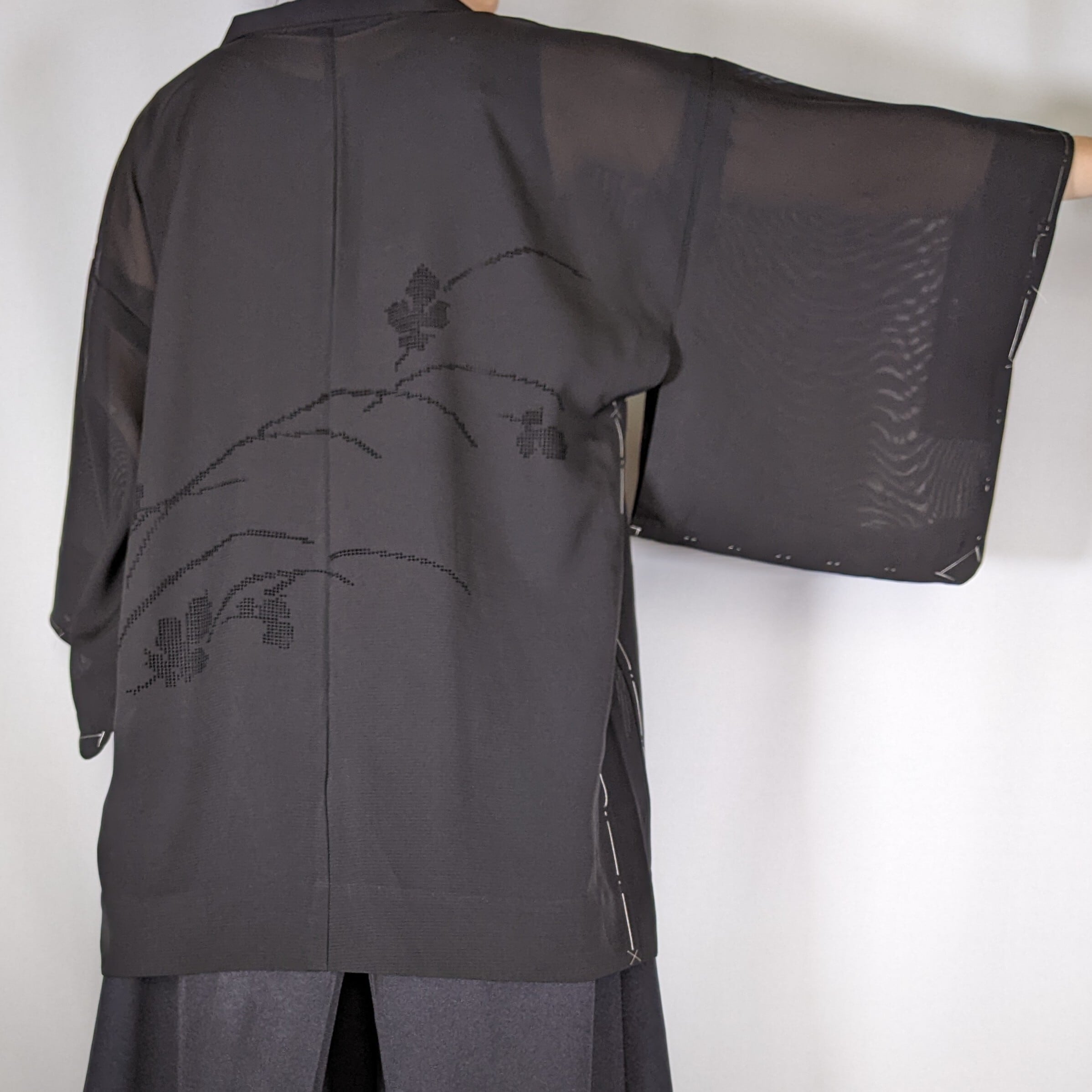 【14145】 ヴィンテージ 夏物羽織 黒 透け感 カットワーク 和洋折衷コーデ / Japanese vintage kimono haori jacket sheer for summer