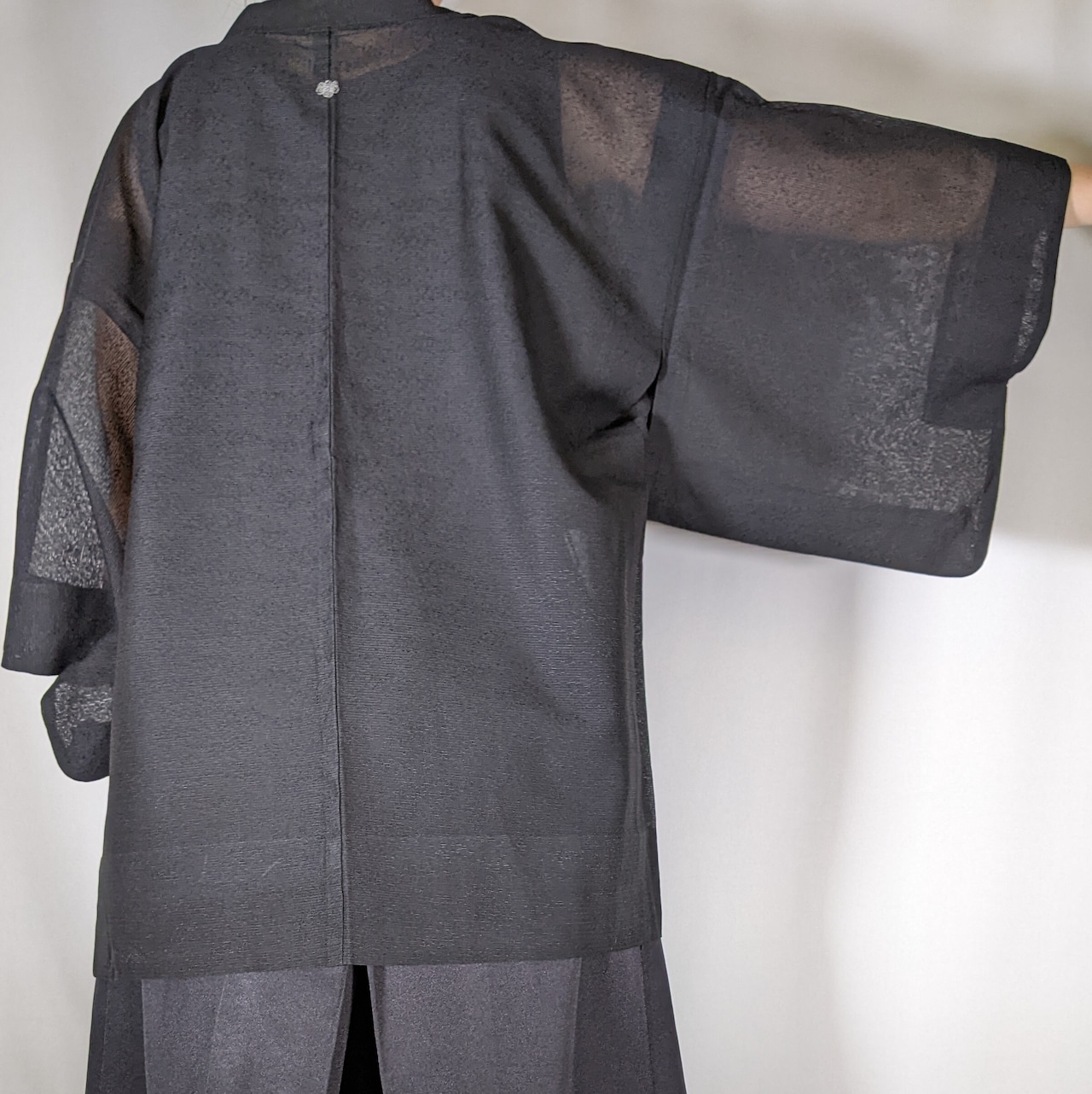 【14163】 ヴィンテージ 夏物羽織 黒 シンプル 無地 透け感 和洋折衷コーデ / Japanese vintage kimono haori jacket sheer for summer