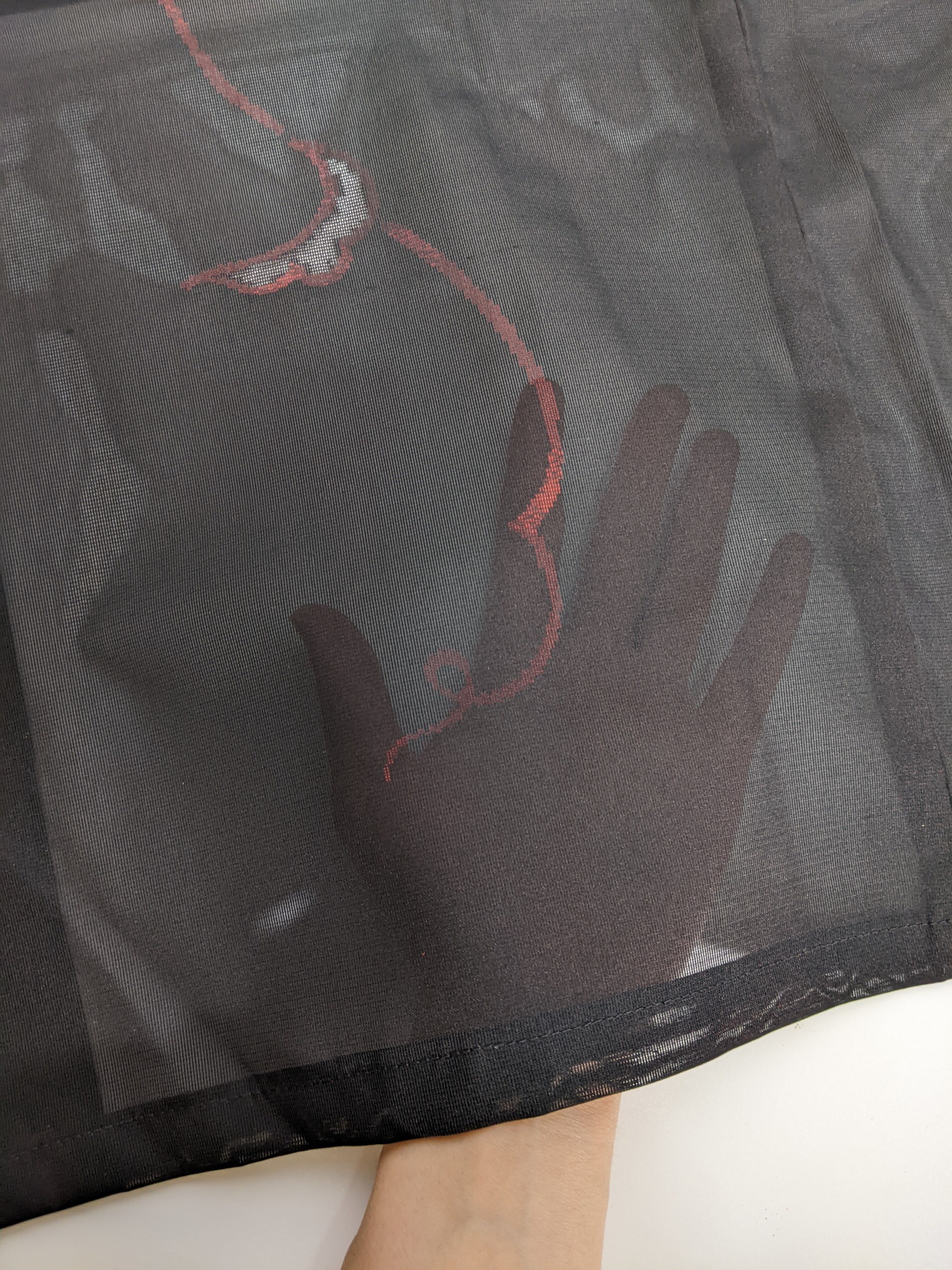 Also, the luxurious hem pattern was left uncut, and the sleeves were left as they were, without being remade to retain the kimono-like appearance.