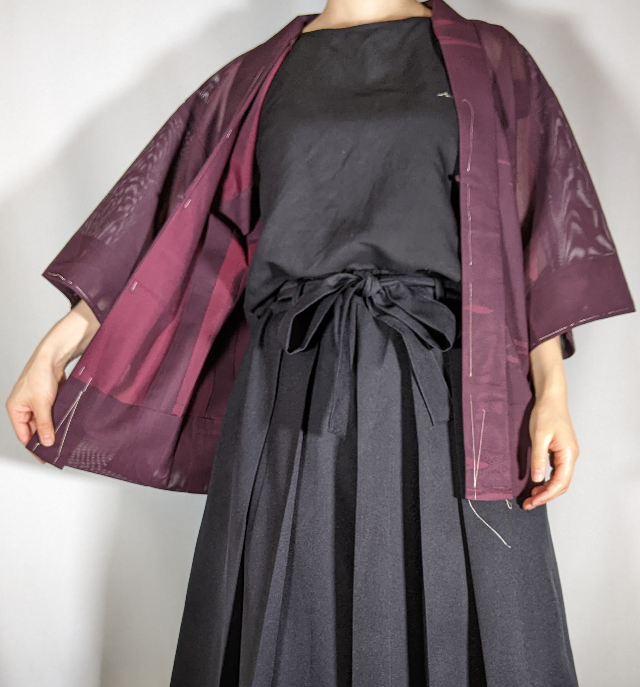 【14173】 ヴィンテージ 夏物羽織 紫 透け感 和洋折衷コーデ / Japanese vintage kimono haori jacket sheer for summer