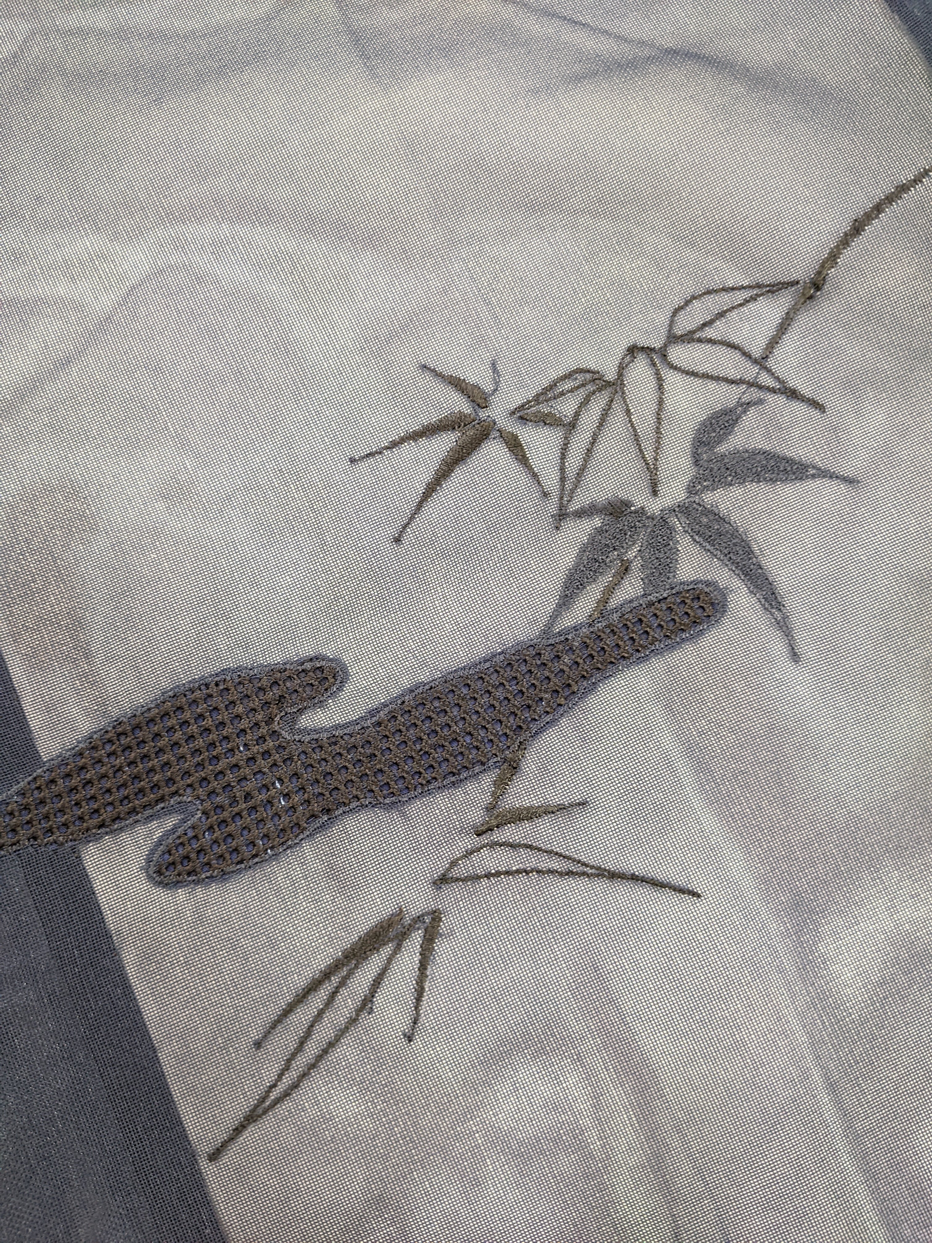 【14229】 ヴィンテージ 夏物羽織 青 刺繍 笹模様 透け感 和洋折衷コーデ / Japanese vintage kimono haori jacket sheer for summer