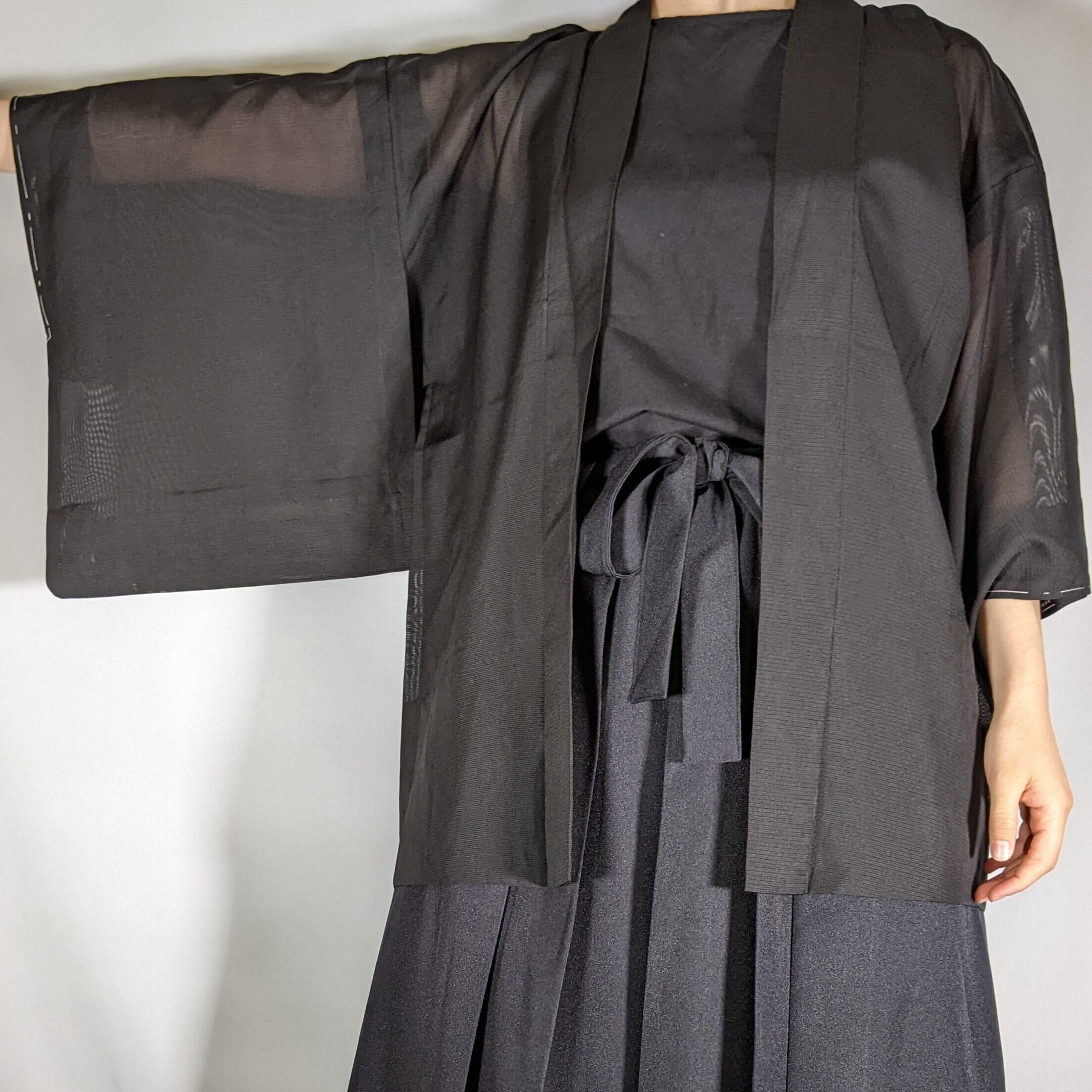 【14233】 ヴィンテージ 夏物羽織 黒 紅葉 透け感 和洋折衷コーデ / Japanese vintage kimono haori jacket sheer for summer