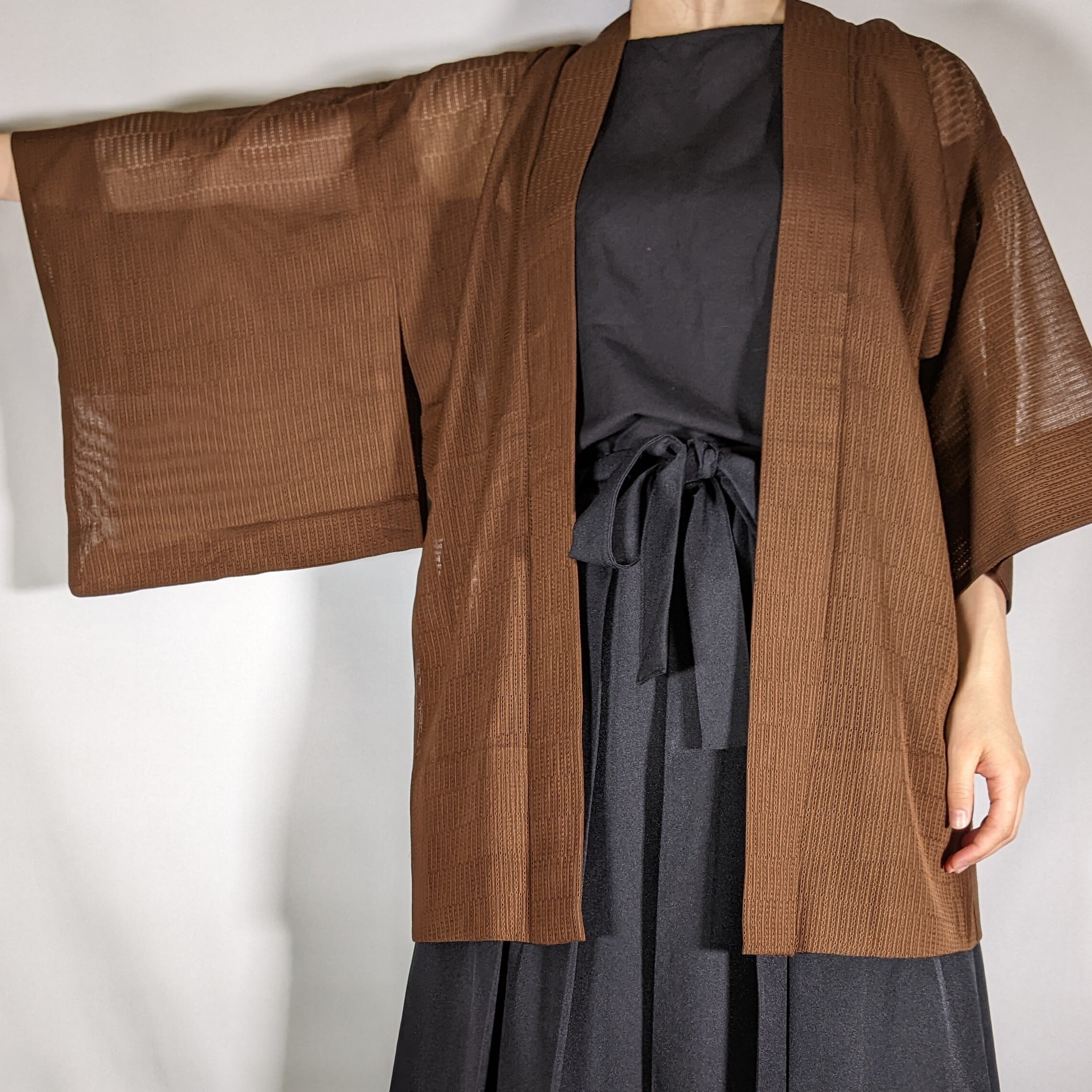 【14237】 ヴィンテージ 夏物羽織 茶 透け感 和洋折衷コーデ / Japanese vintage kimono haori jacket sheer for summer
