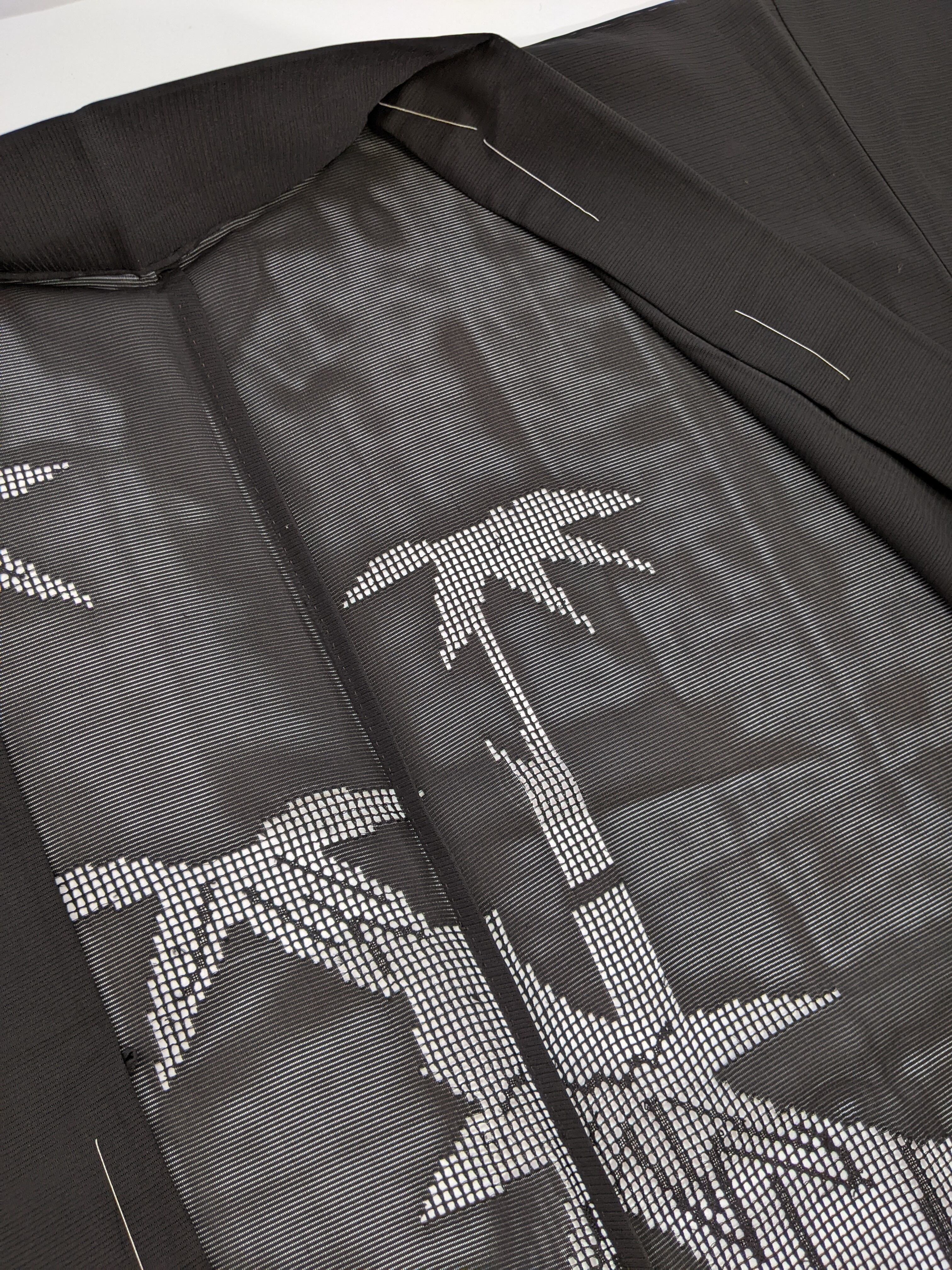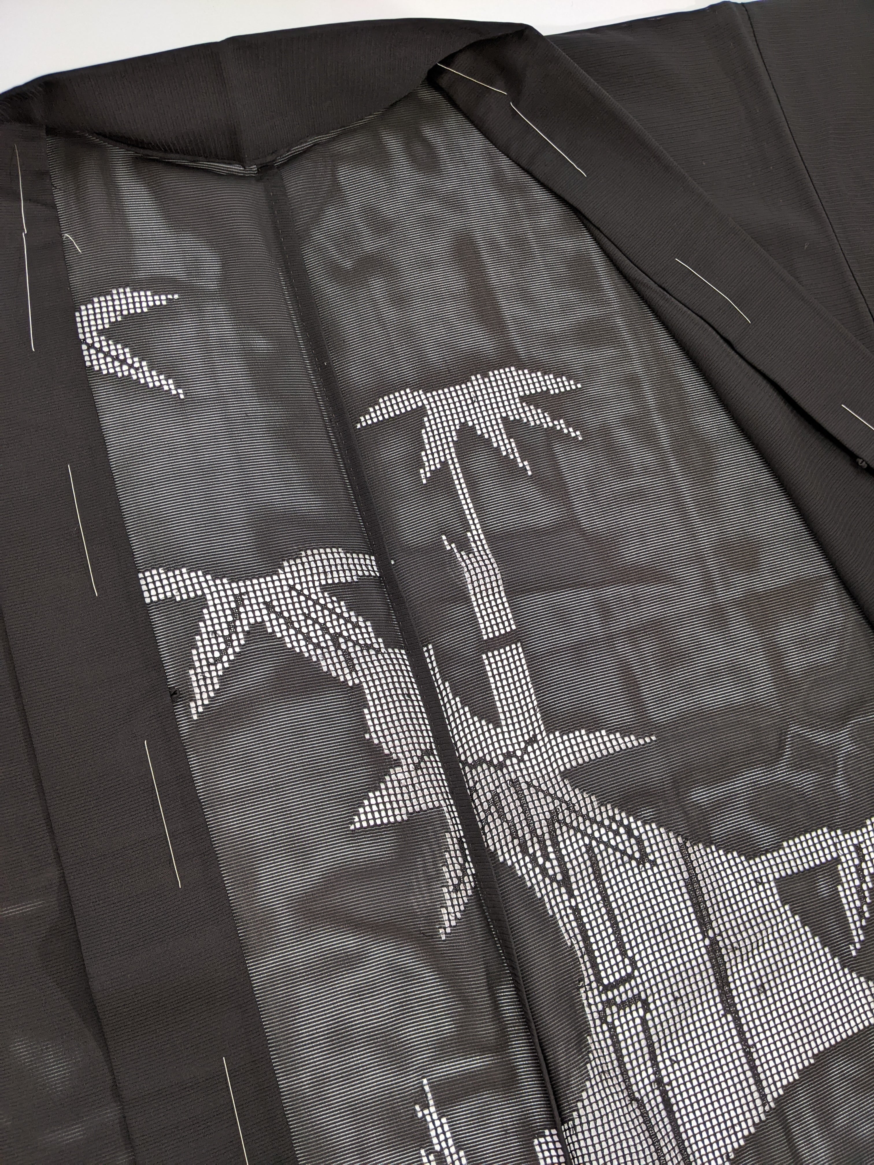 【14244】 ヴィンテージ 夏物羽織 黒 カットワーク 笹模様 透け感 和洋折衷コーデ / Japanese vintage kimono haori jacket sheer for summer