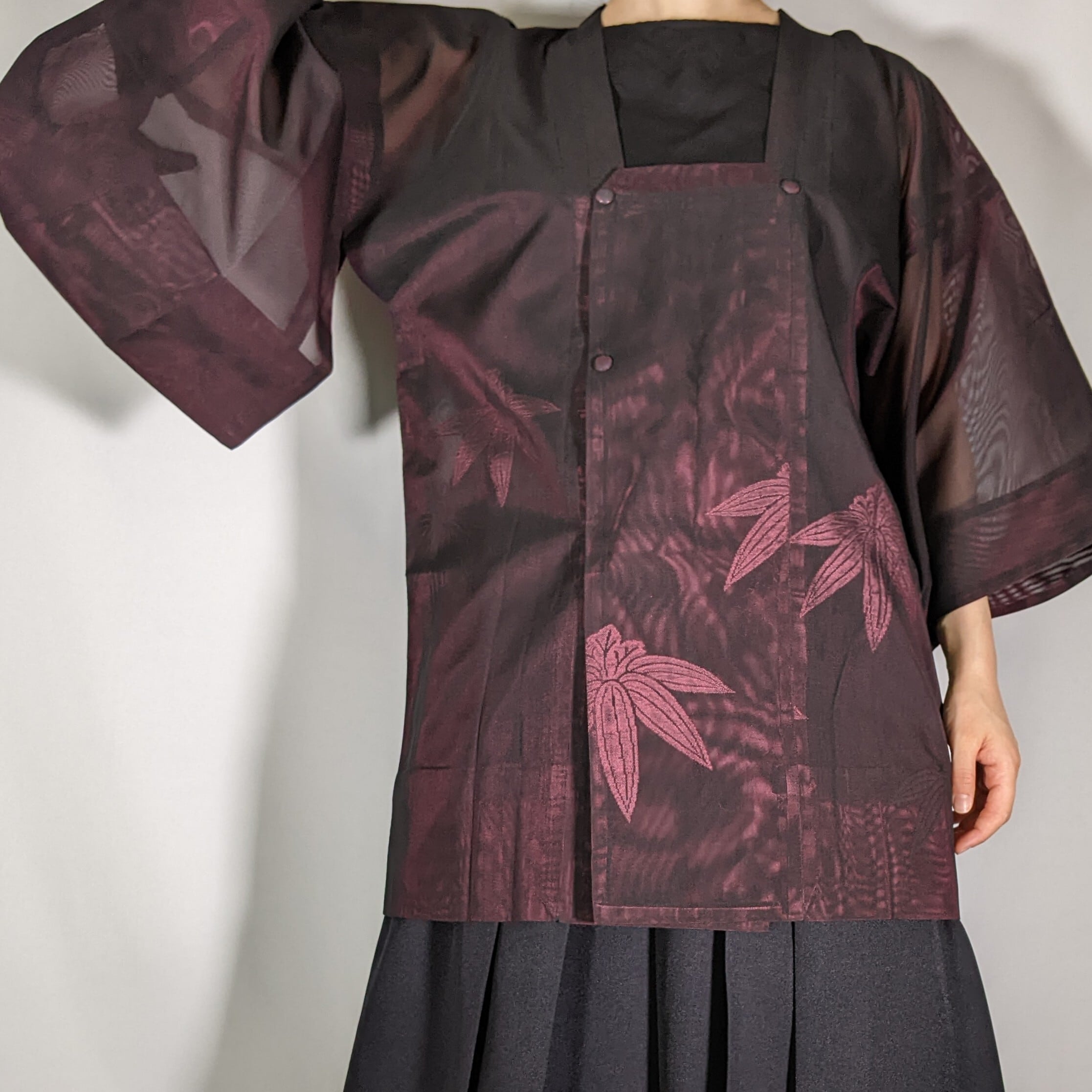 【14255】 ヴィンテージ 夏物羽織 道行 黒 裏地ピンク 透け感 和洋折衷コーデ / Japanese vintage kimono haori jacket sheer for summer