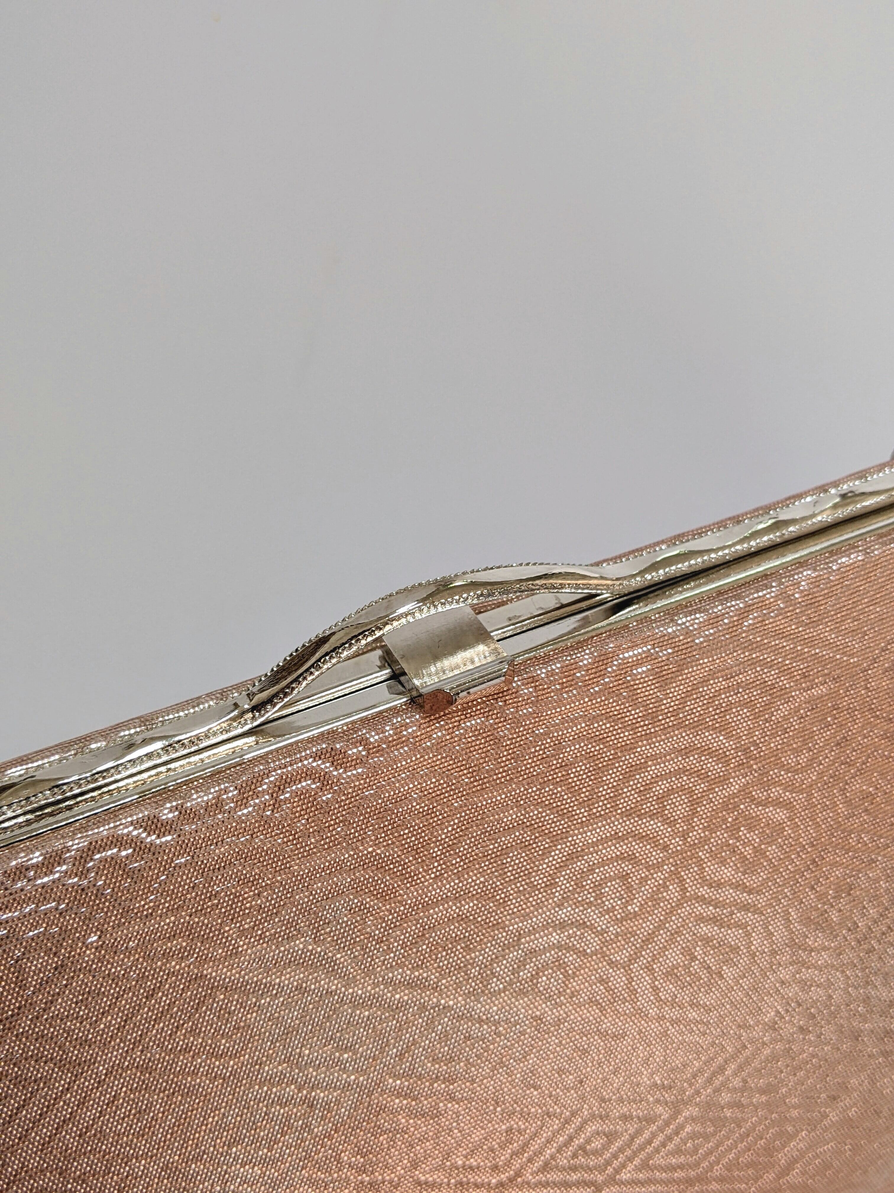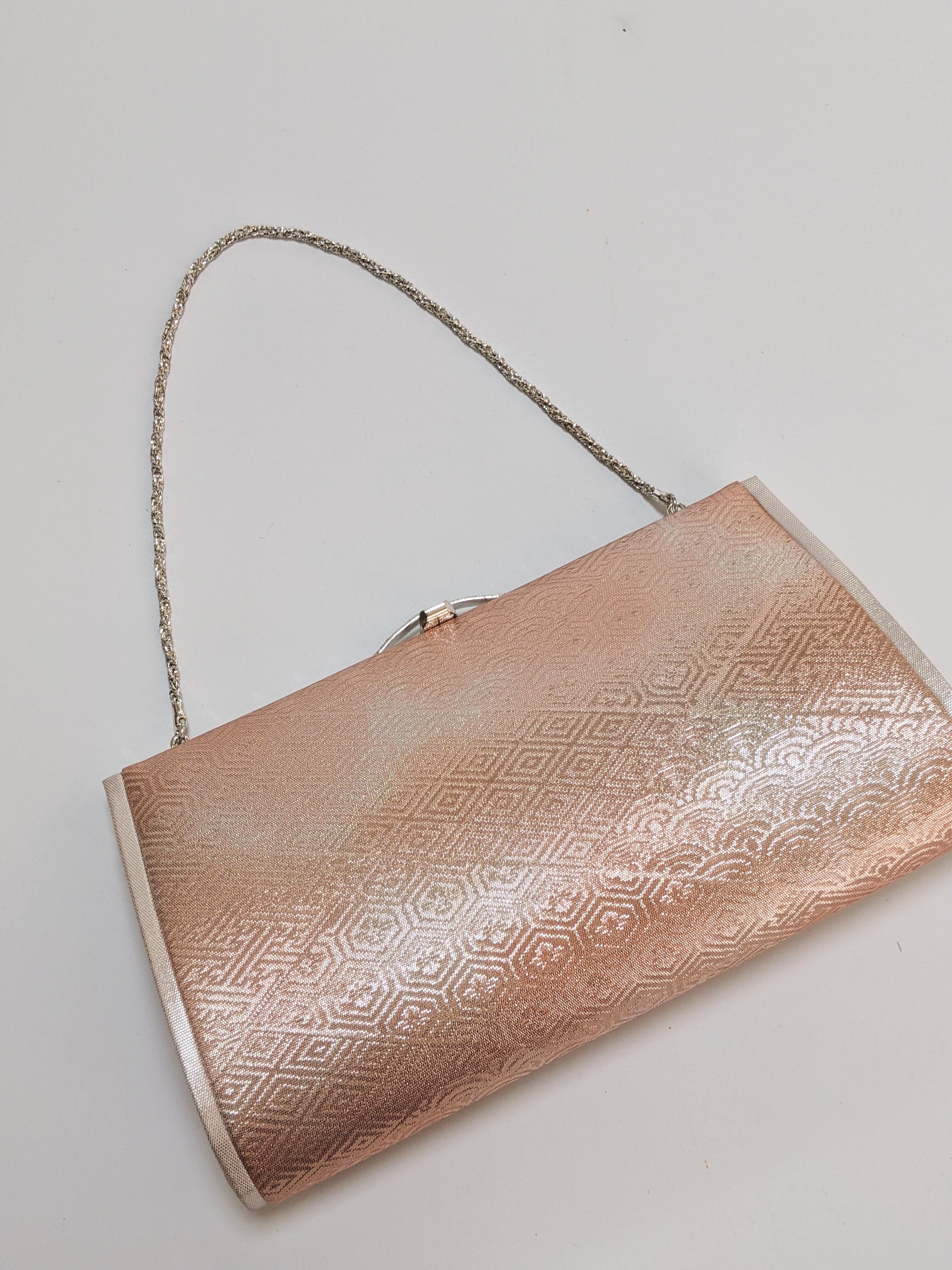 【14268】 ヴィンテージ 和装 ハンドバッグ チェーン シルバー ピンク 桜模様|Japanese Vintage Kimono Chain Bag
