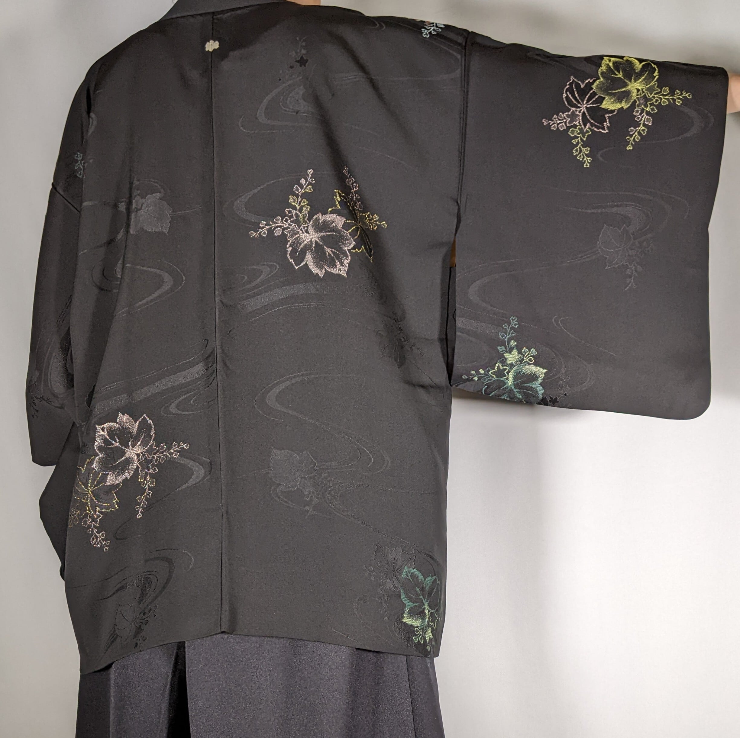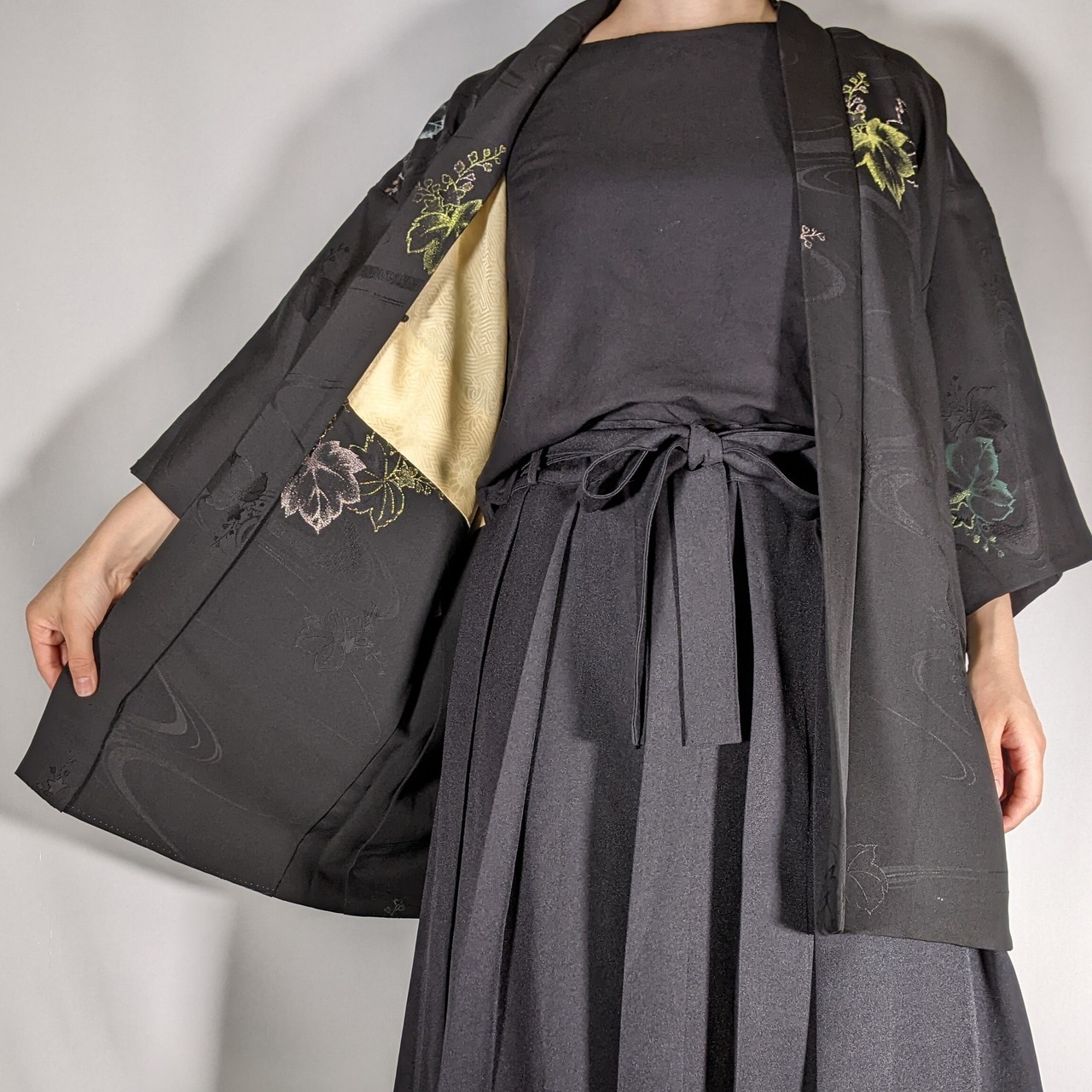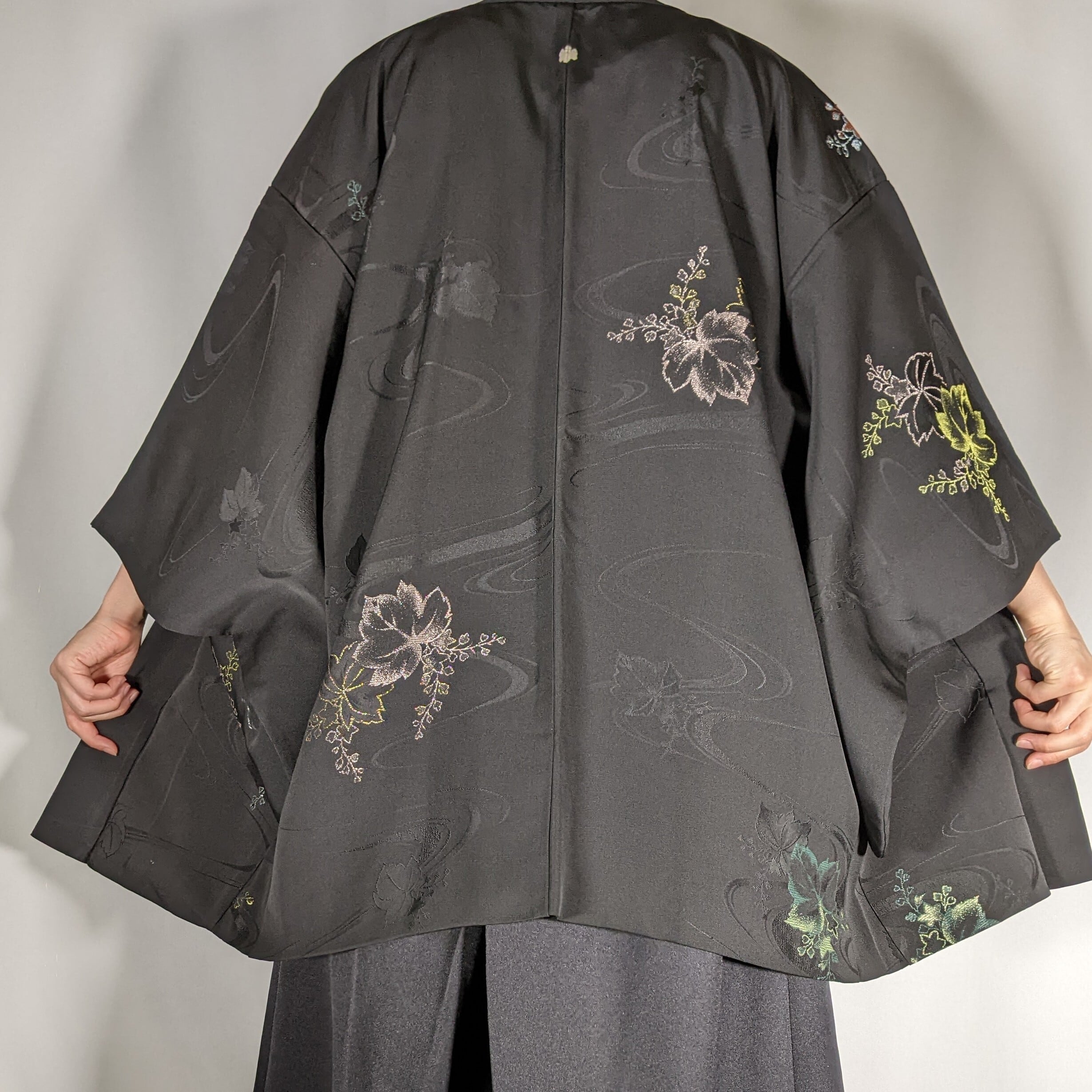 【14272】 ヴィンテージ 黒羽織 和洋折衷コーデ 織り出し模様 / Japanese vintage kimono black haori jacket