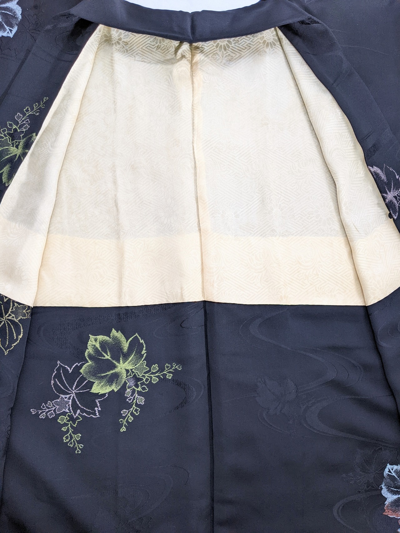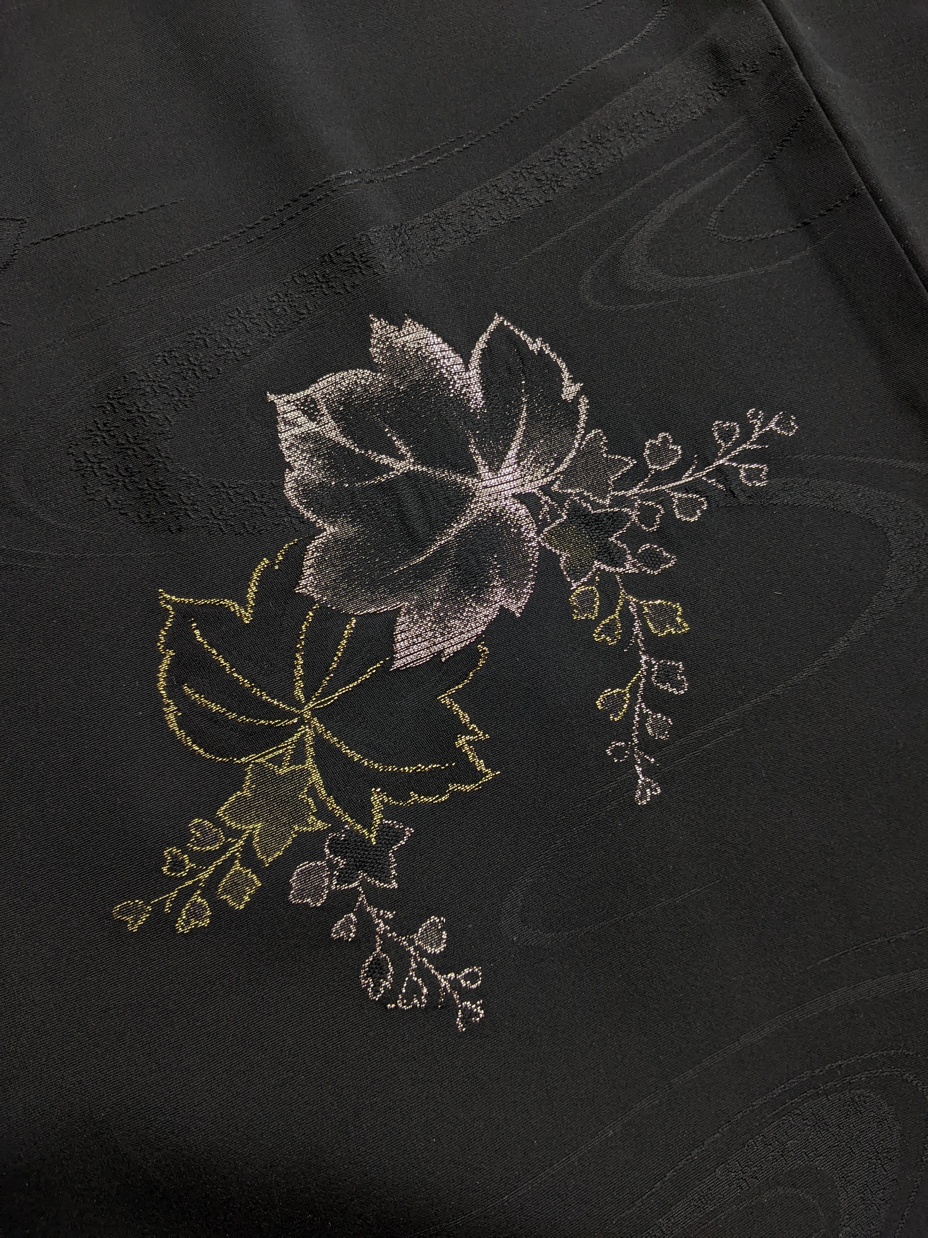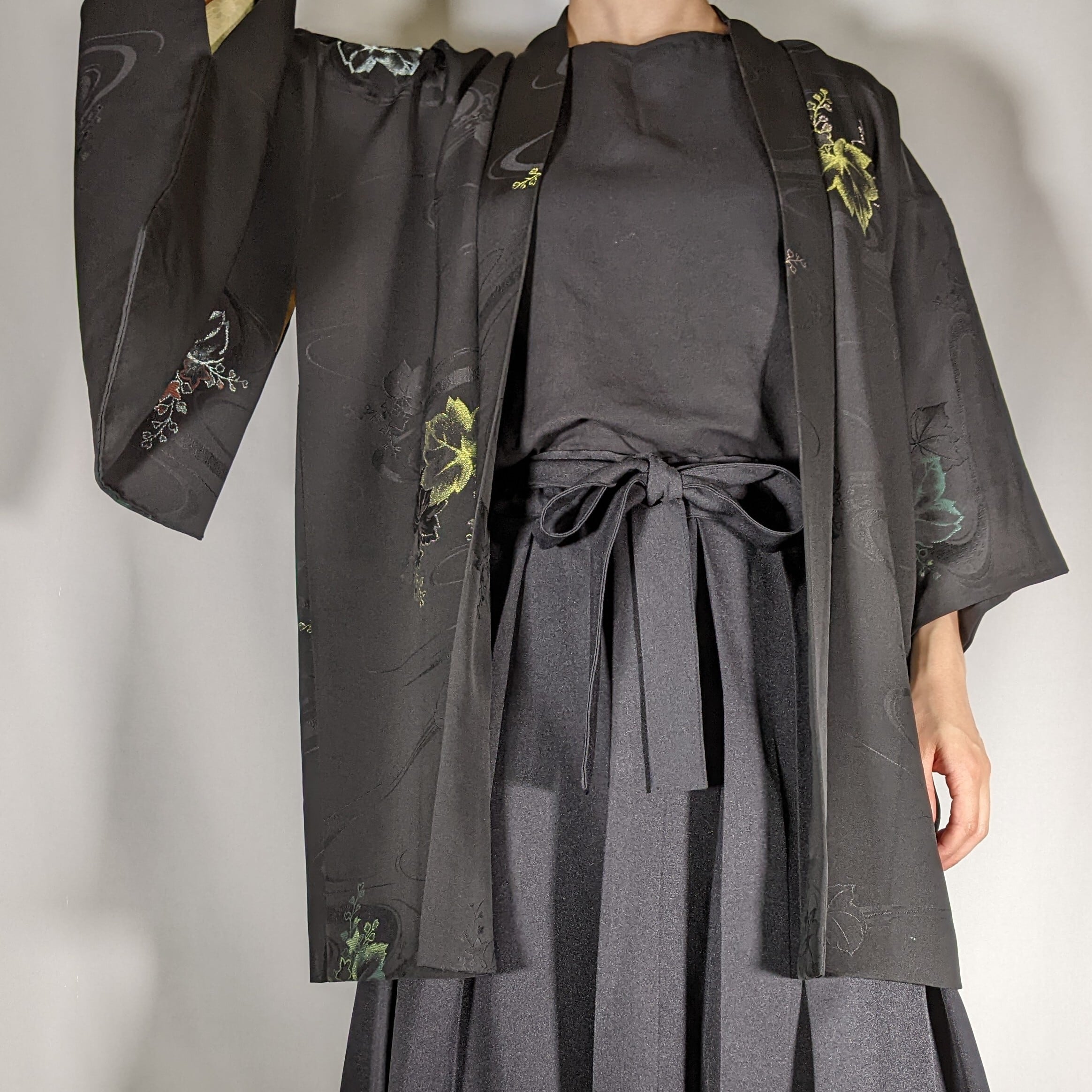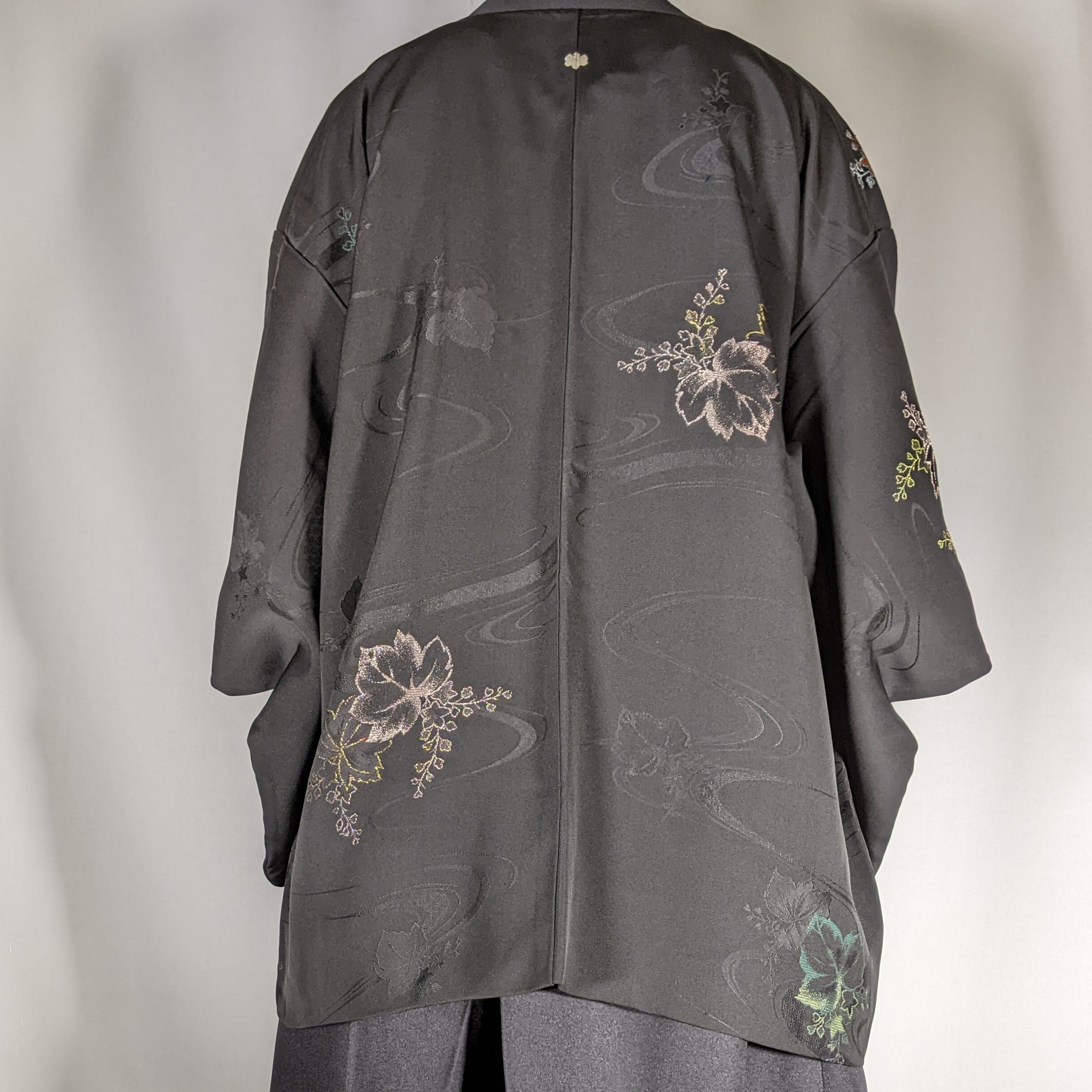 【14272】 ヴィンテージ 黒羽織 和洋折衷コーデ 織り出し模様 / Japanese vintage kimono black haori jacket