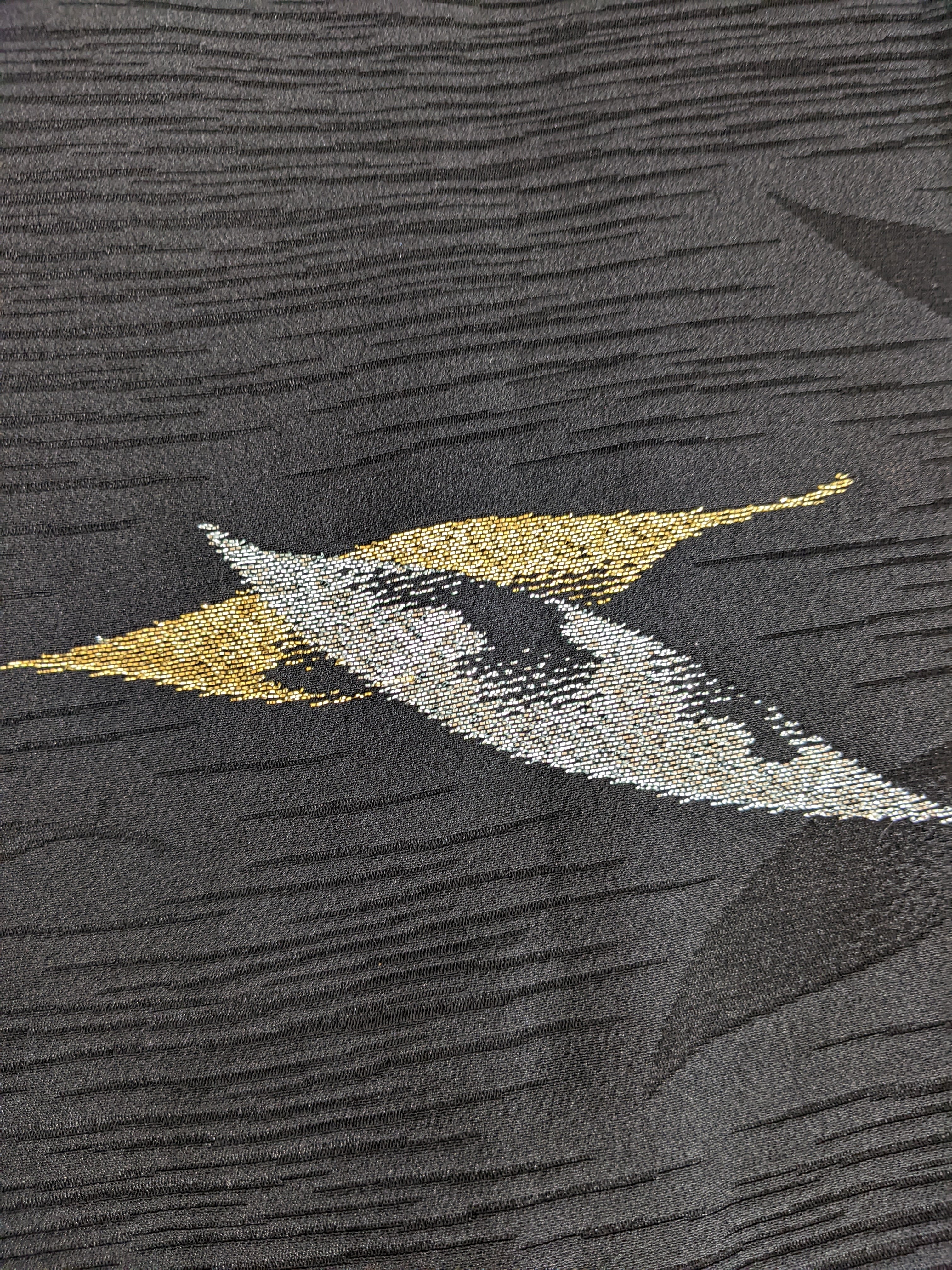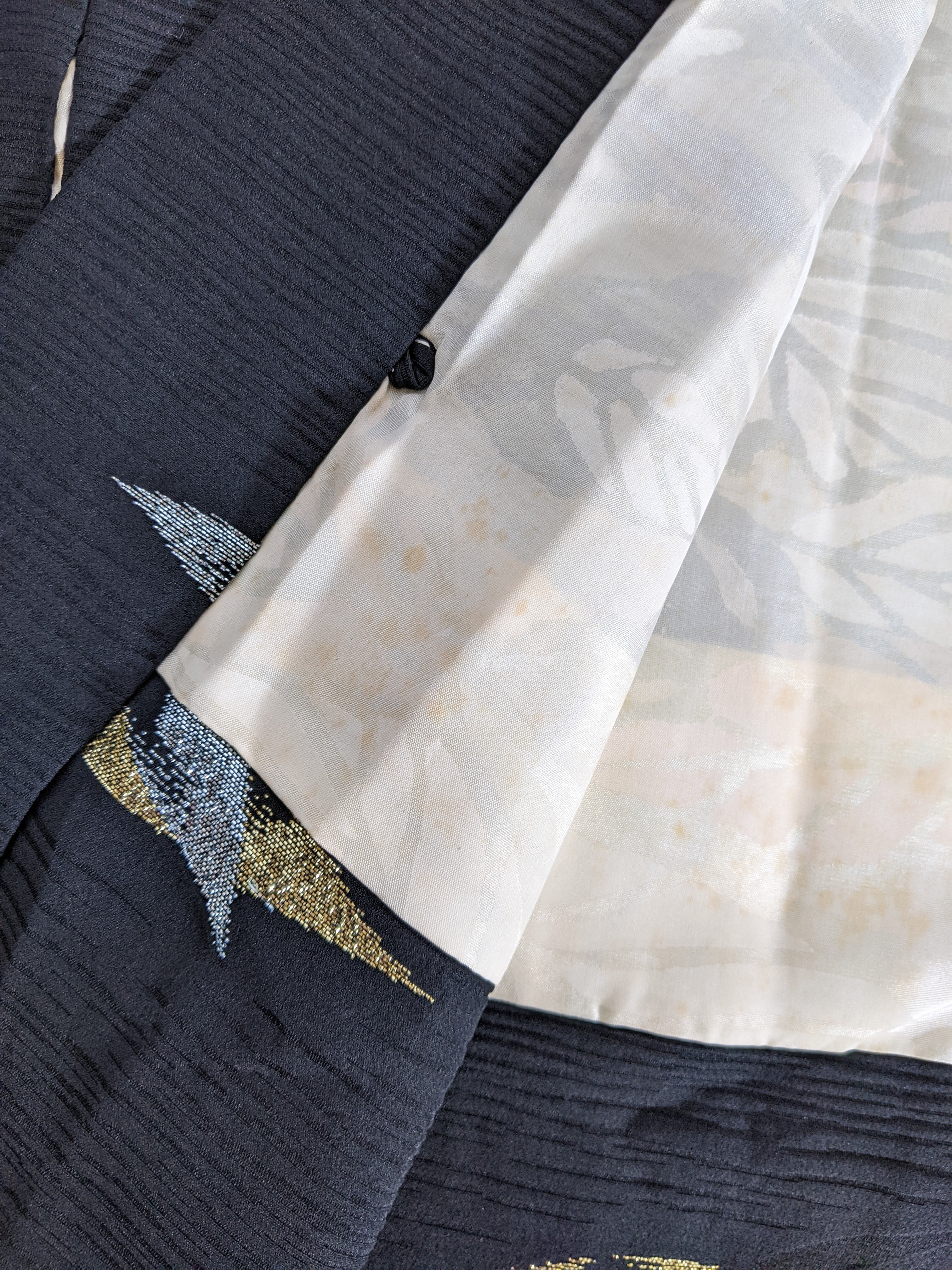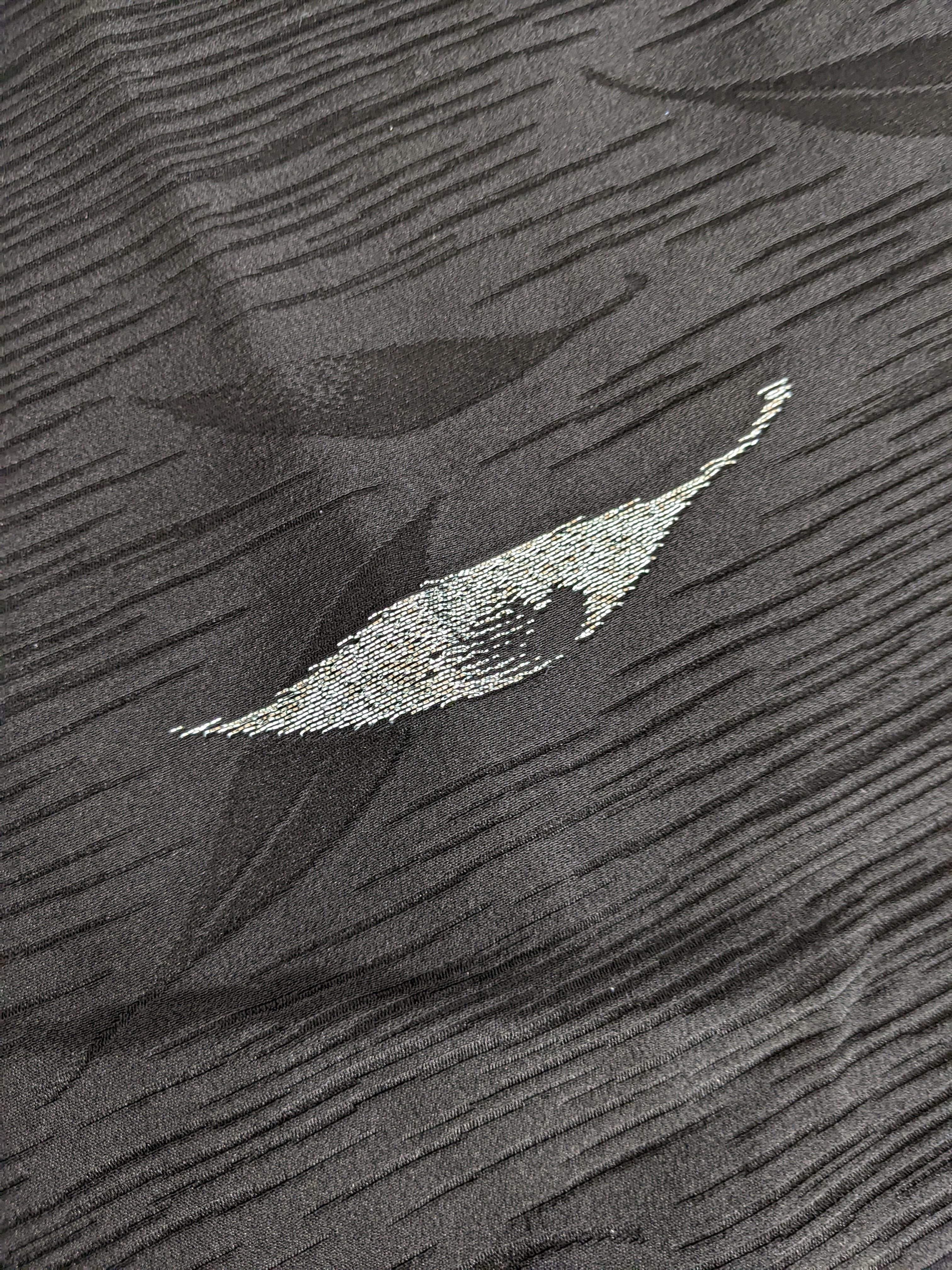 【14278】 ヴィンテージ 黒羽織 織り出し模様 葉 金 銀 和洋折衷コーデ / Japanese vintage kimono black haori jacket