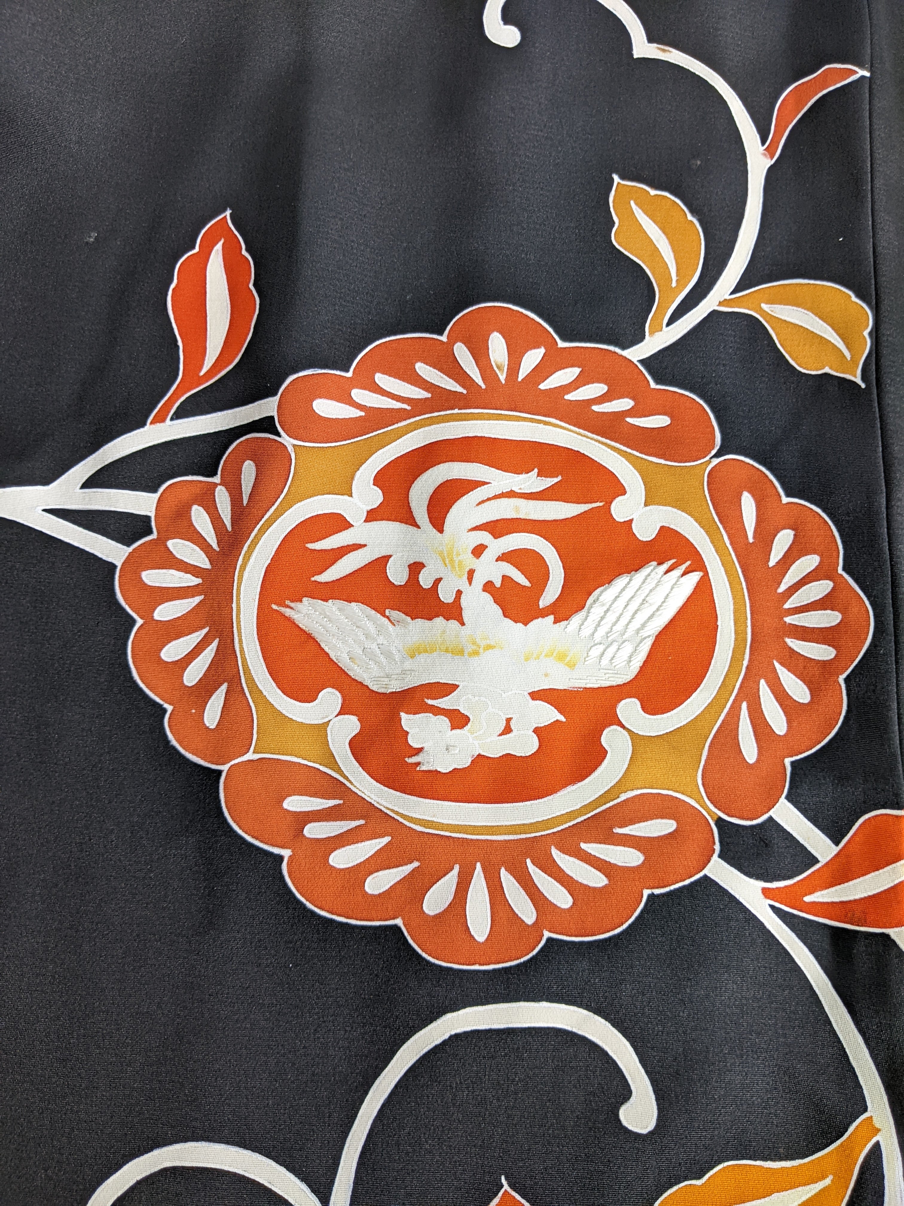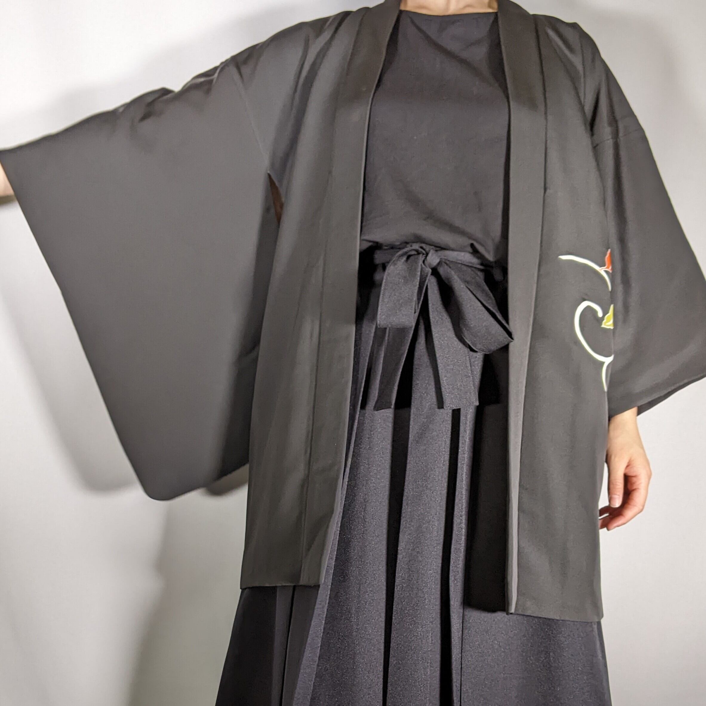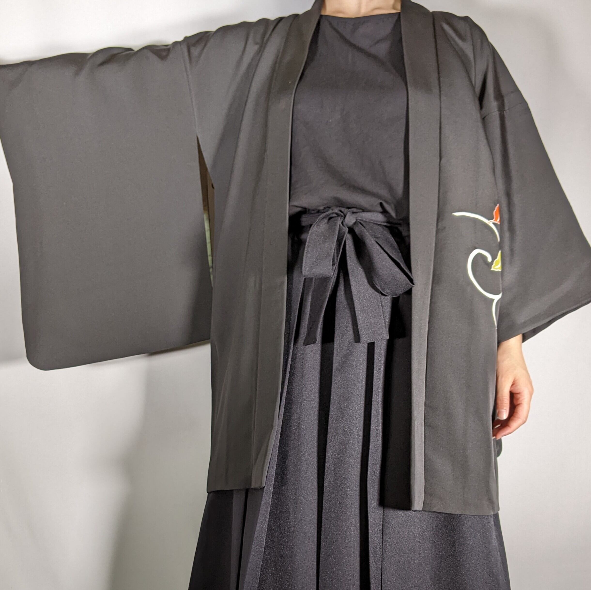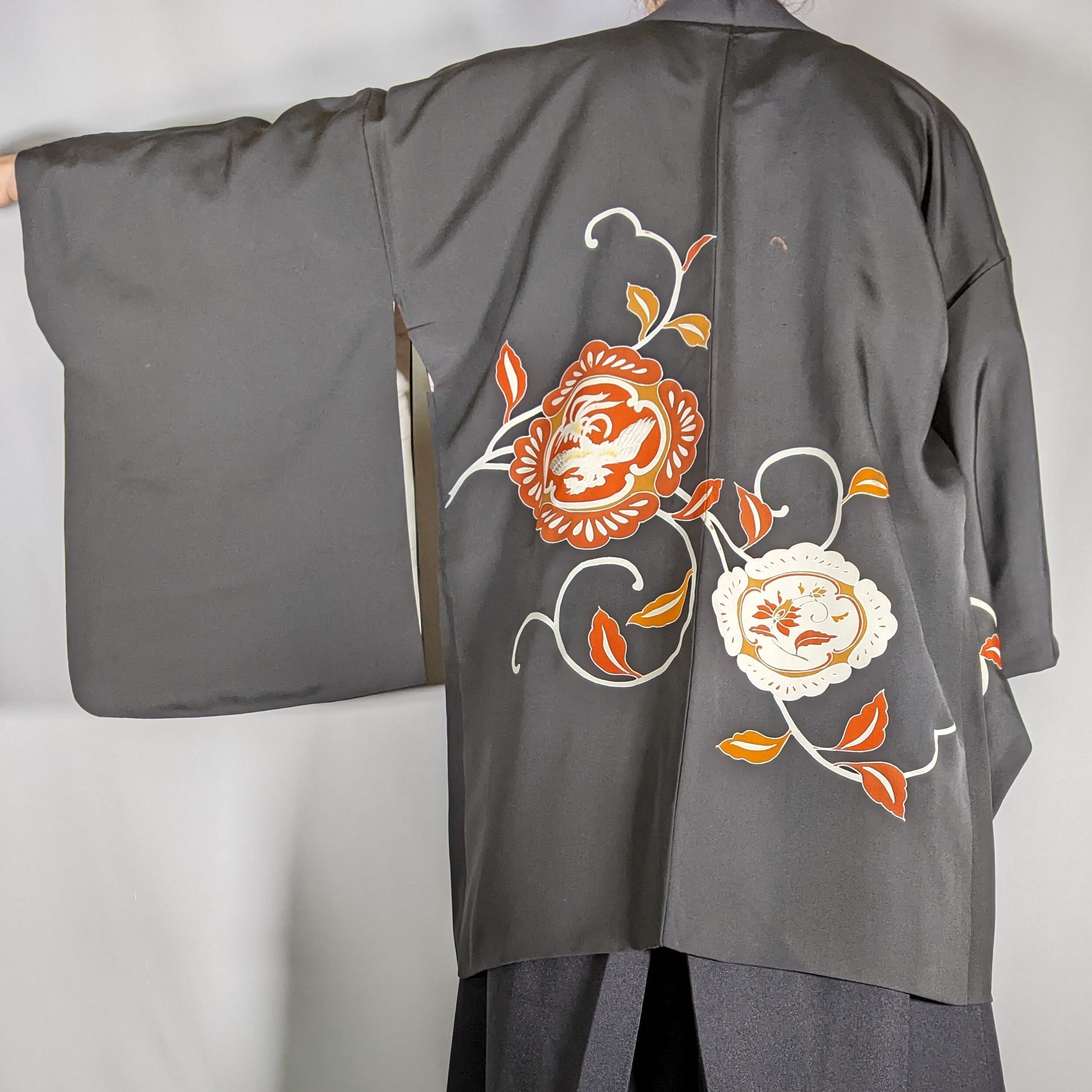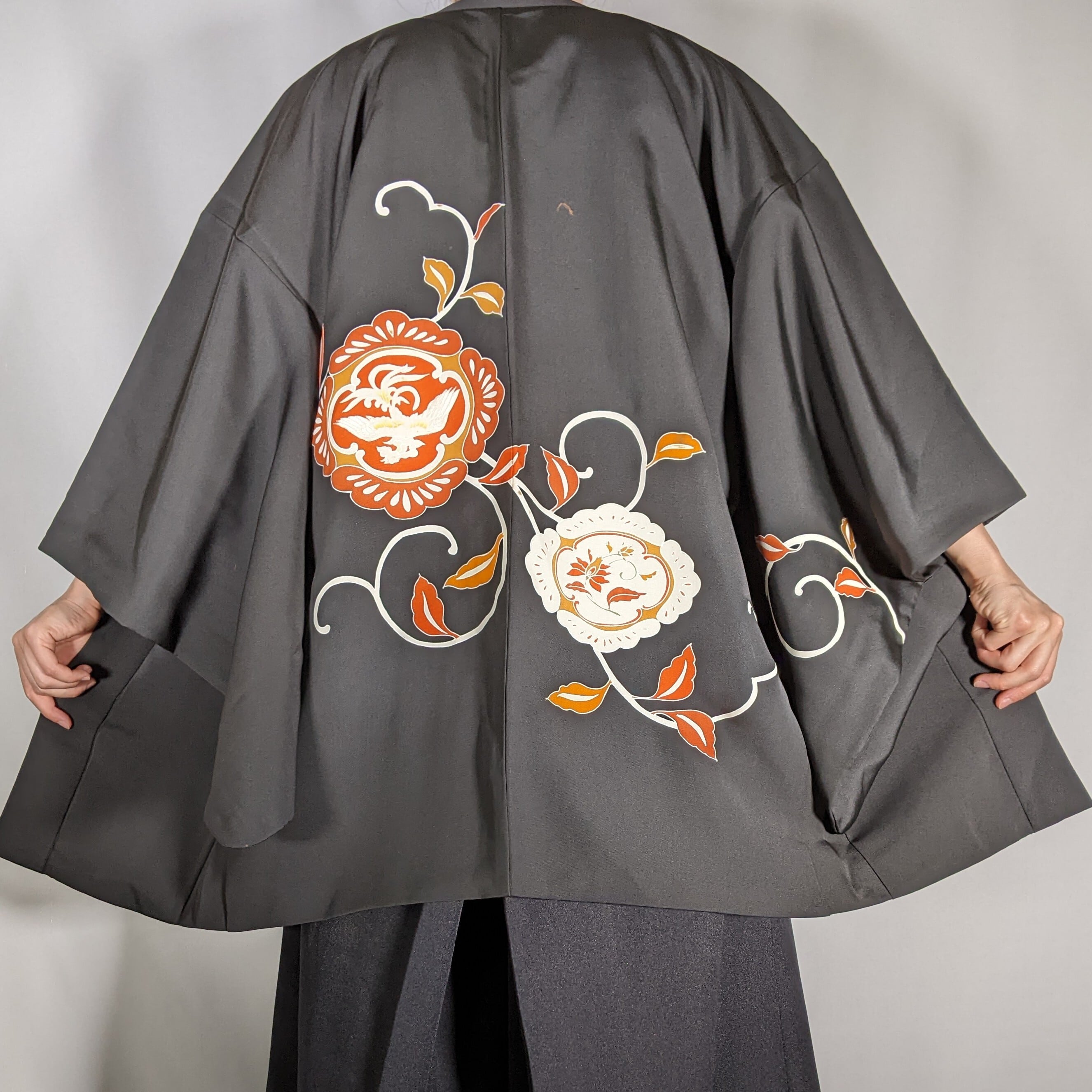 【14286】 ヴィンテージ 黒羽織 模様 和洋折衷コーデ / Japanese vintage kimono black haori jacket