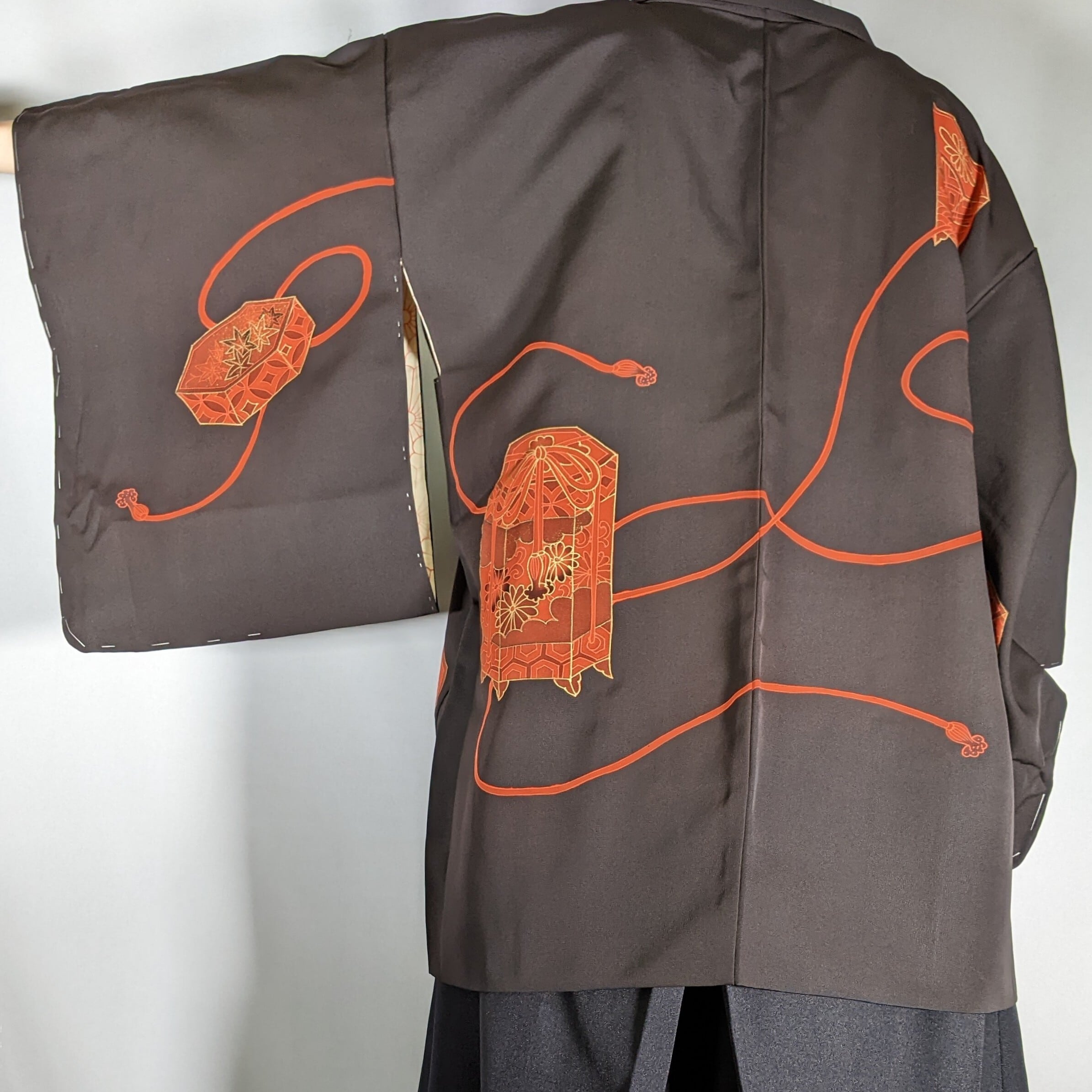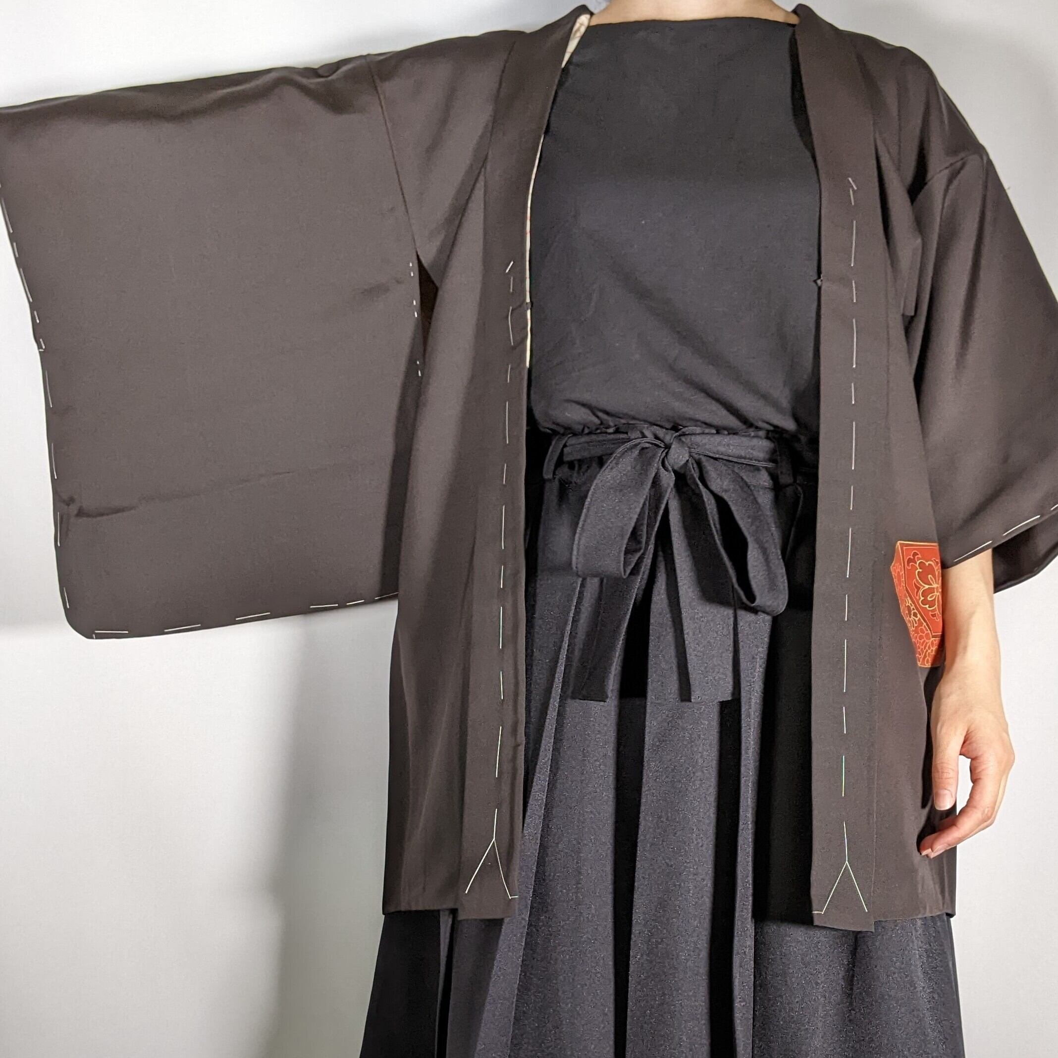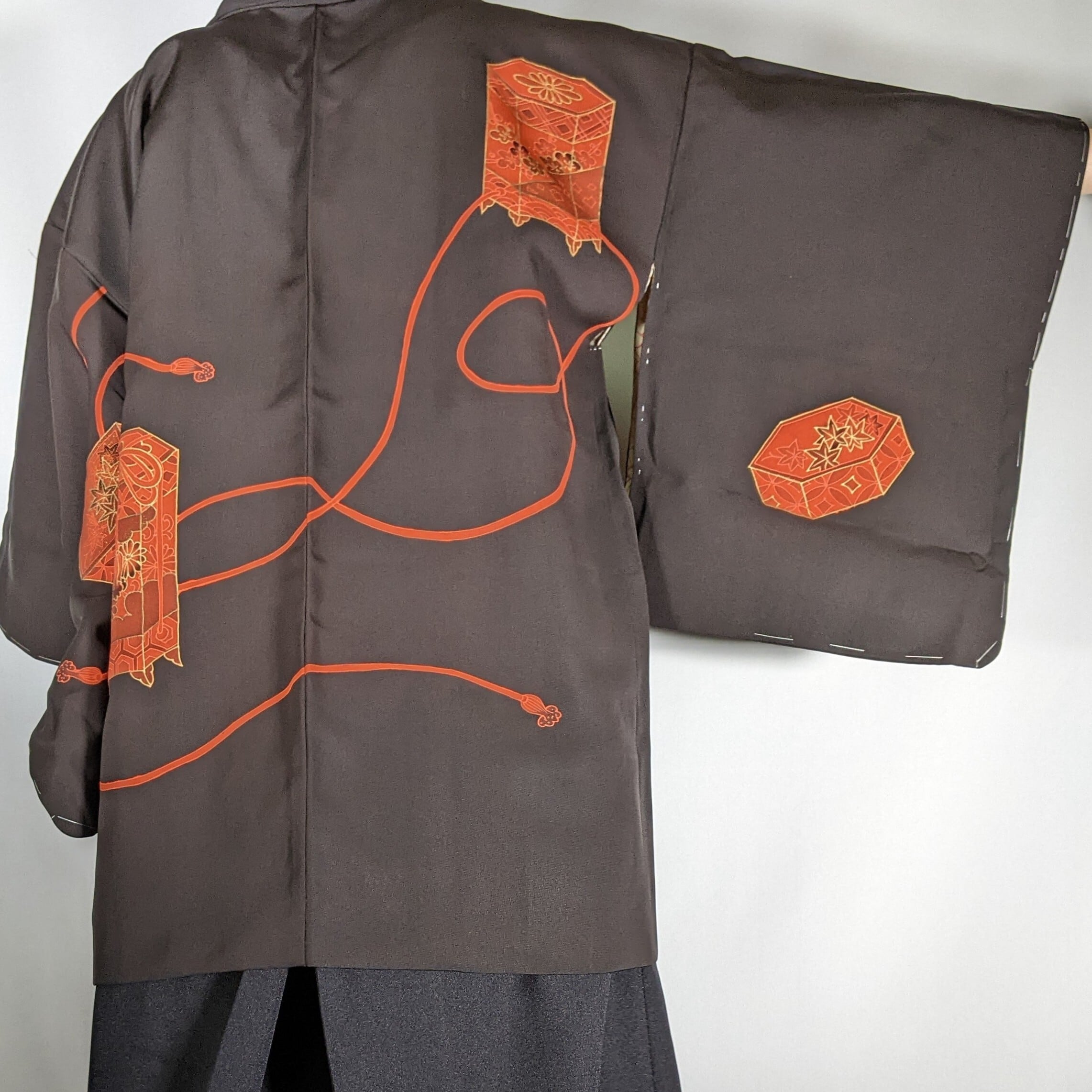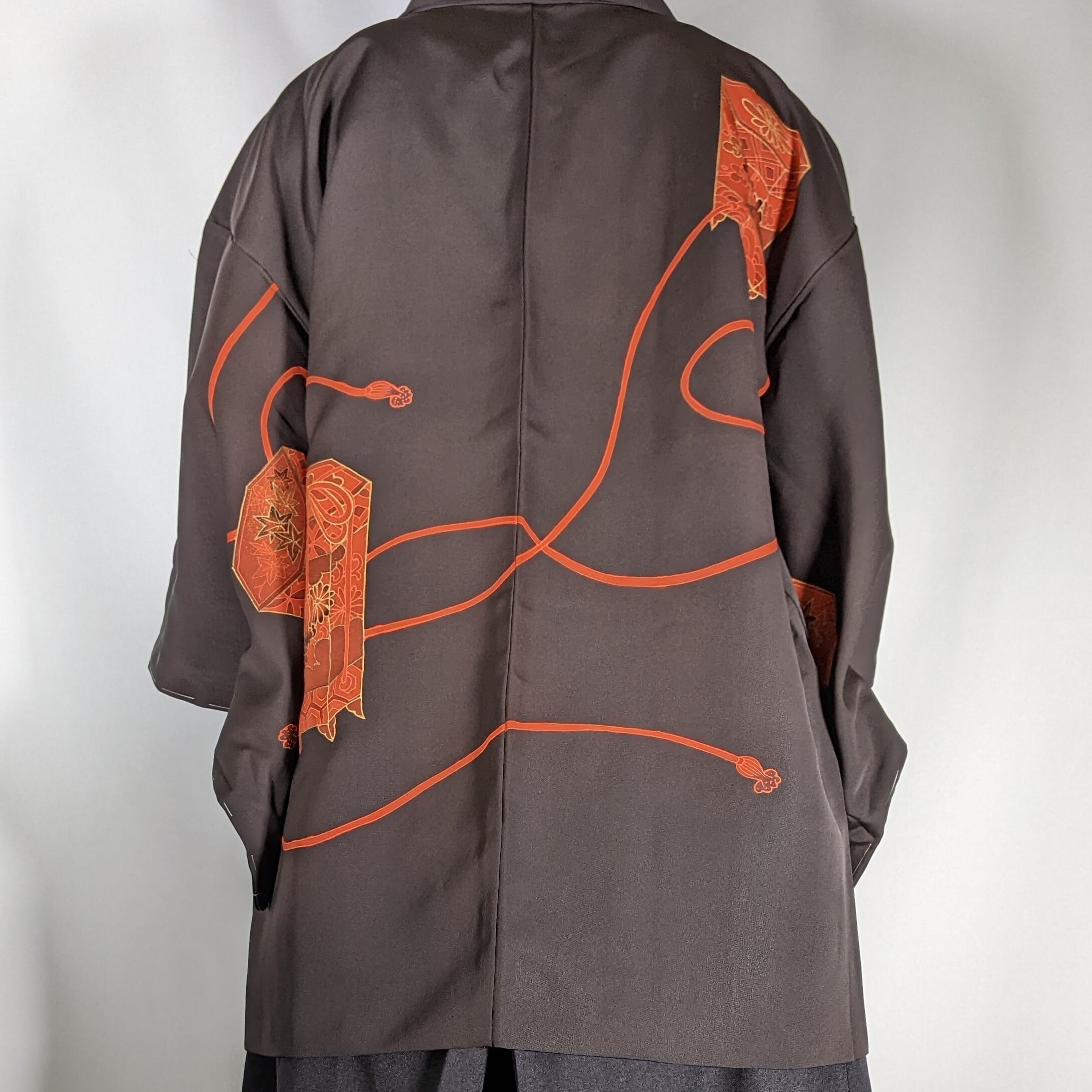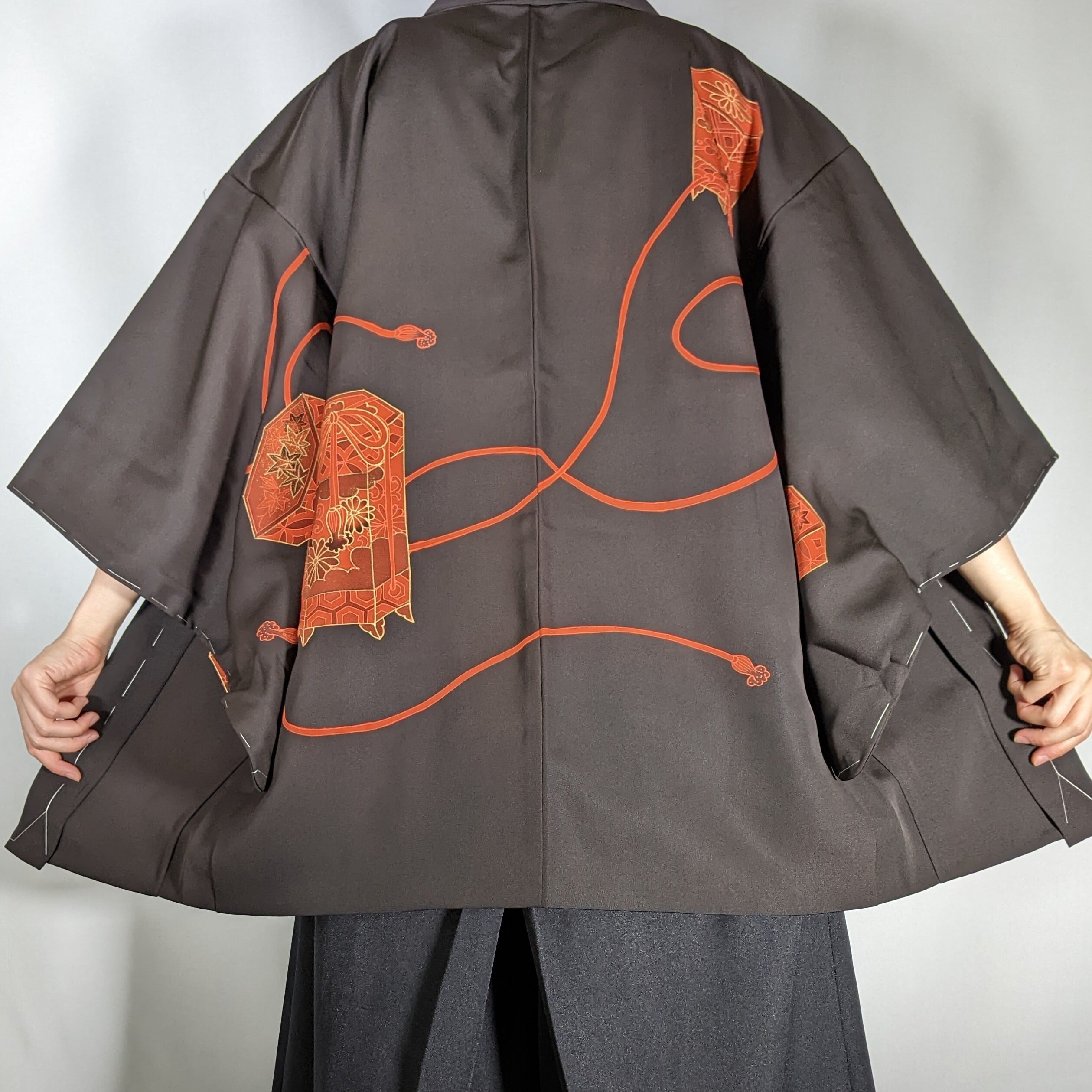 【14291】 ヴィンテージ 茶色 貝桶模様 和洋折衷コーデ / Japanese vintage kimono black haori jacket