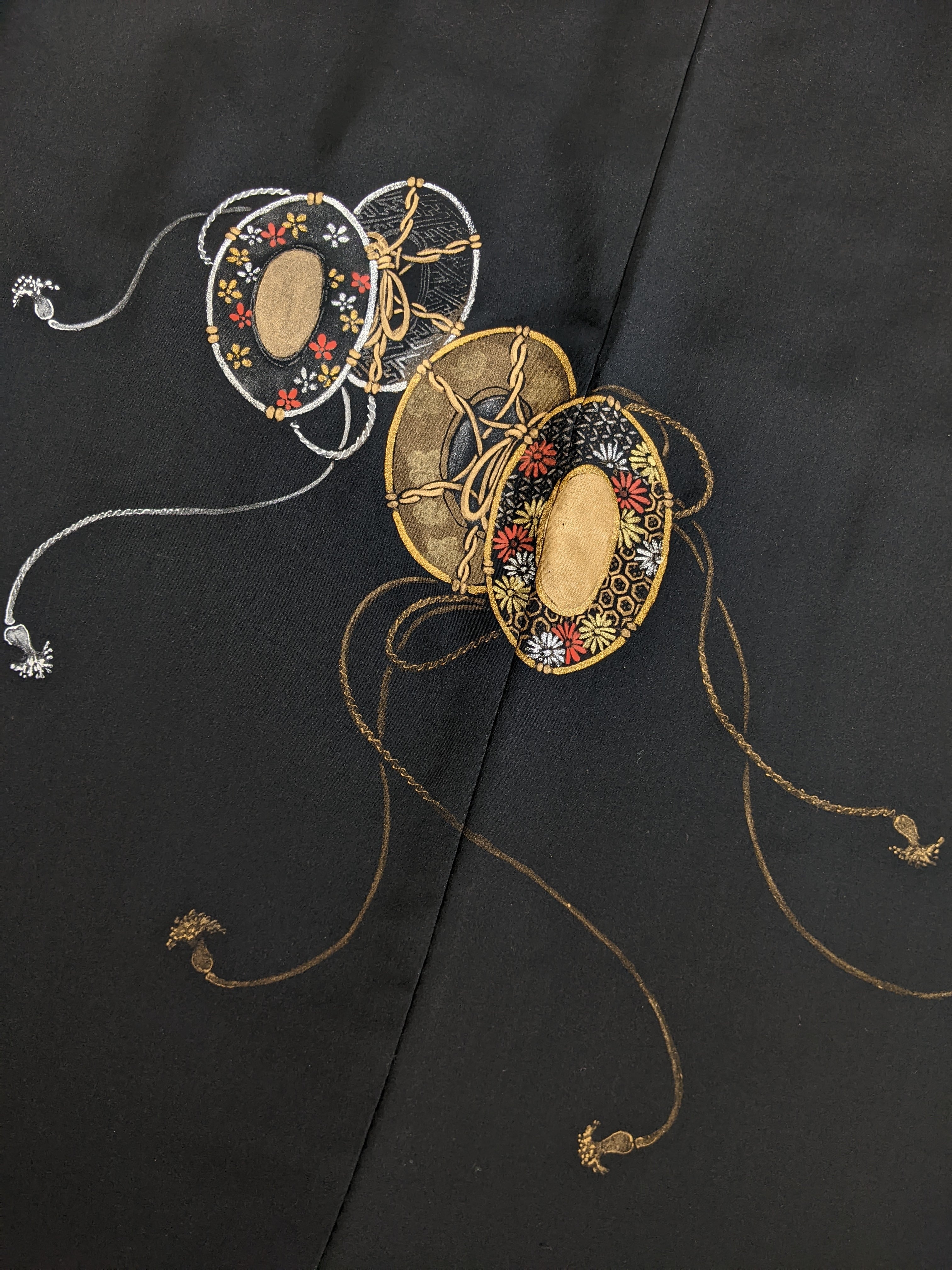 【14298】 ヴィンテージ 黒羽織 鼓模様 和洋折衷コーデ / Japanese vintage kimono black haori jacket