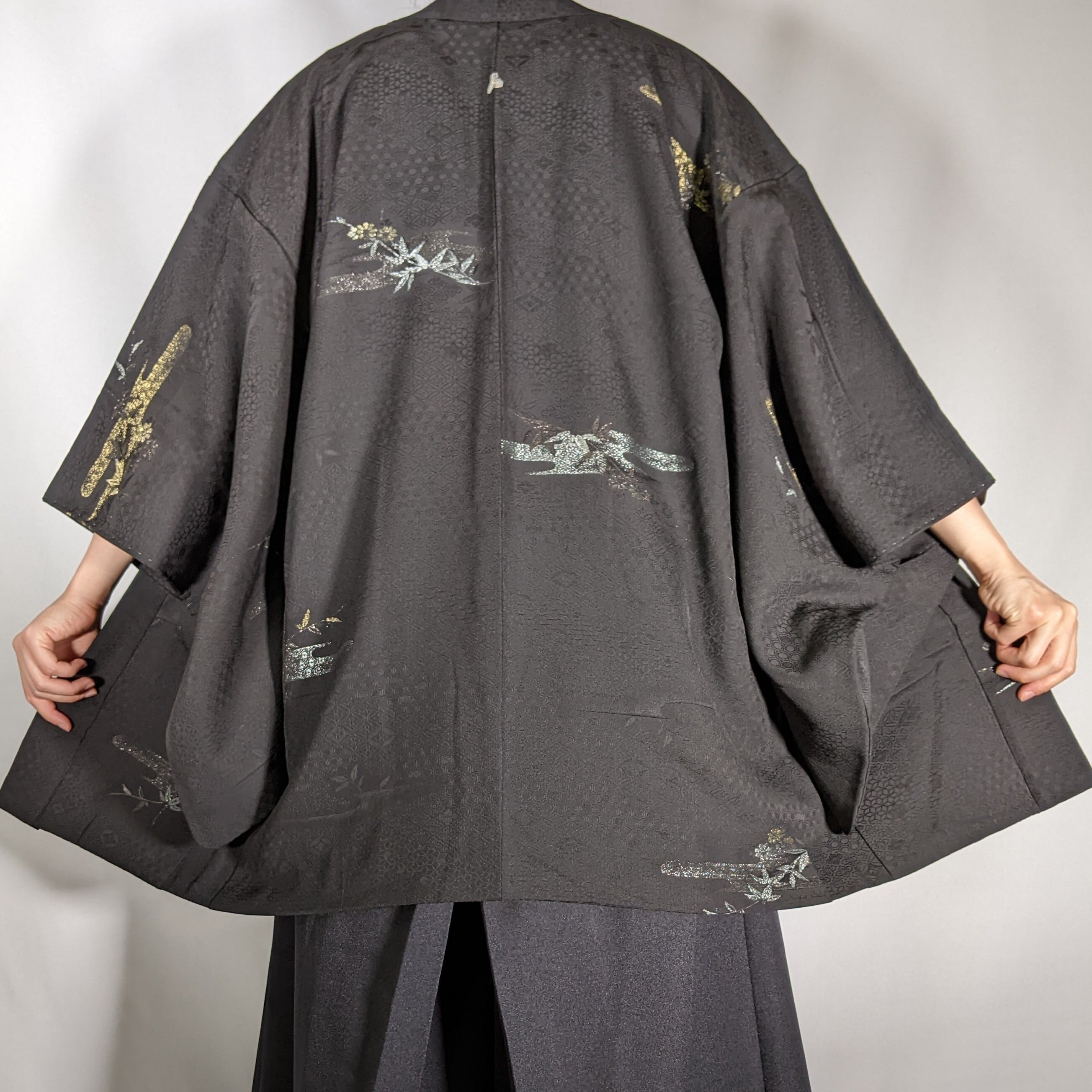 【14303】 ヴィンテージ 黒羽織 和洋折衷コーデ / Japanese vintage kimono black haori jacket