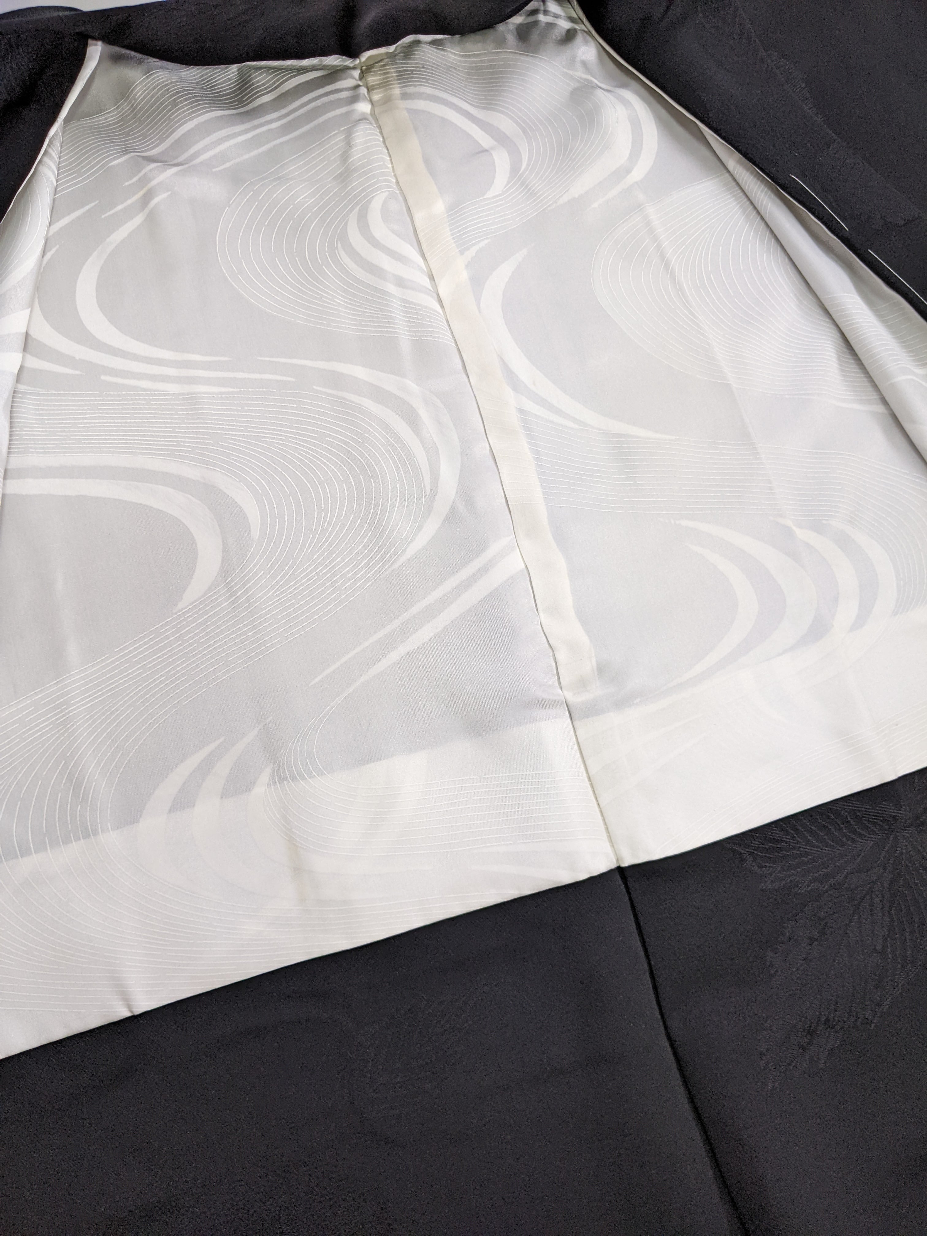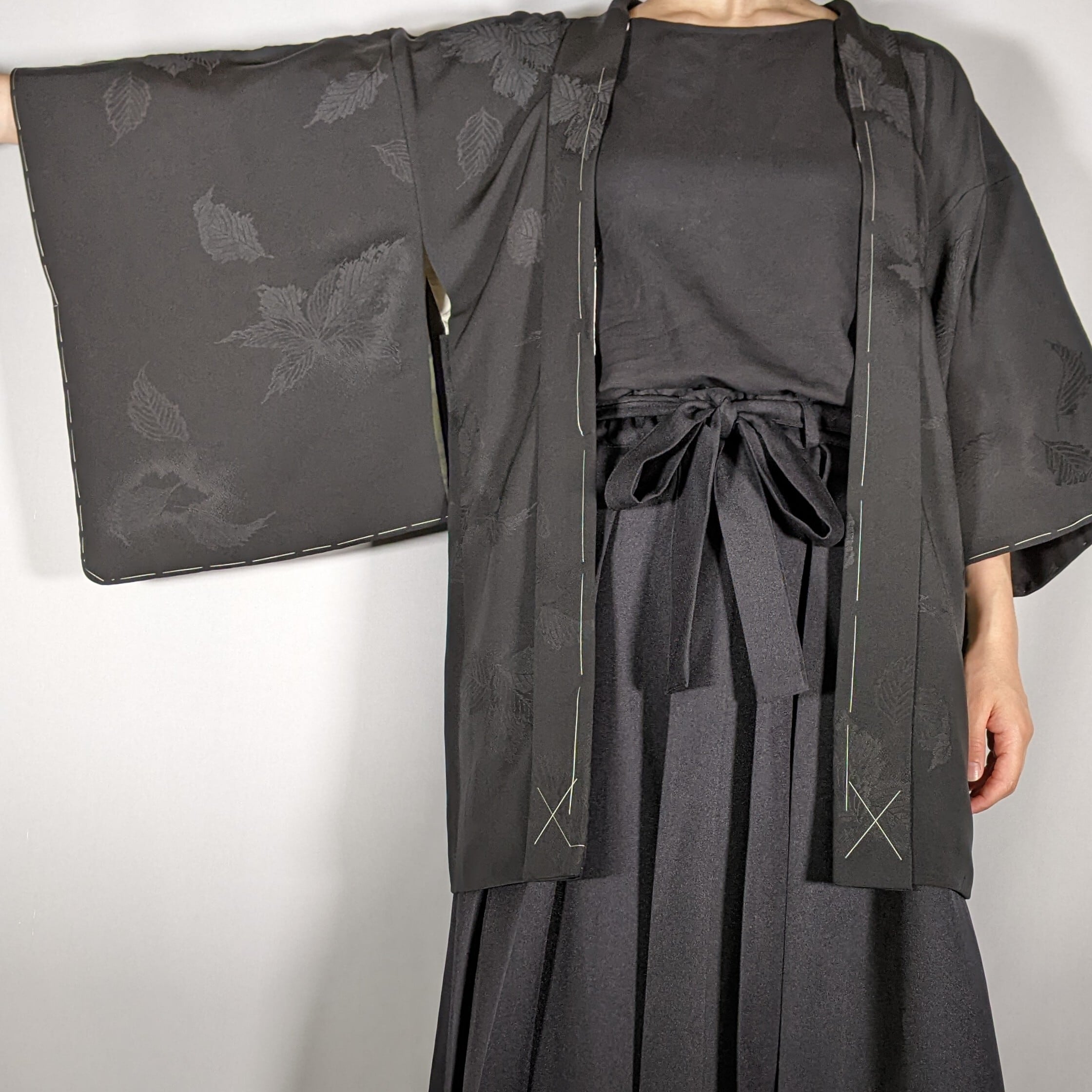 【14307】 ヴィンテージ 黒羽織 葉模様 和洋折衷コーデ / Japanese vintage kimono black haori jacket