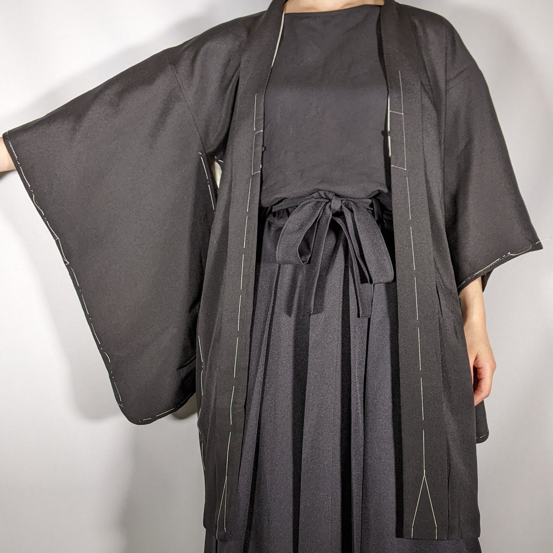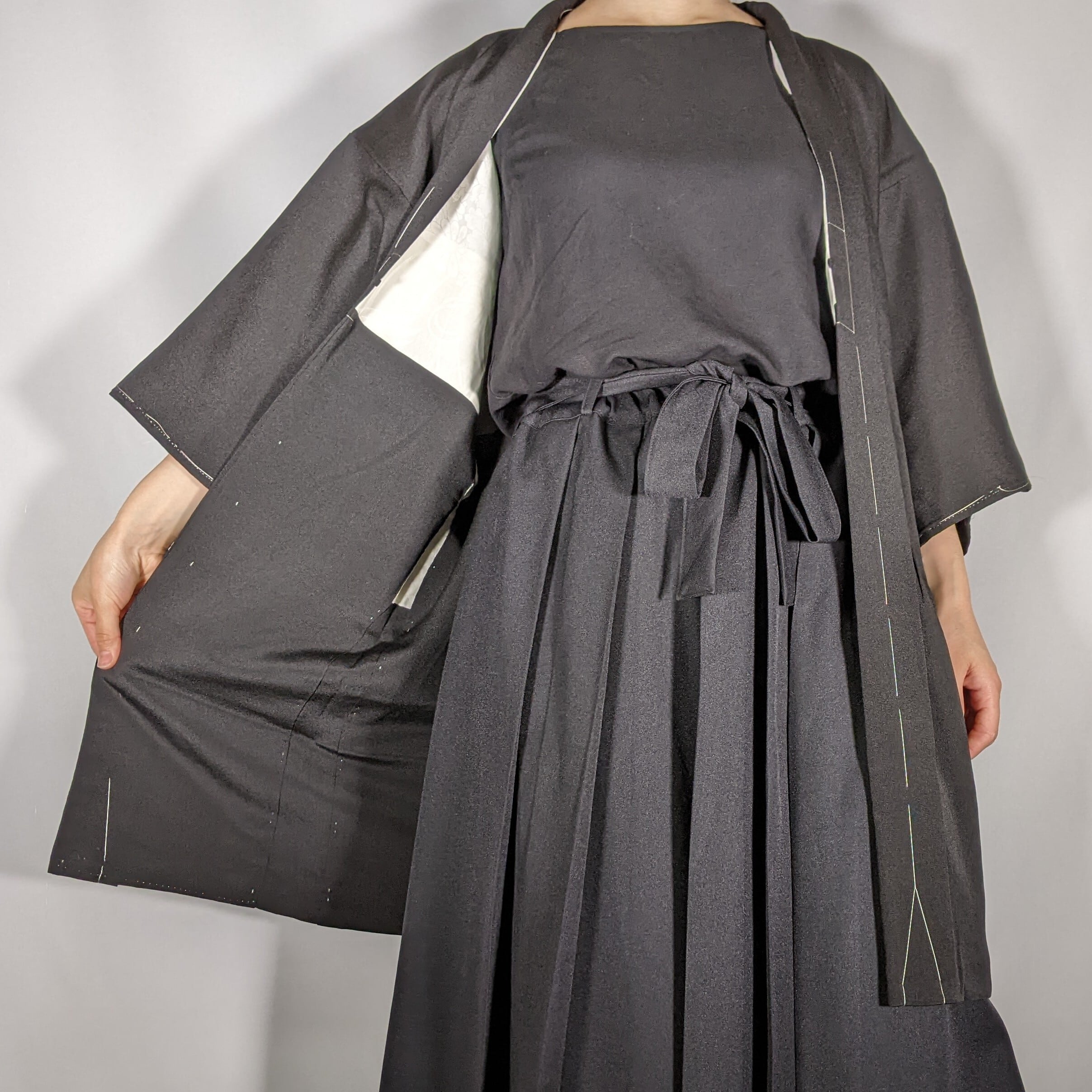 【14311】 ヴィンテージ 黒羽織 無地 シンプル 和洋折衷コーデ / Japanese vintage kimono black haori jacket