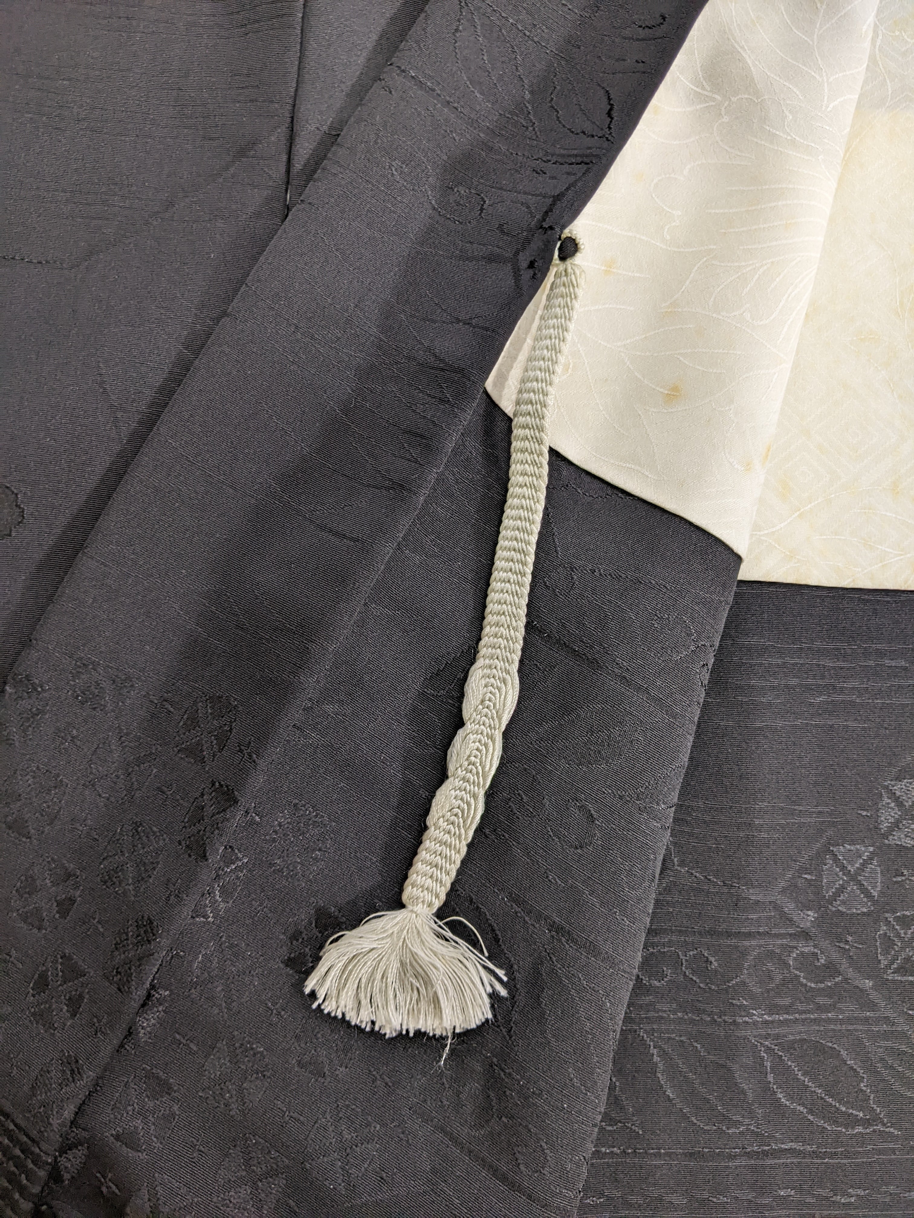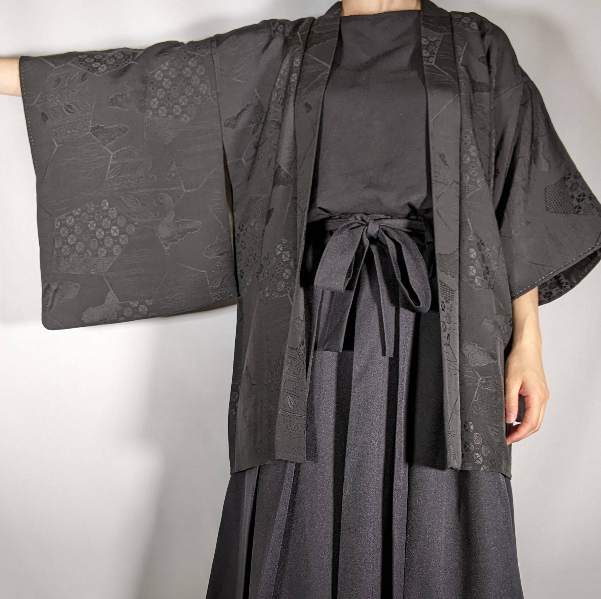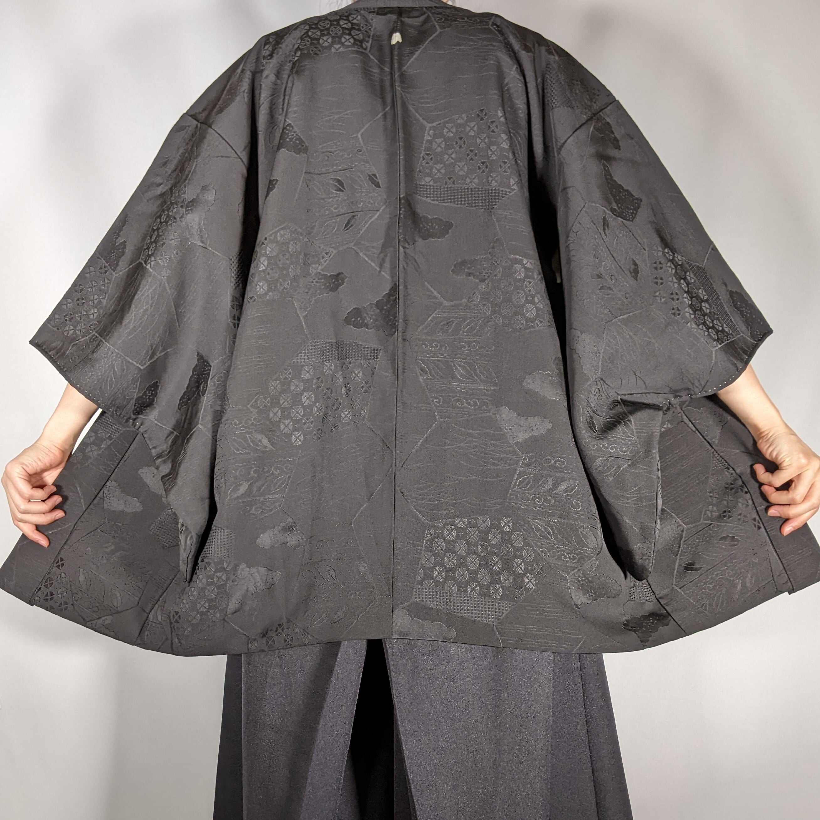 【14313】 ヴィンテージ 黒羽織 地模様 和洋折衷コーデ / Japanese vintage kimono black haori jacket