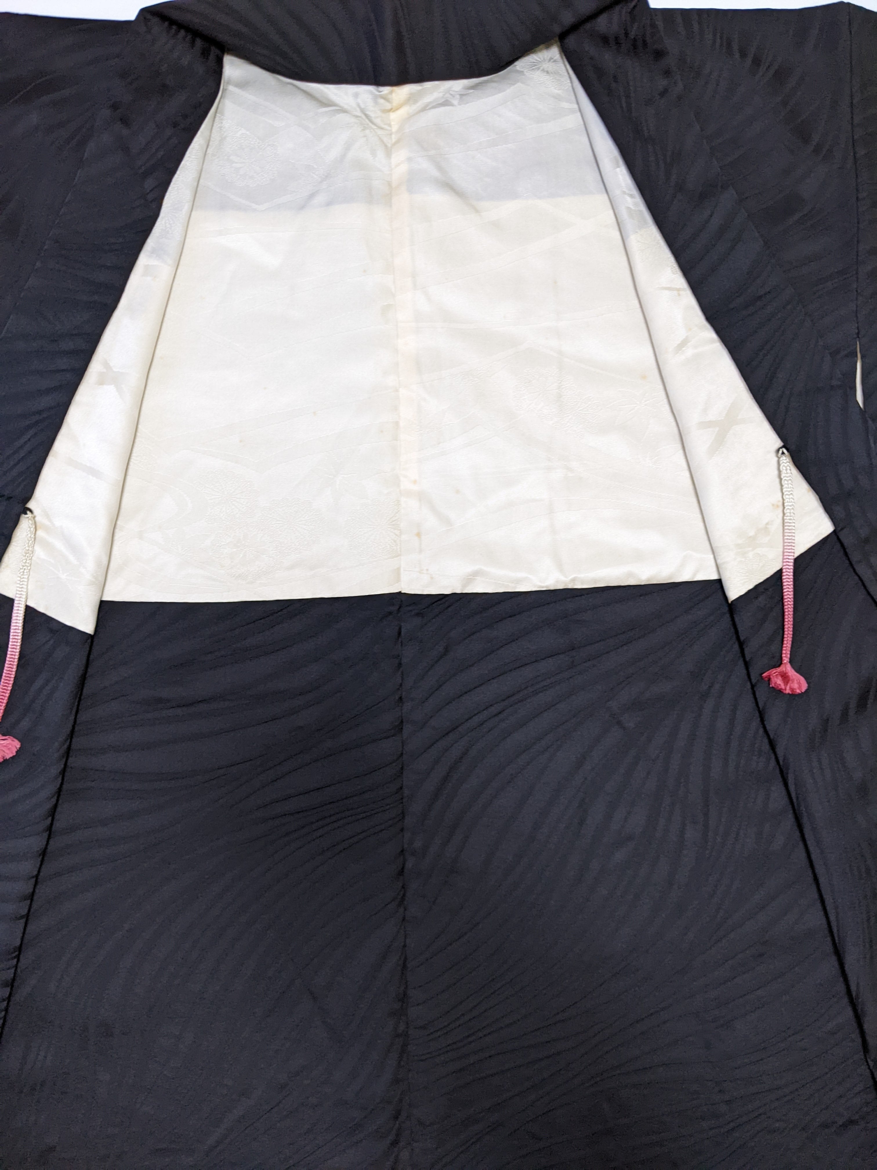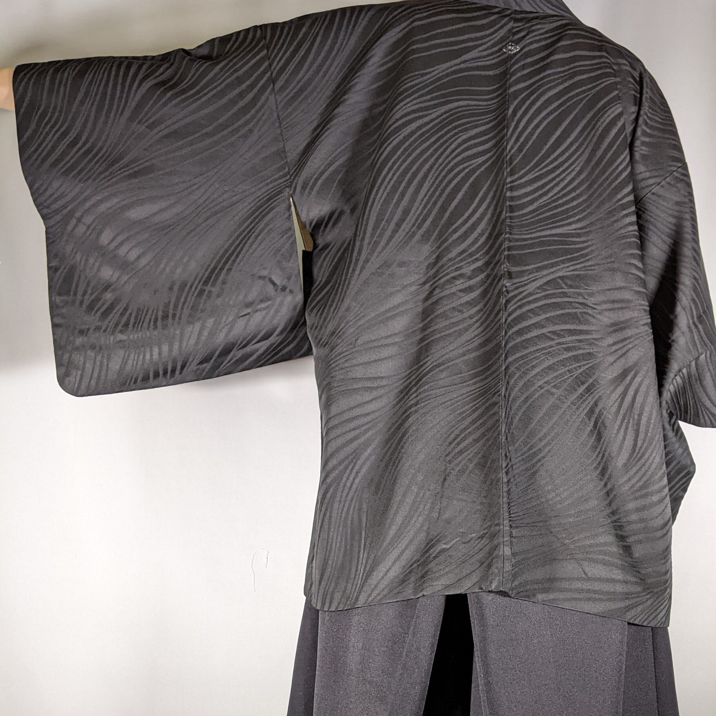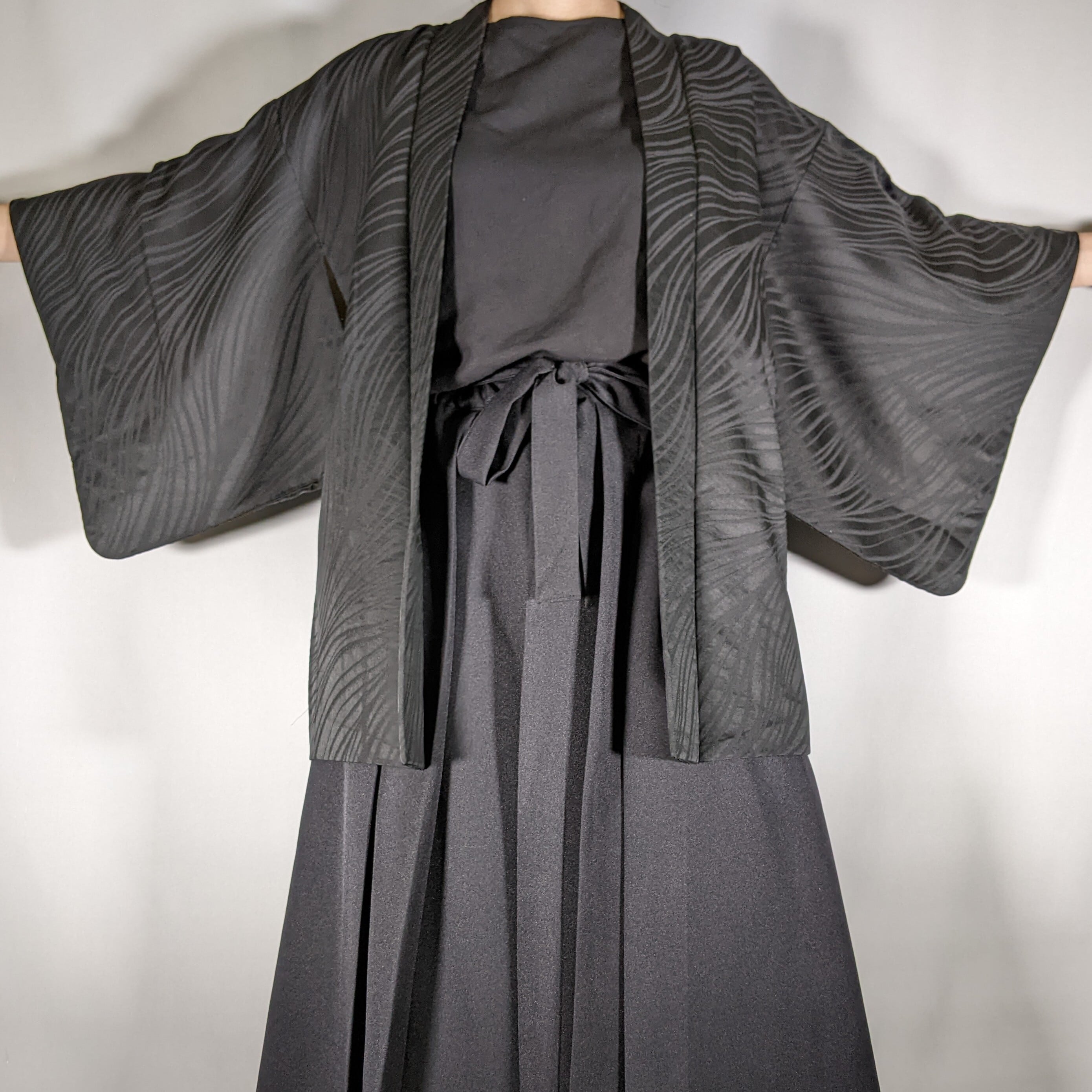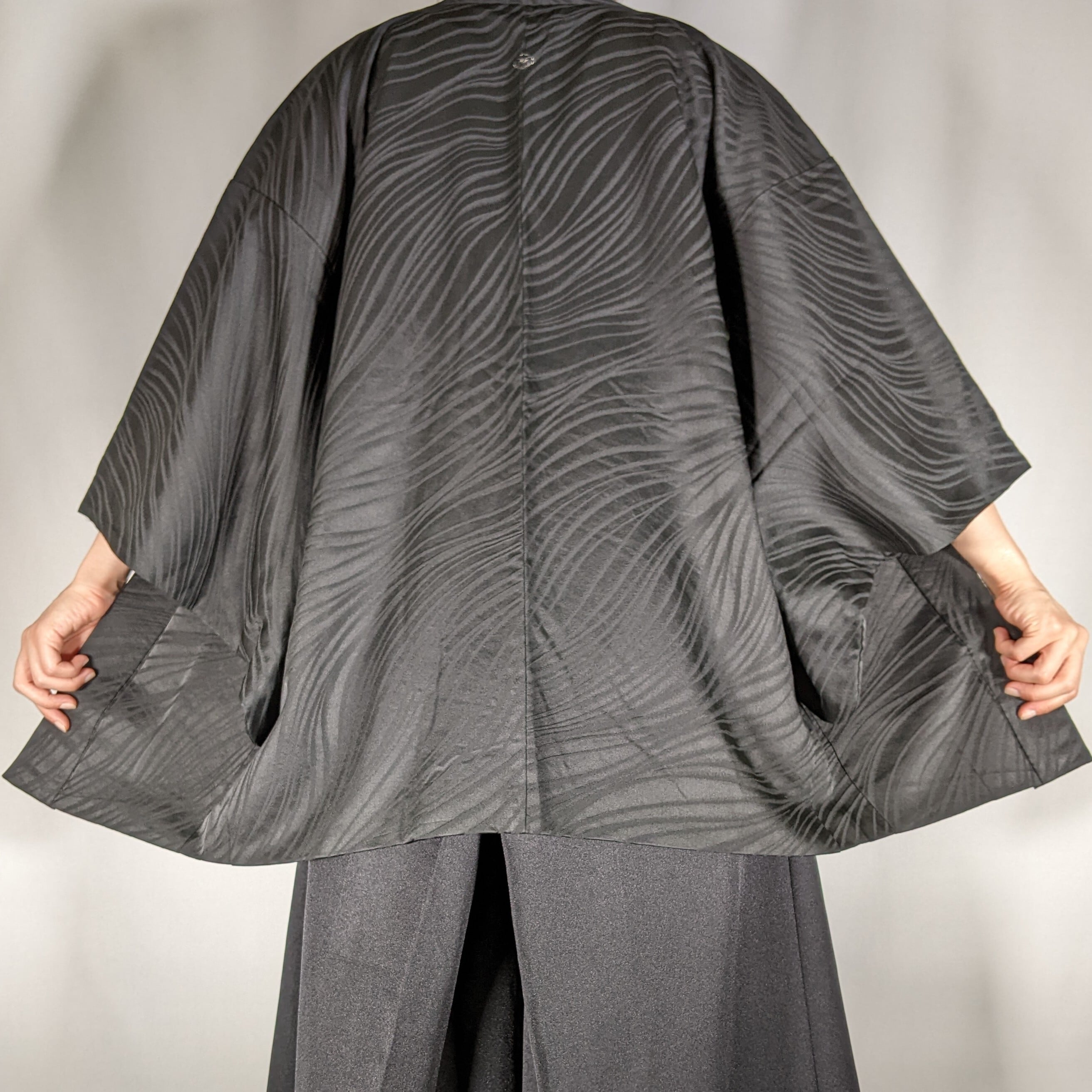 【14320】 ヴィンテージ 黒羽織 地模様 和洋折衷コーデ / Japanese vintage kimono black haori jacket