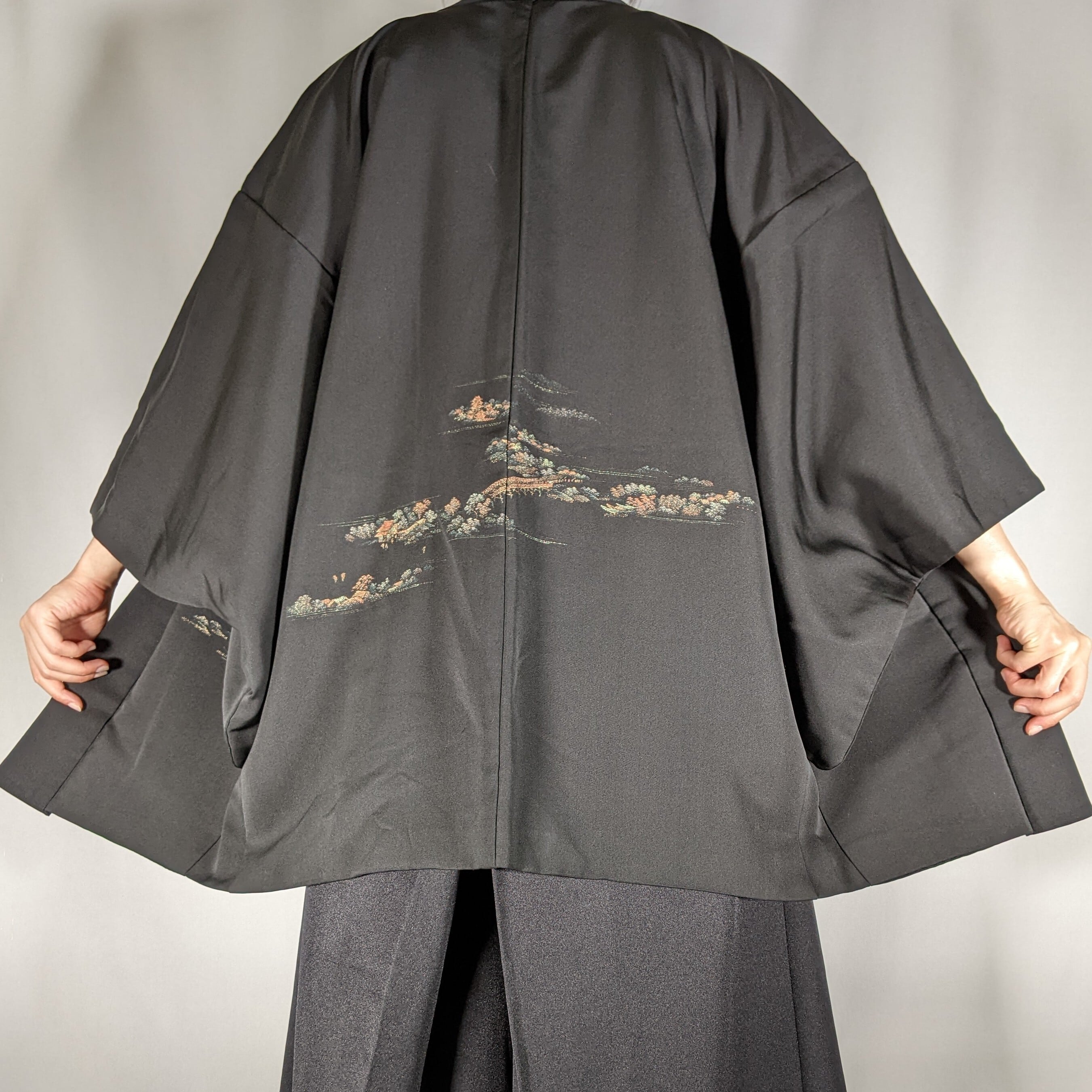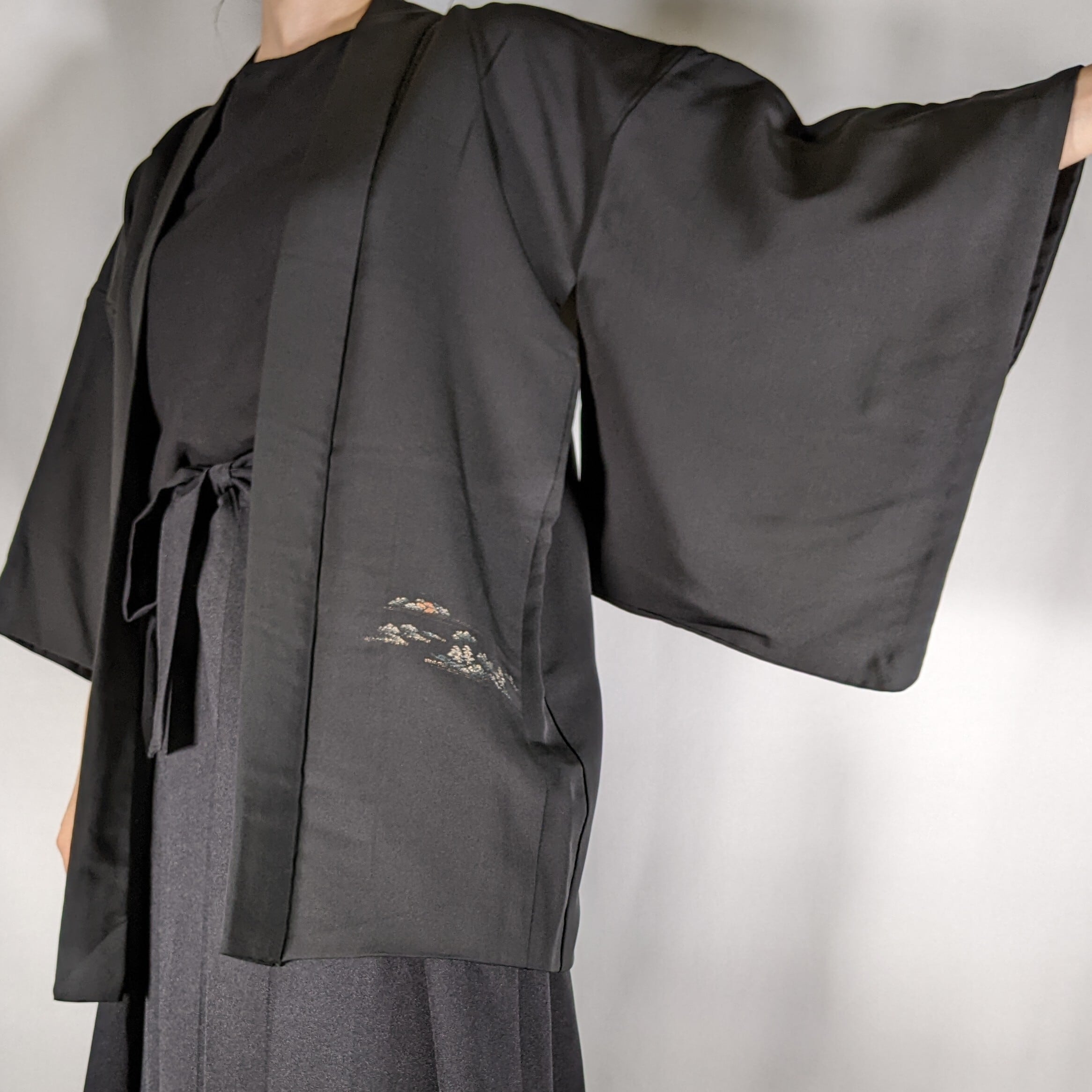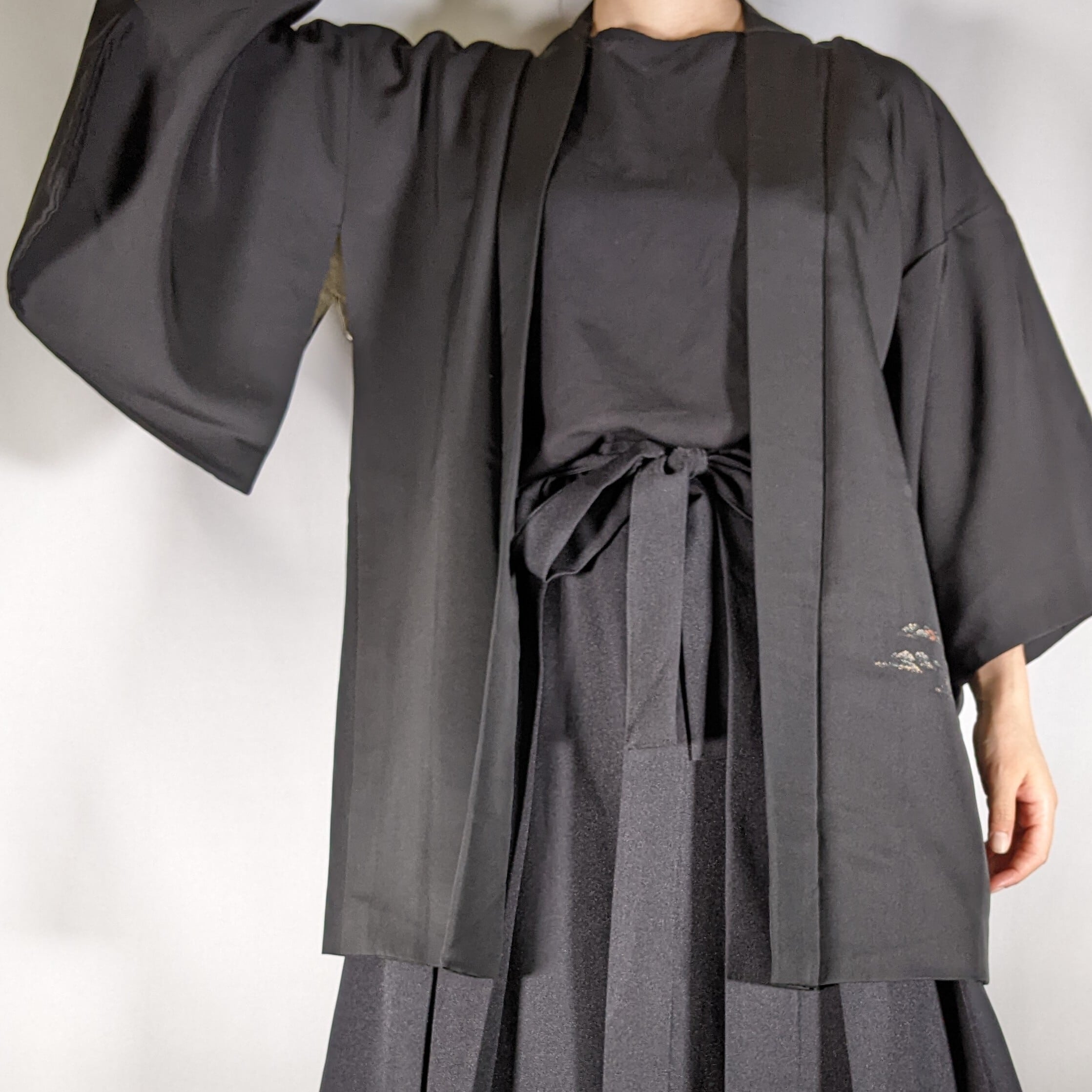 【14321】 ヴィンテージ 黒羽織 織り出し模様 和洋折衷コーデ / Japanese vintage kimono black haori jacket