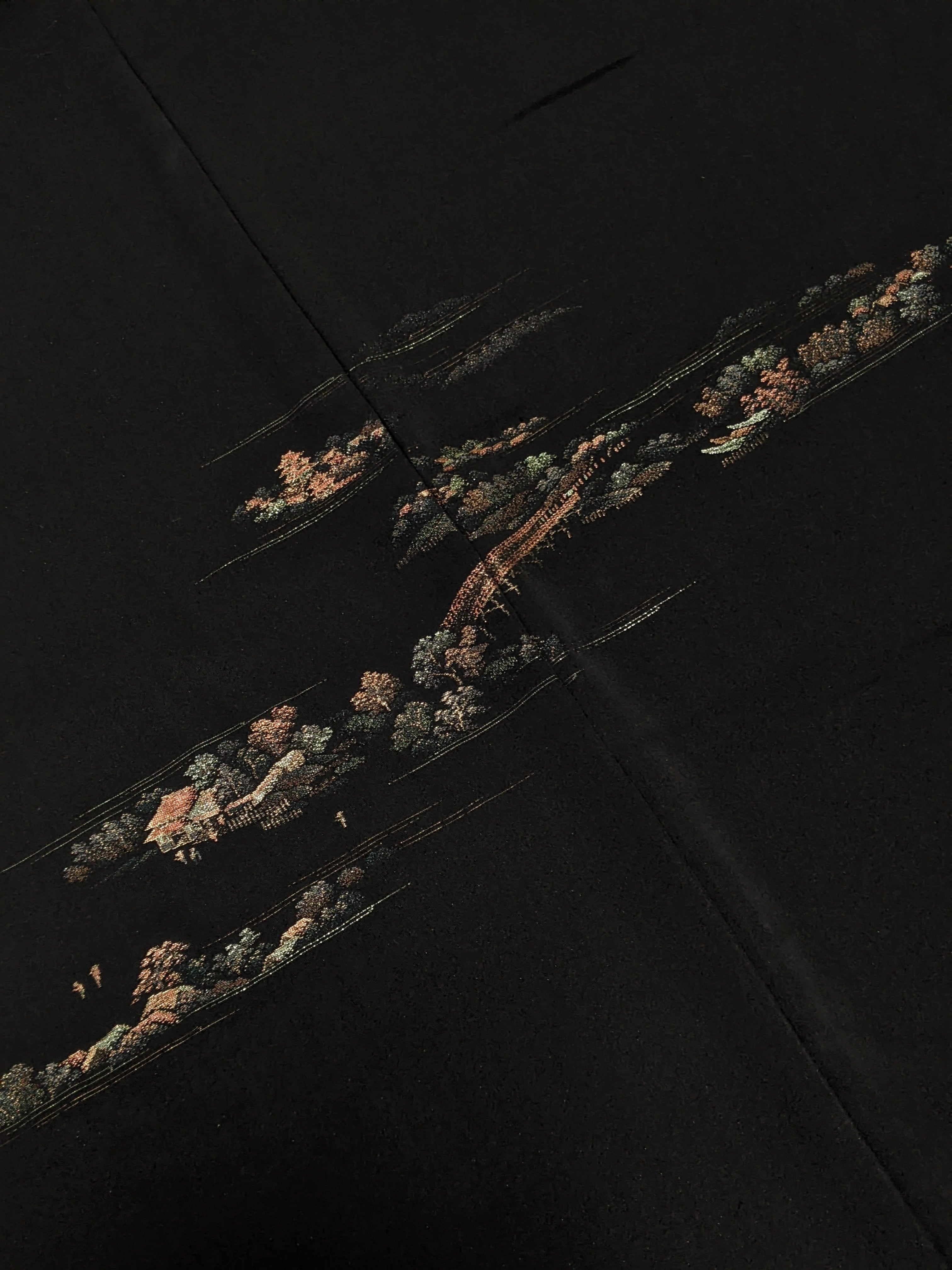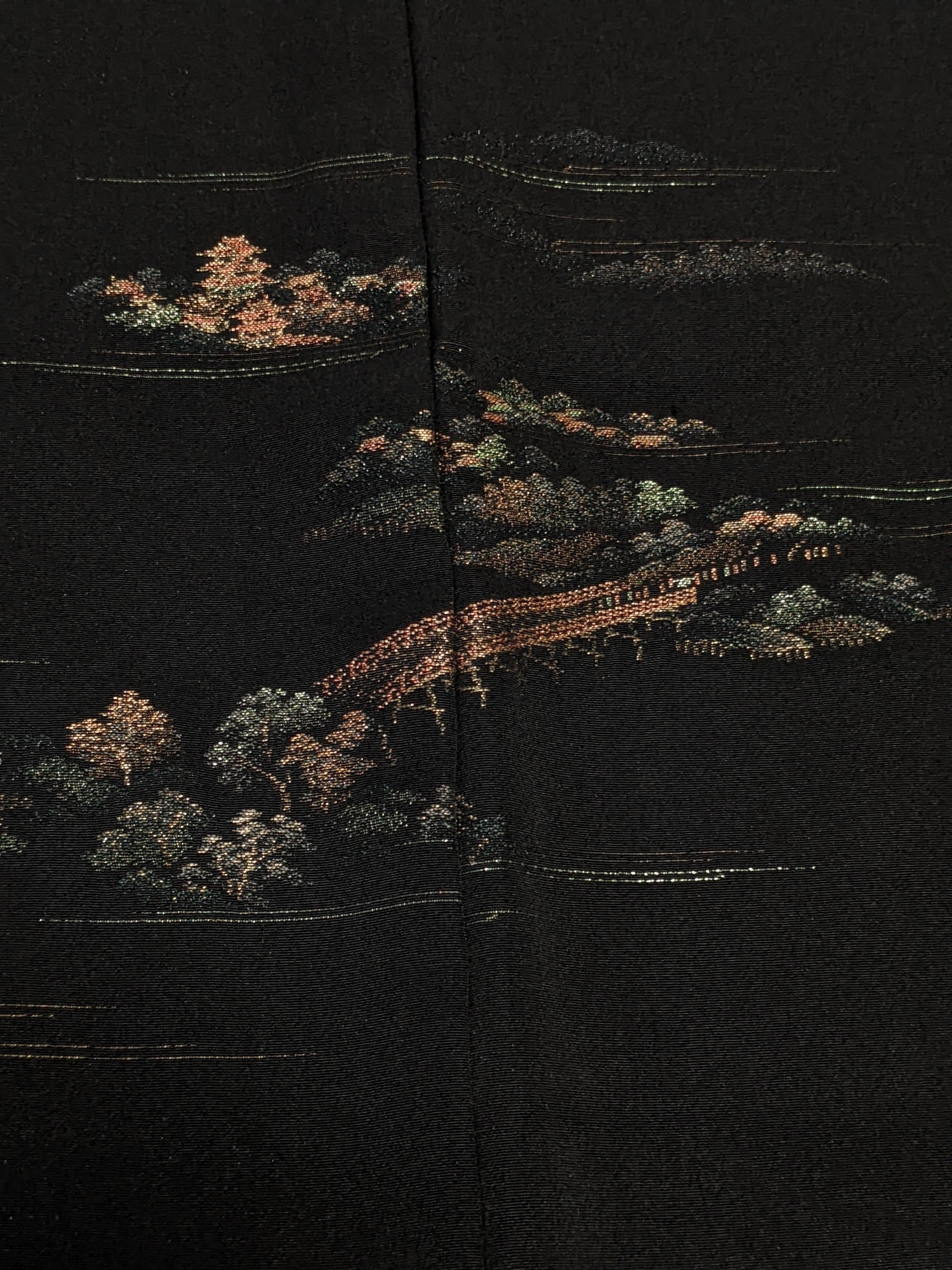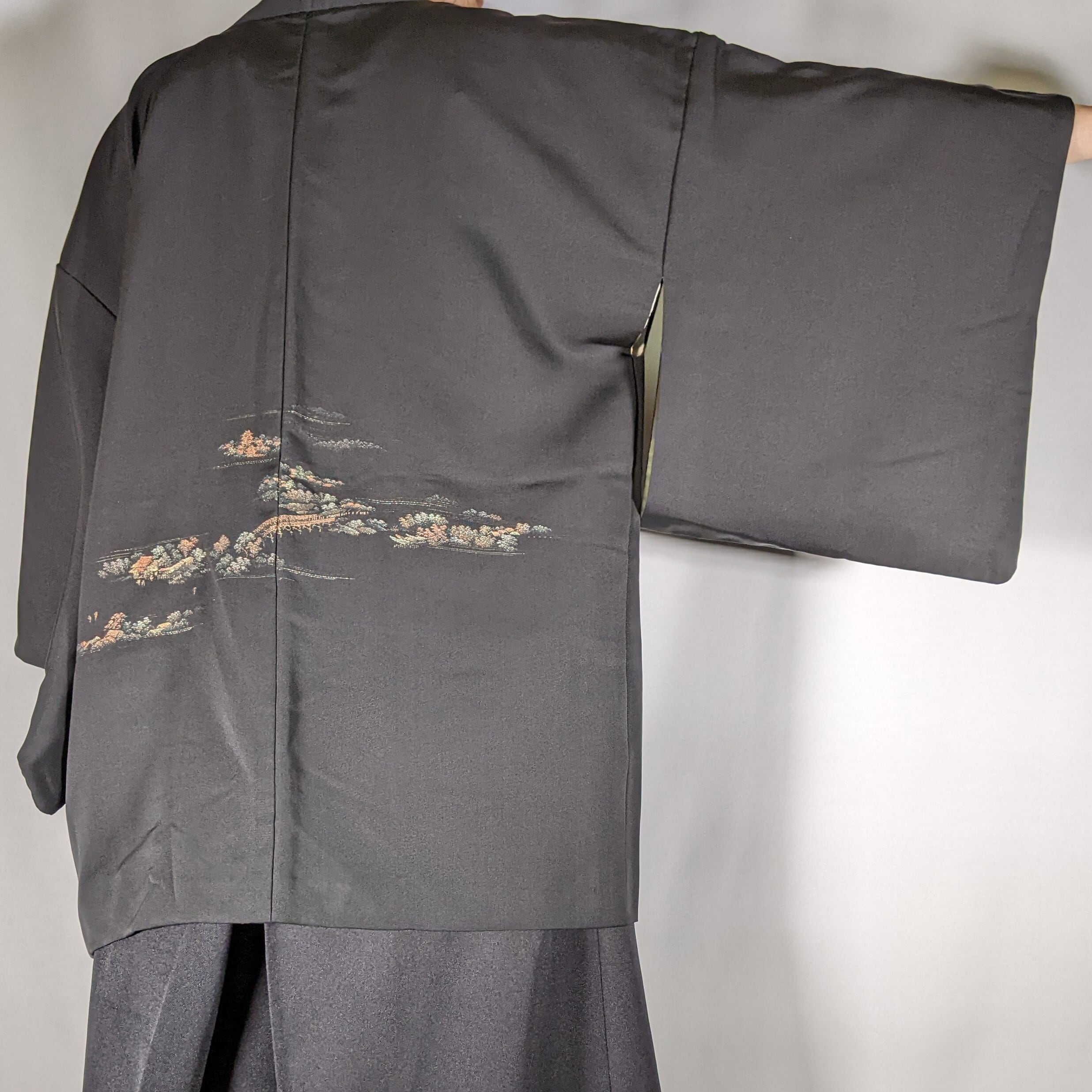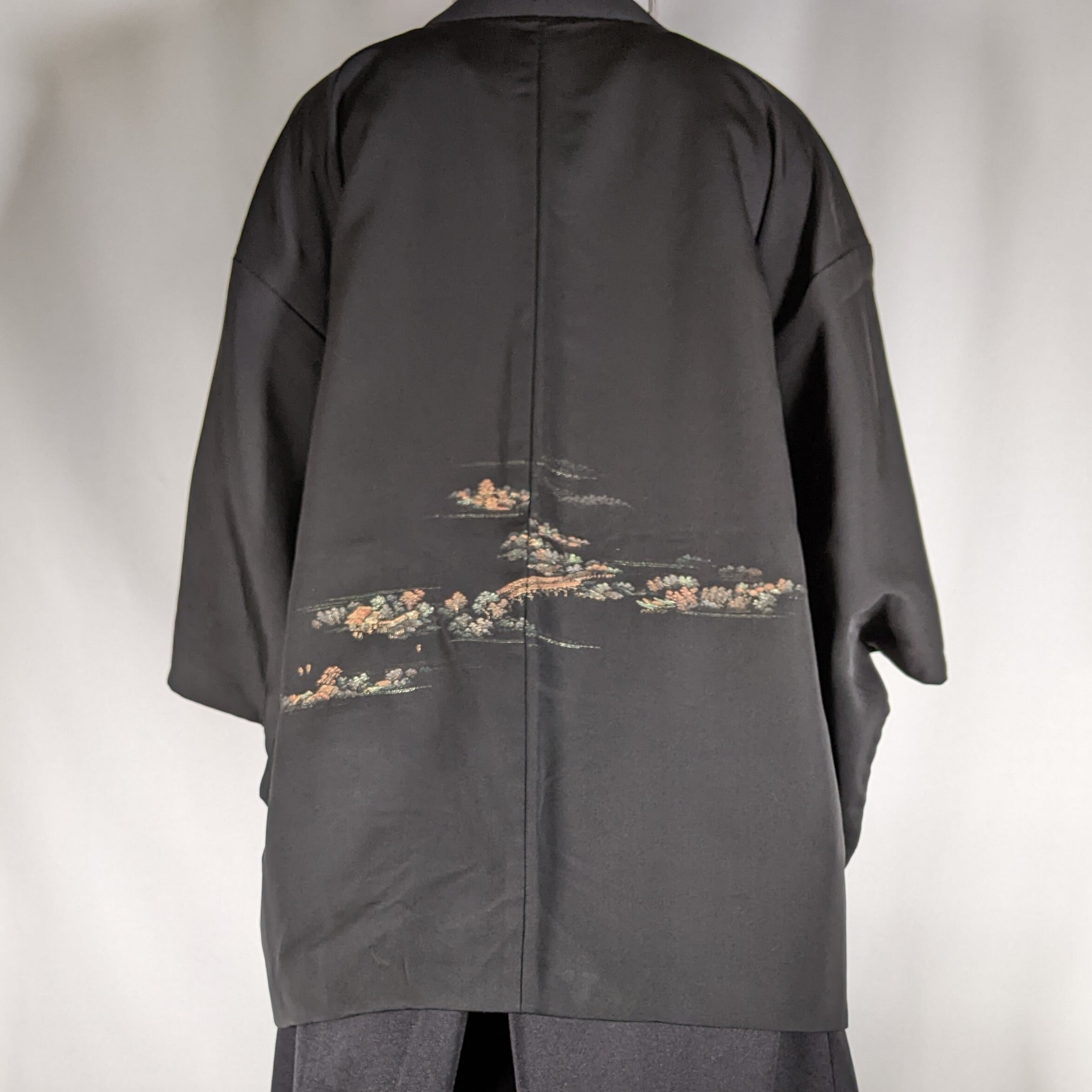 【14321】 ヴィンテージ 黒羽織 織り出し模様 和洋折衷コーデ / Japanese vintage kimono black haori jacket