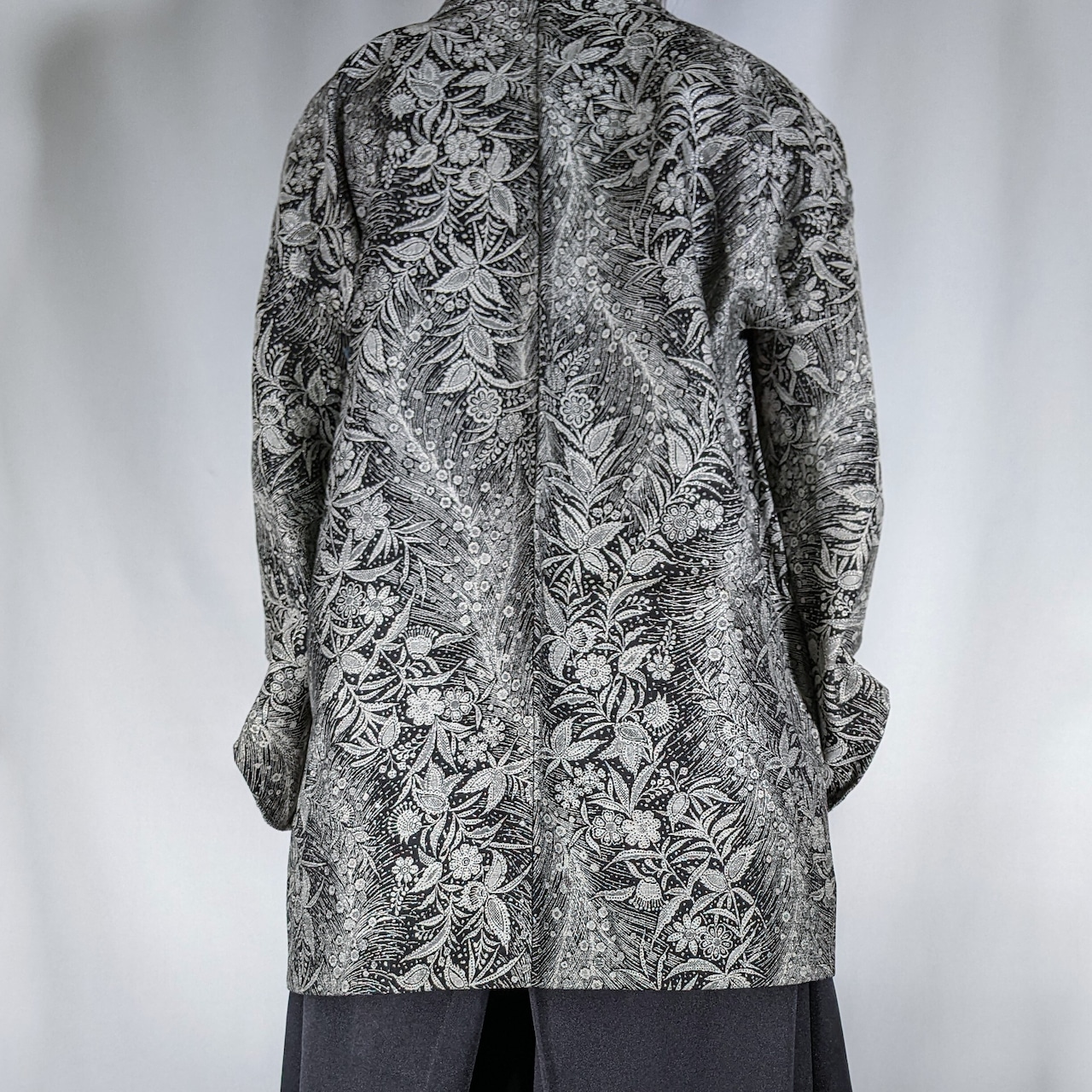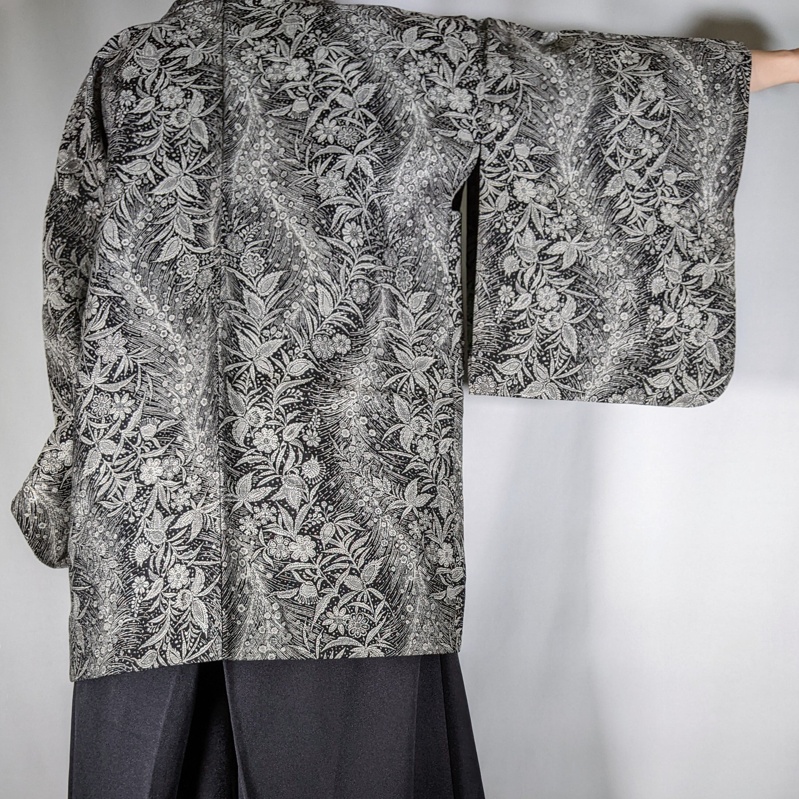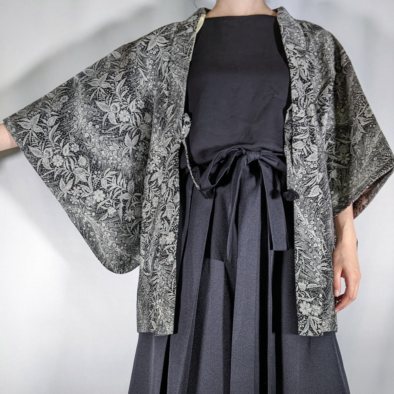 【14334】 ヴィンテージ 色羽織 黒 銀 豪華 花模様 和洋折衷コーデ / Japanese vintage kimono haori jacket