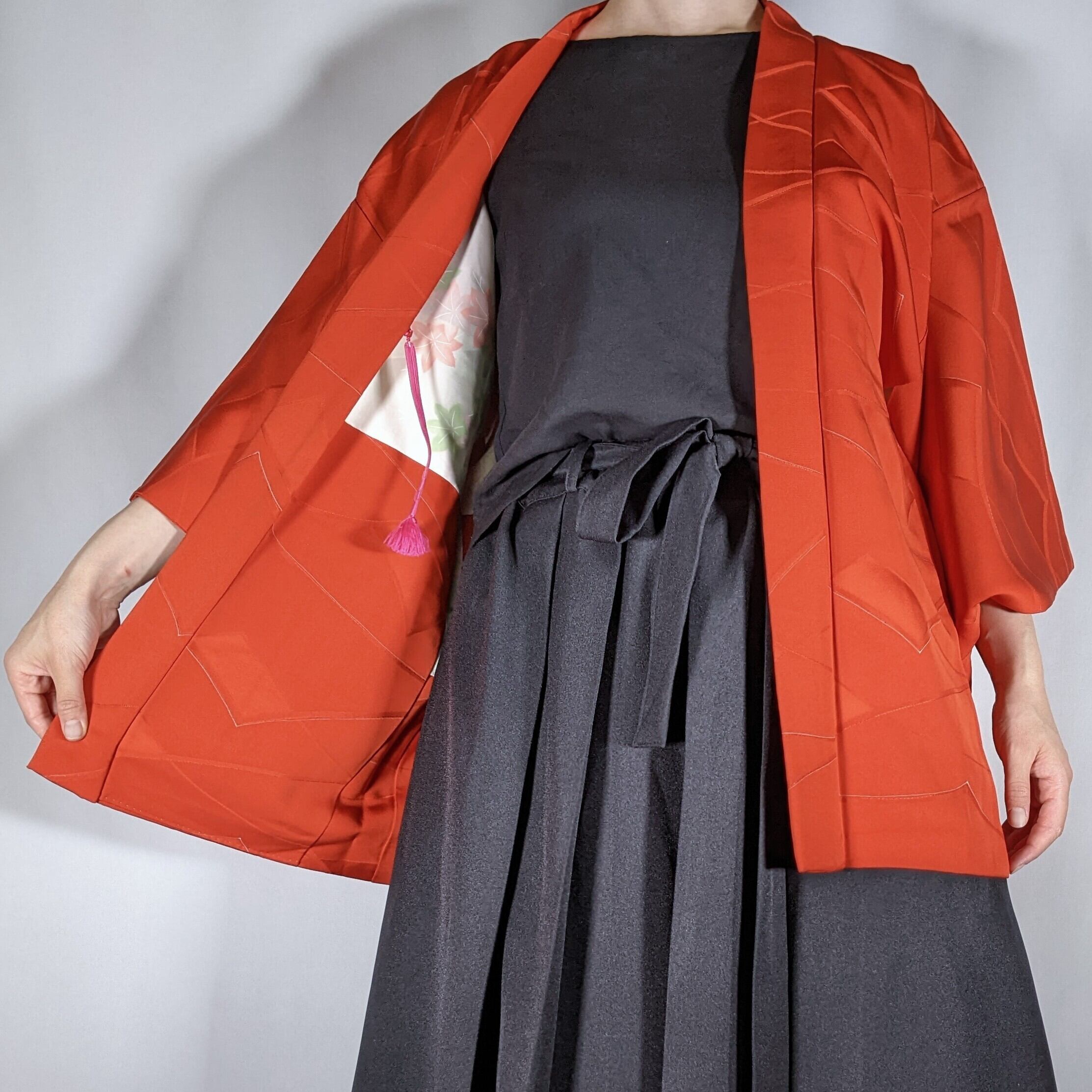 【14342】 ヴィンテージ 色羽織 オレンジ 和洋折衷コーデ / Japanese vintage kimono haori jacket