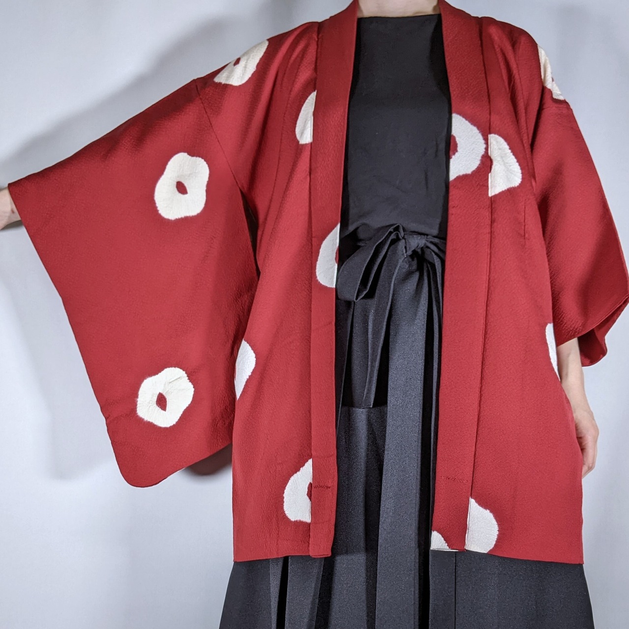 【14345】 ヴィンテージ 色羽織 赤 和洋折衷コーデ / Japanese vintage kimono haori jacket