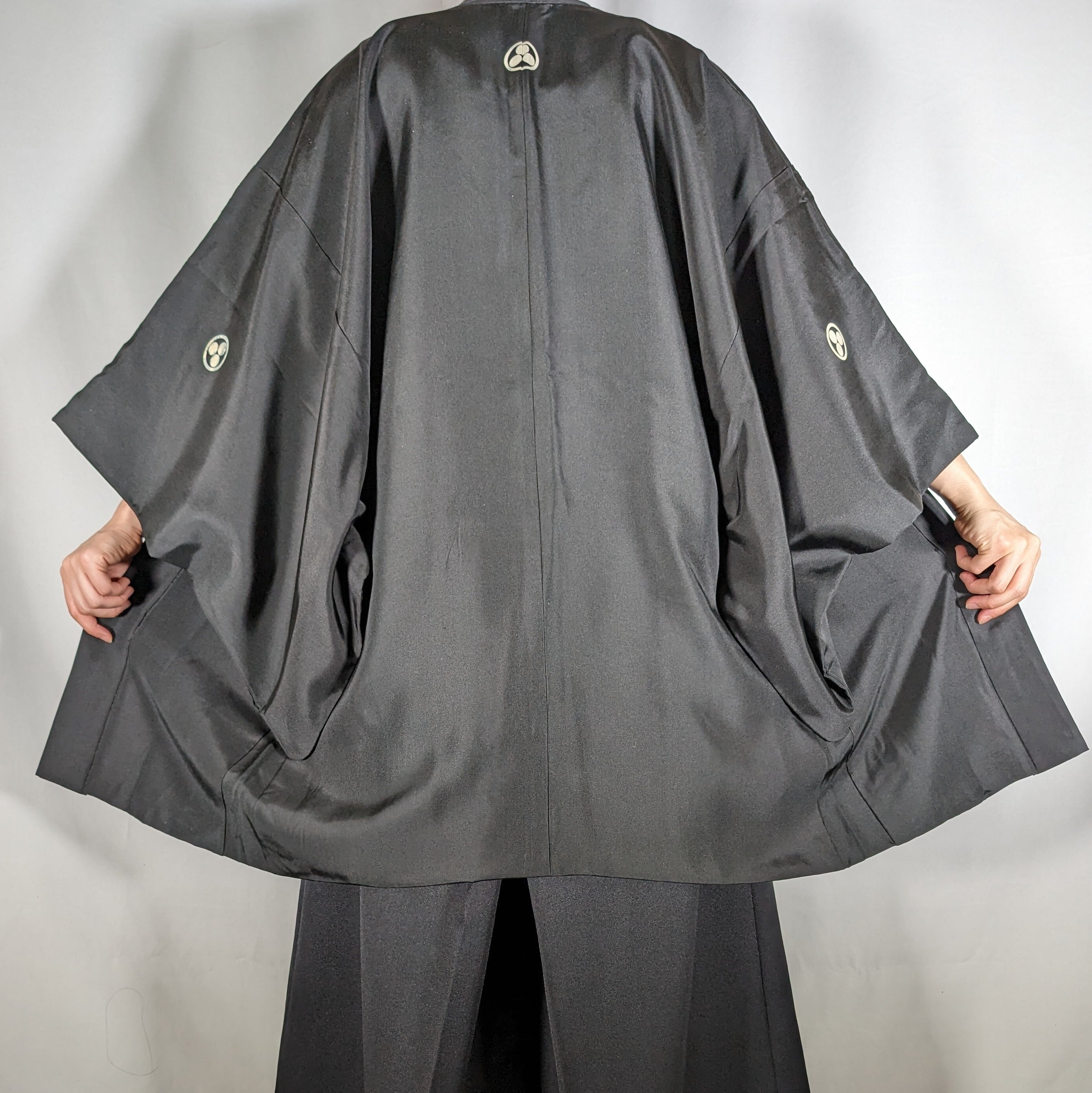 【14350】 ヴィンテージ 男物羽織 黒 和洋折衷コーデ / Japanese vintage kimono Men's haori jacket
