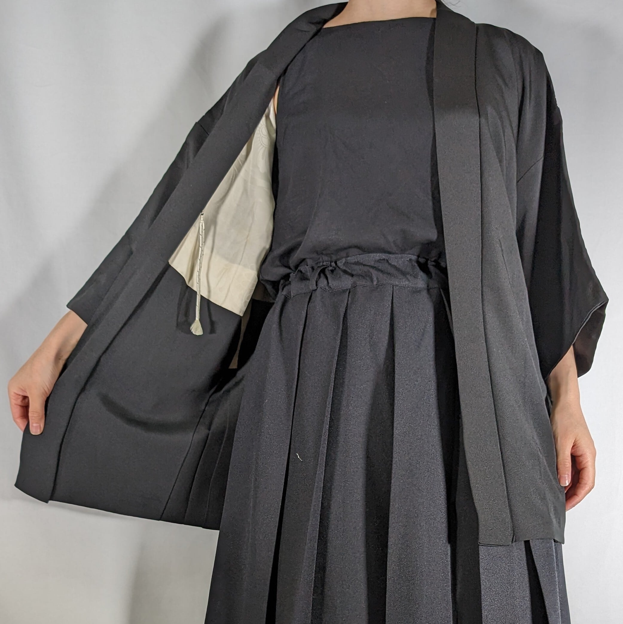 【14393】 ヴィンテージ 黒羽織 無地 和洋折衷コーデ / Japanese vintage kimono black haori jacket