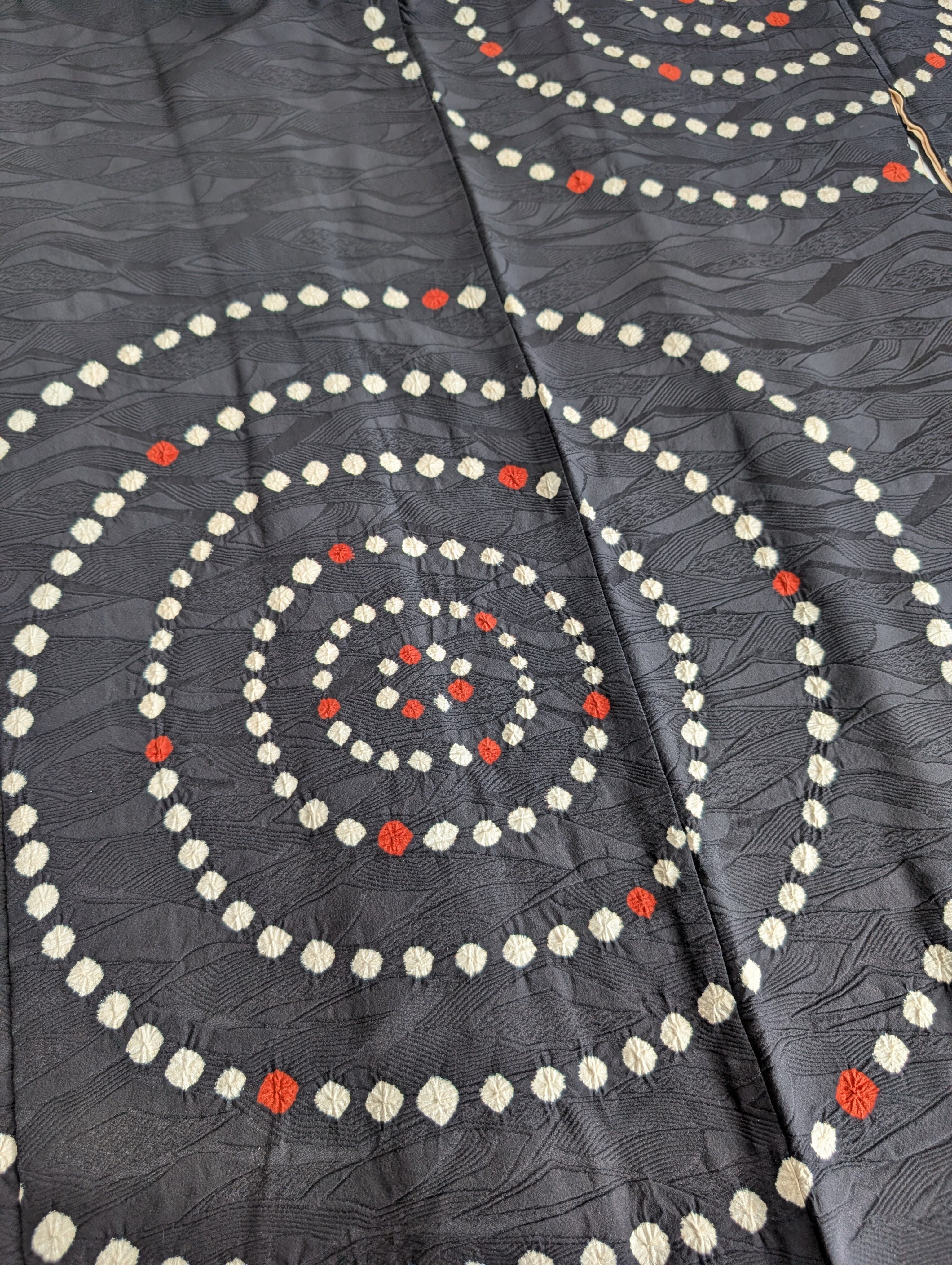 【14402】 ヴィンテージ 黒羽織 抽象模様 赤 白 和洋折衷コーデ / Japanese vintage kimono black haori jacket