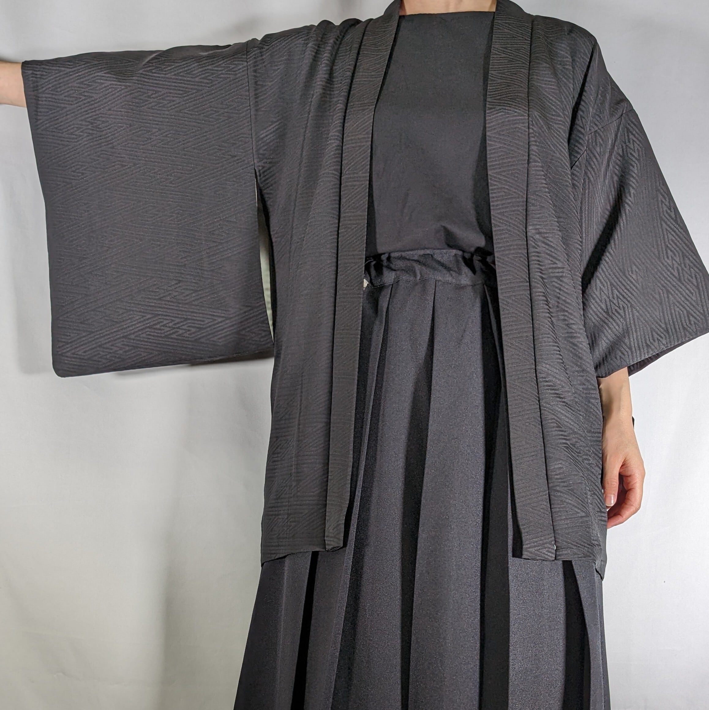 【14406】 ヴィンテージ 黒羽織 地模様 和洋折衷コーデ / Japanese vintage kimono black haori jacket
