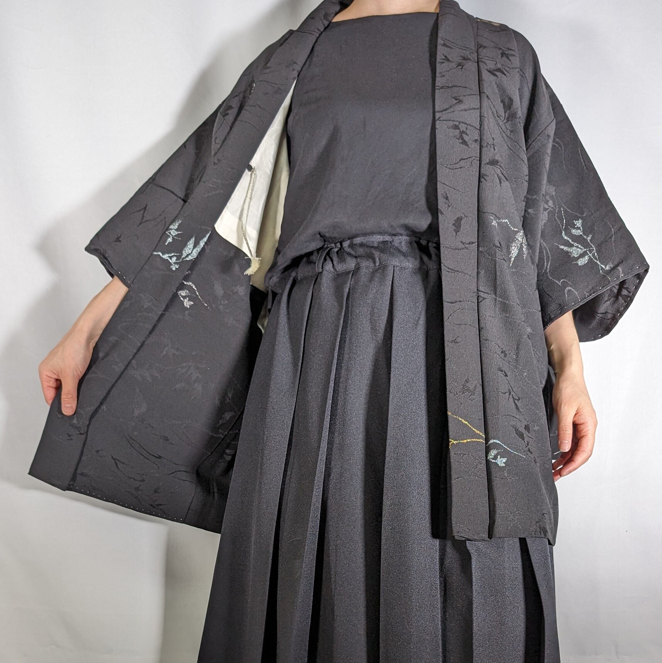 【14408】 ヴィンテージ 黒羽織 和洋折衷コーデ / Japanese vintage kimono black haori jacket