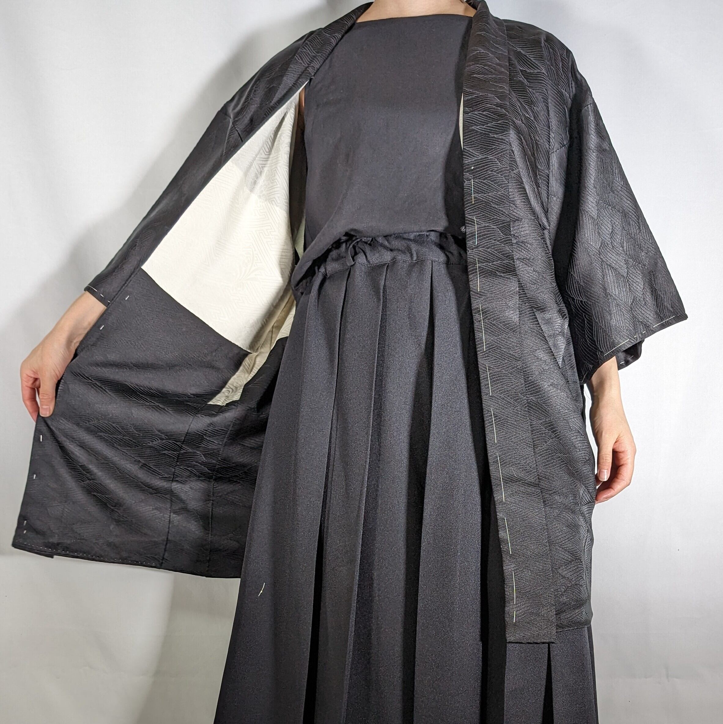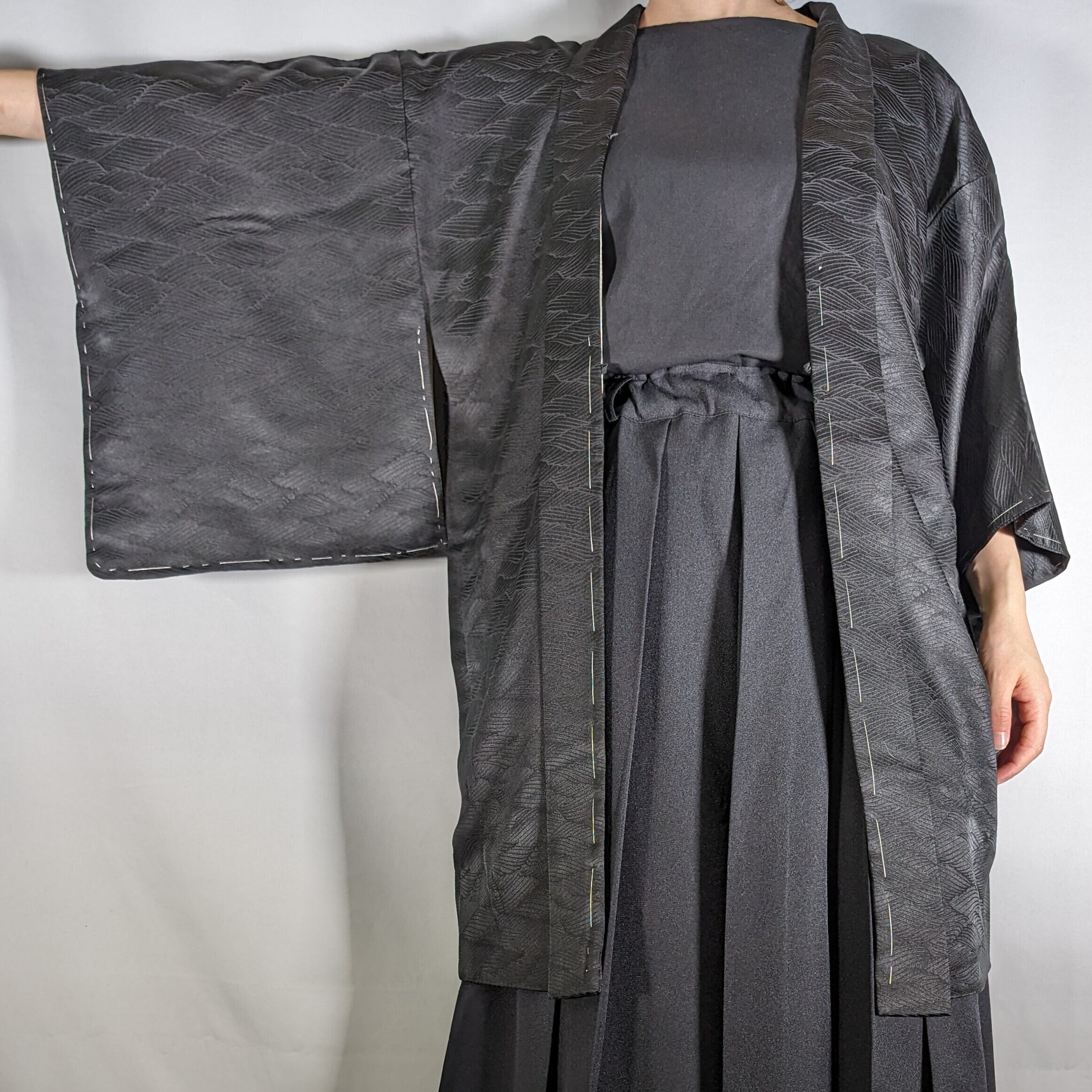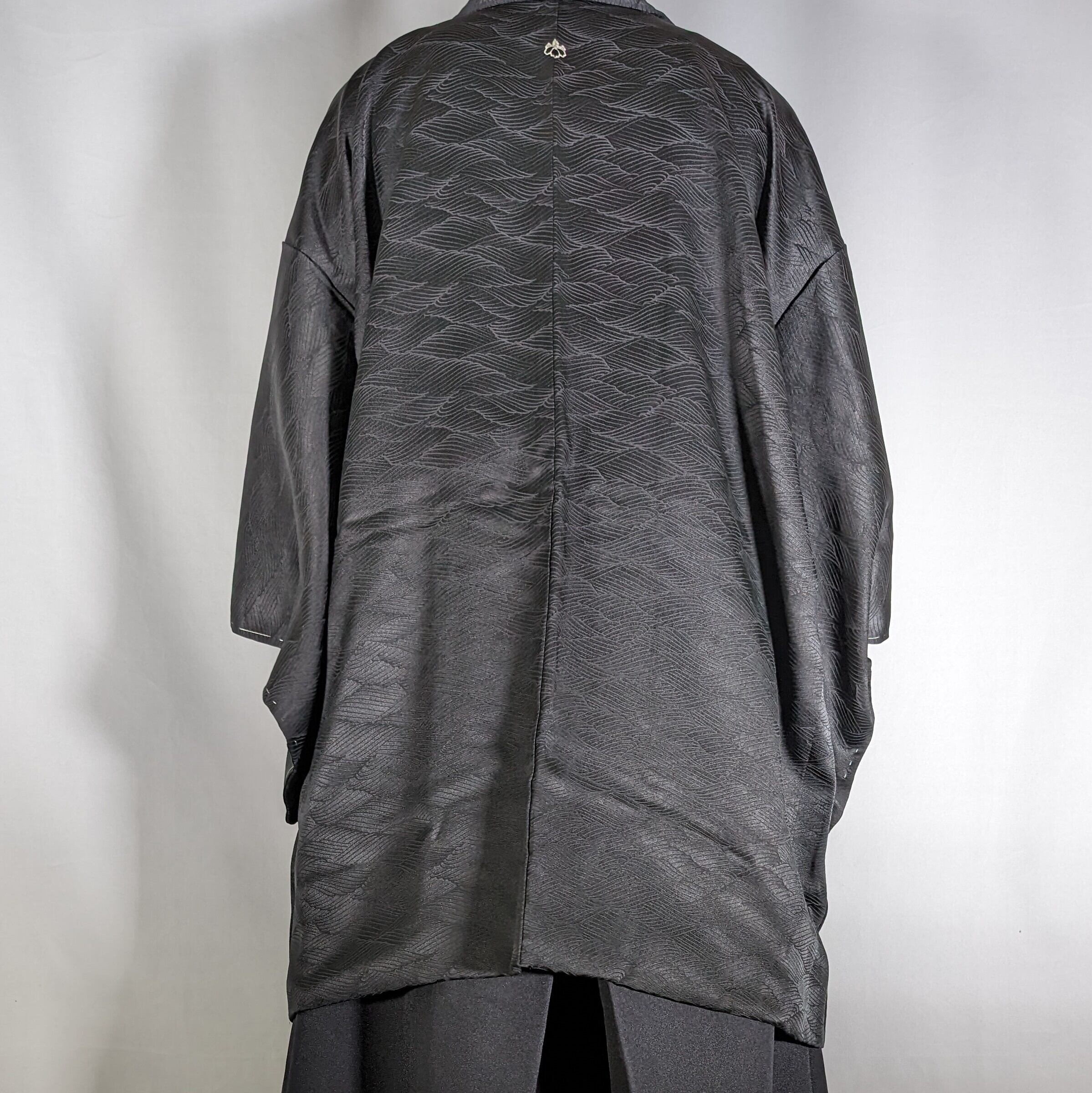 【14413】 ヴィンテージ 黒羽織 地模様 和洋折衷コーデ / Japanese vintage kimono black haori jacket