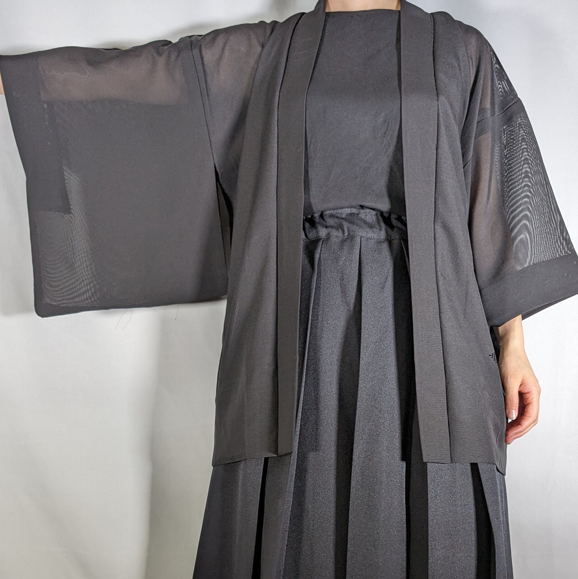【14415】 ヴィンテージ 夏物羽織 黒 青 和洋折衷コーデ / Japanese vintage kimono black sheer haori jacket