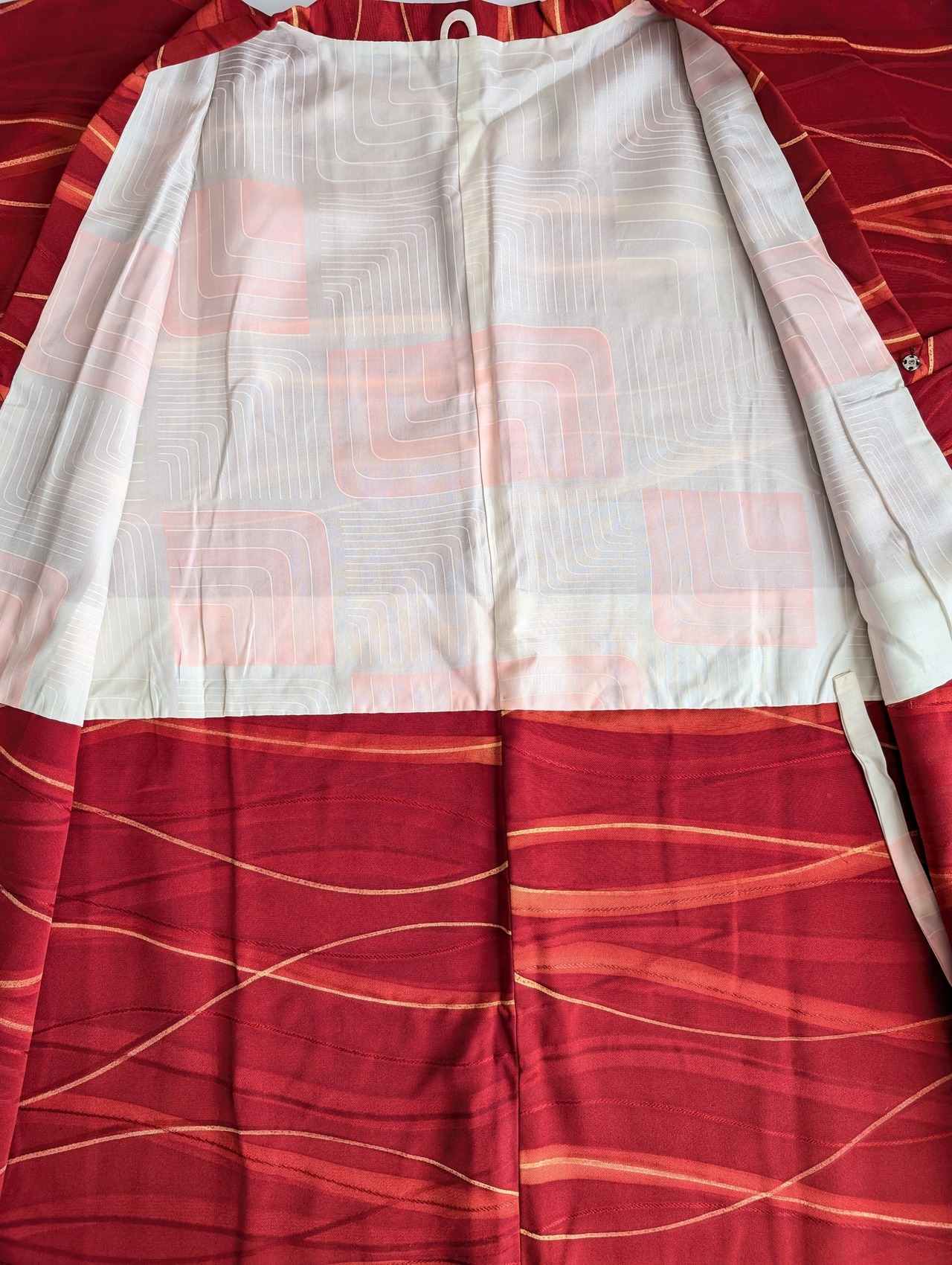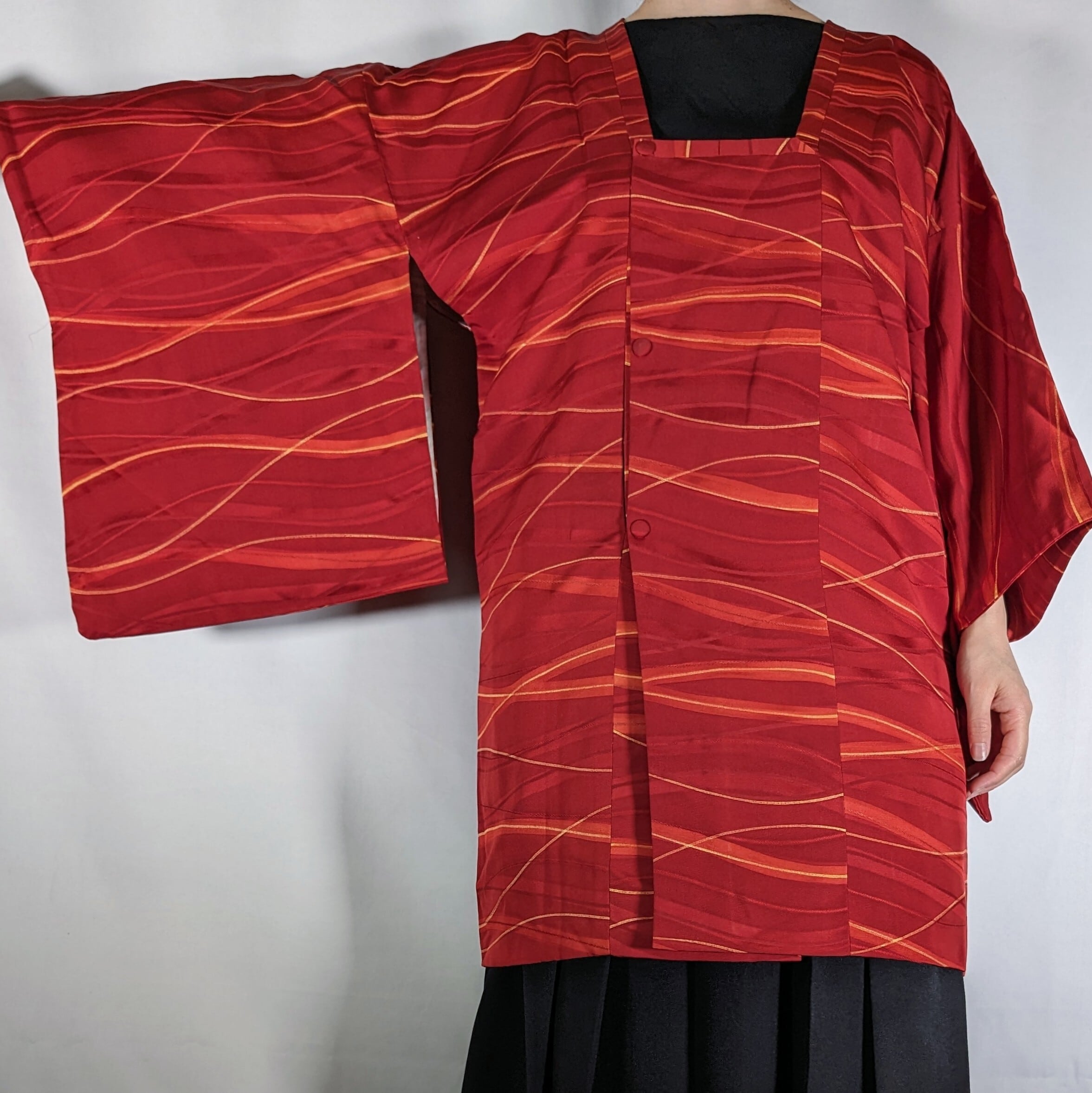 【14417】 ヴィンテージ 道行 赤 和洋折衷コーデ / Japanese vintage kimono michiyuki haori jacket