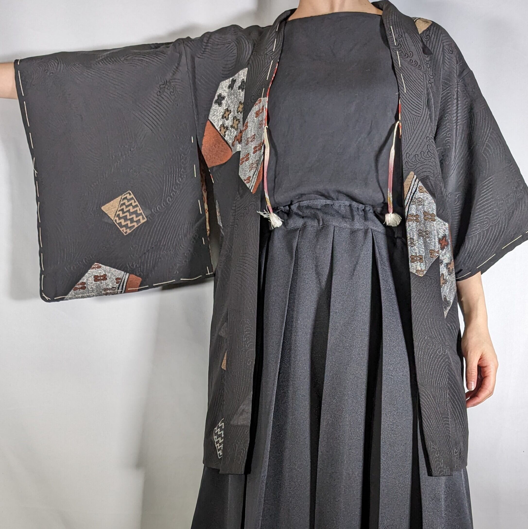 【14429】 ヴィンテージ 黒羽織 和洋折衷コーデ / Japanese vintage kimono black haori jacket