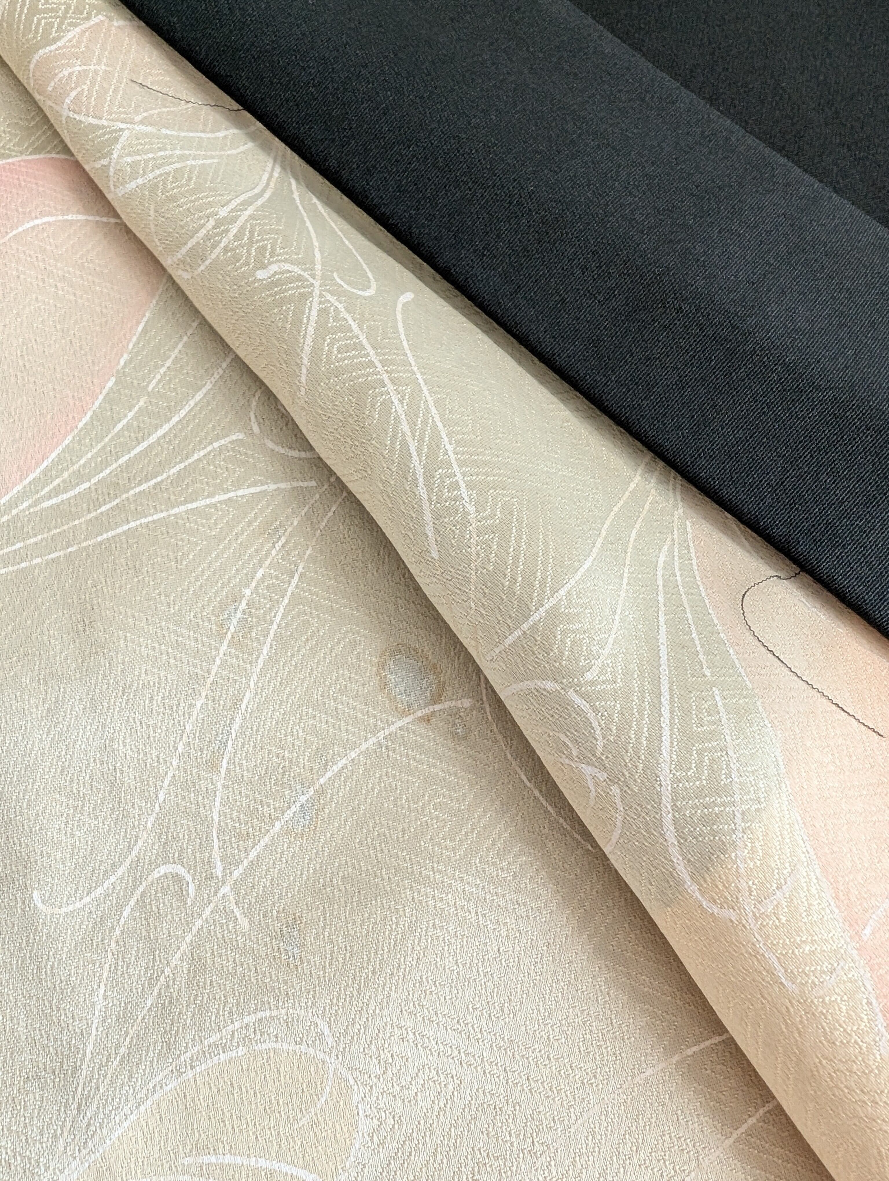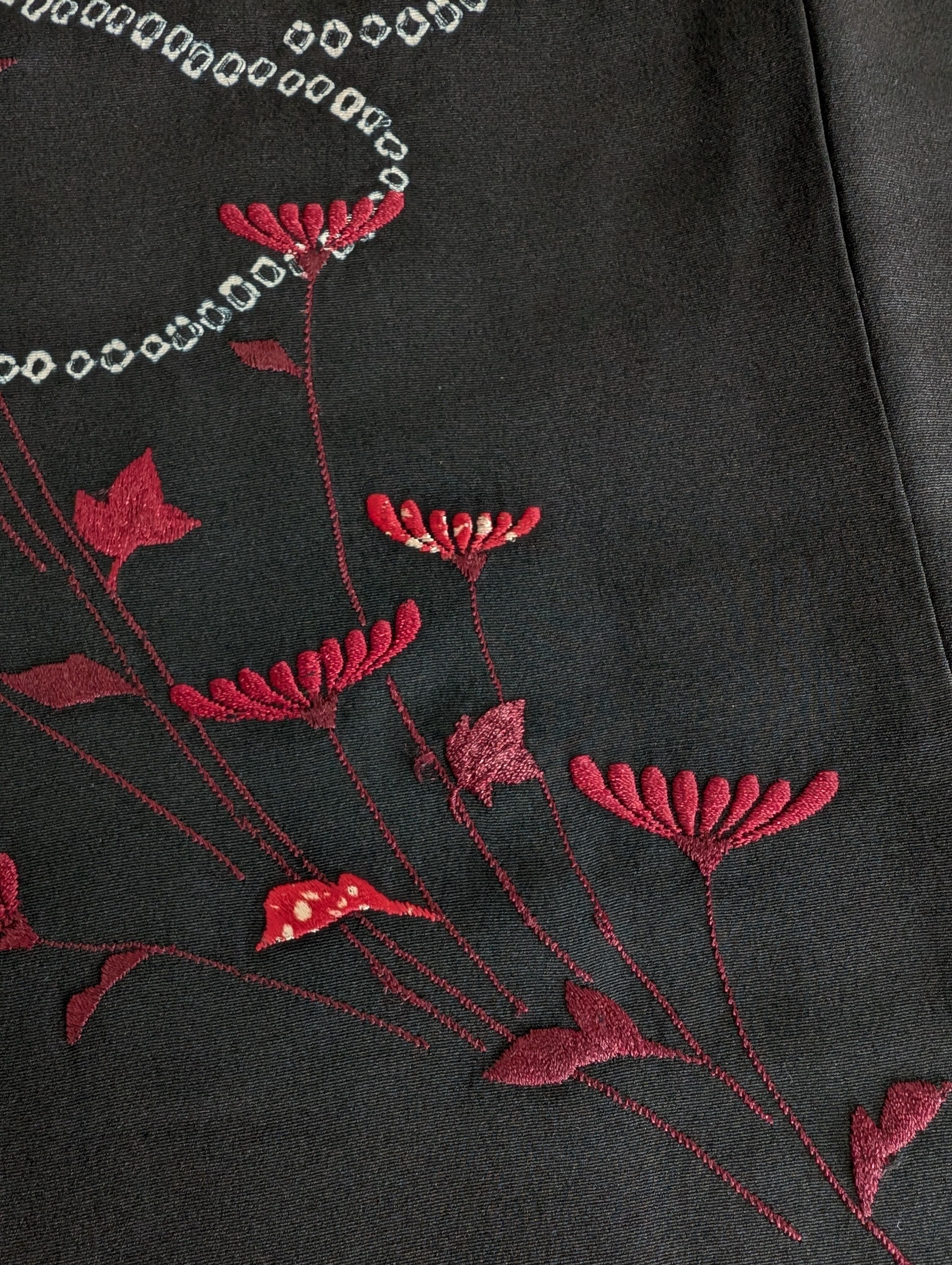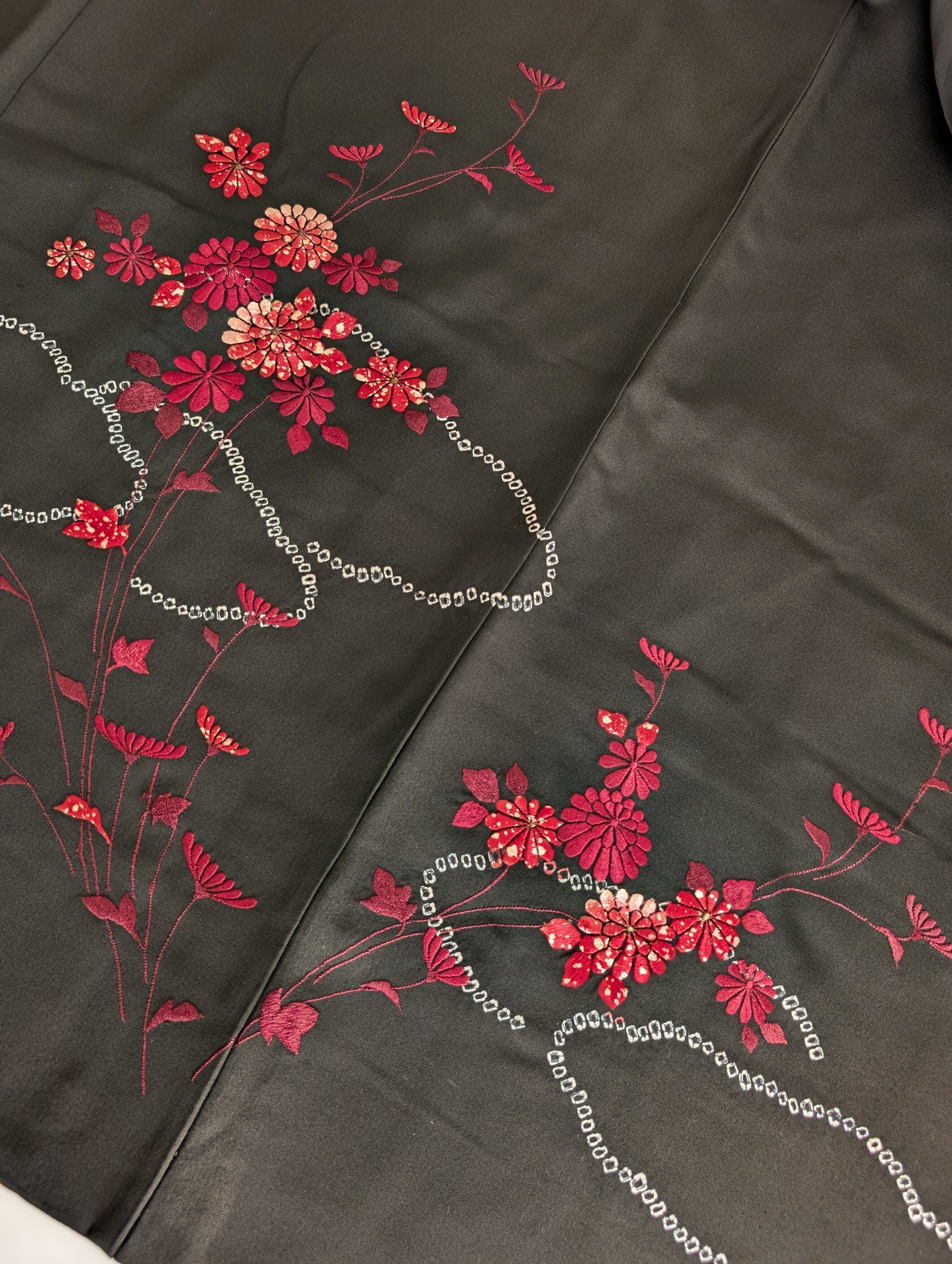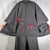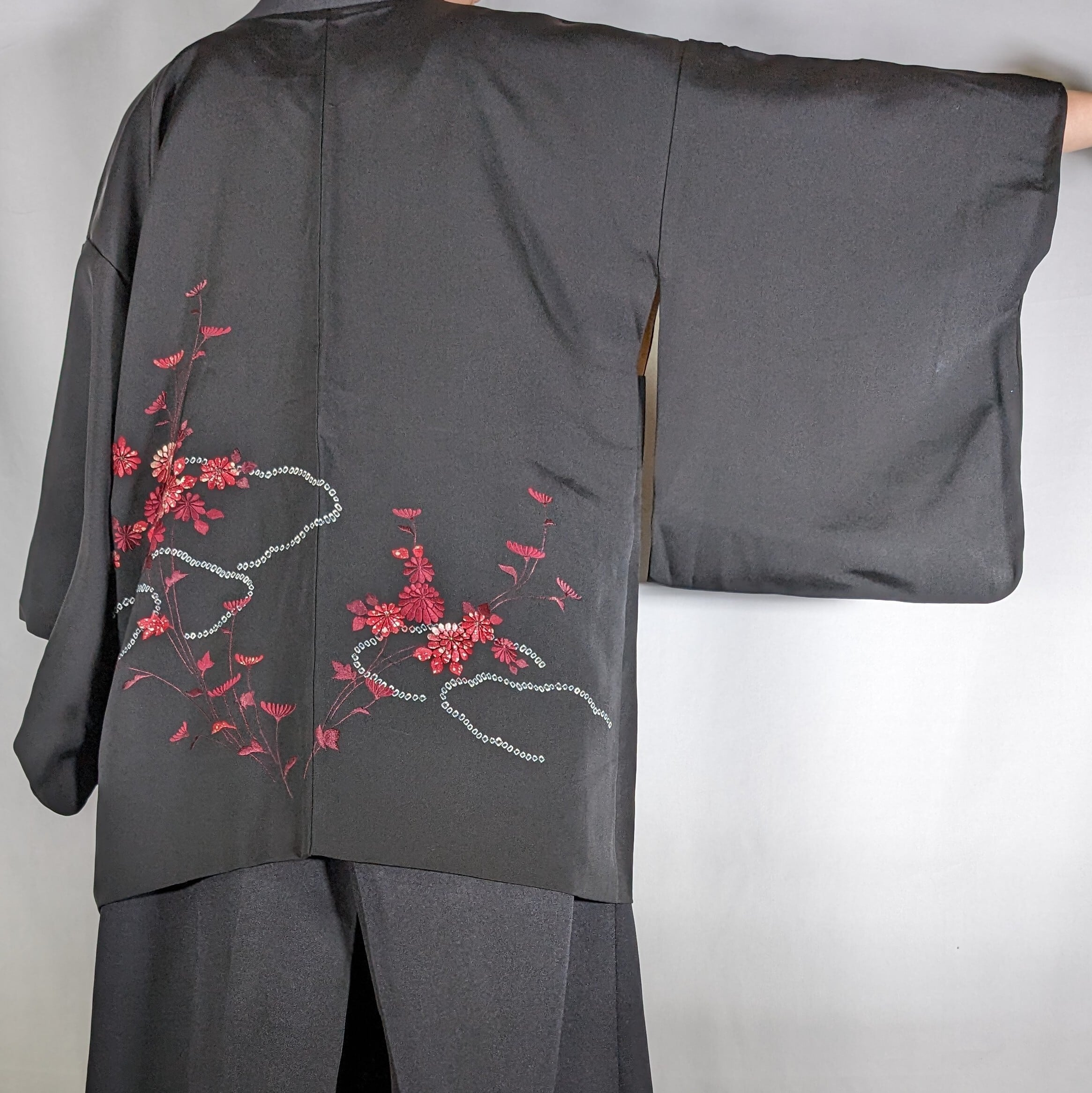 【14430】 ヴィンテージ 黒羽織 刺繍 菊 ピンク 和洋折衷コーデ / Japanese vintage kimono black haori jacket