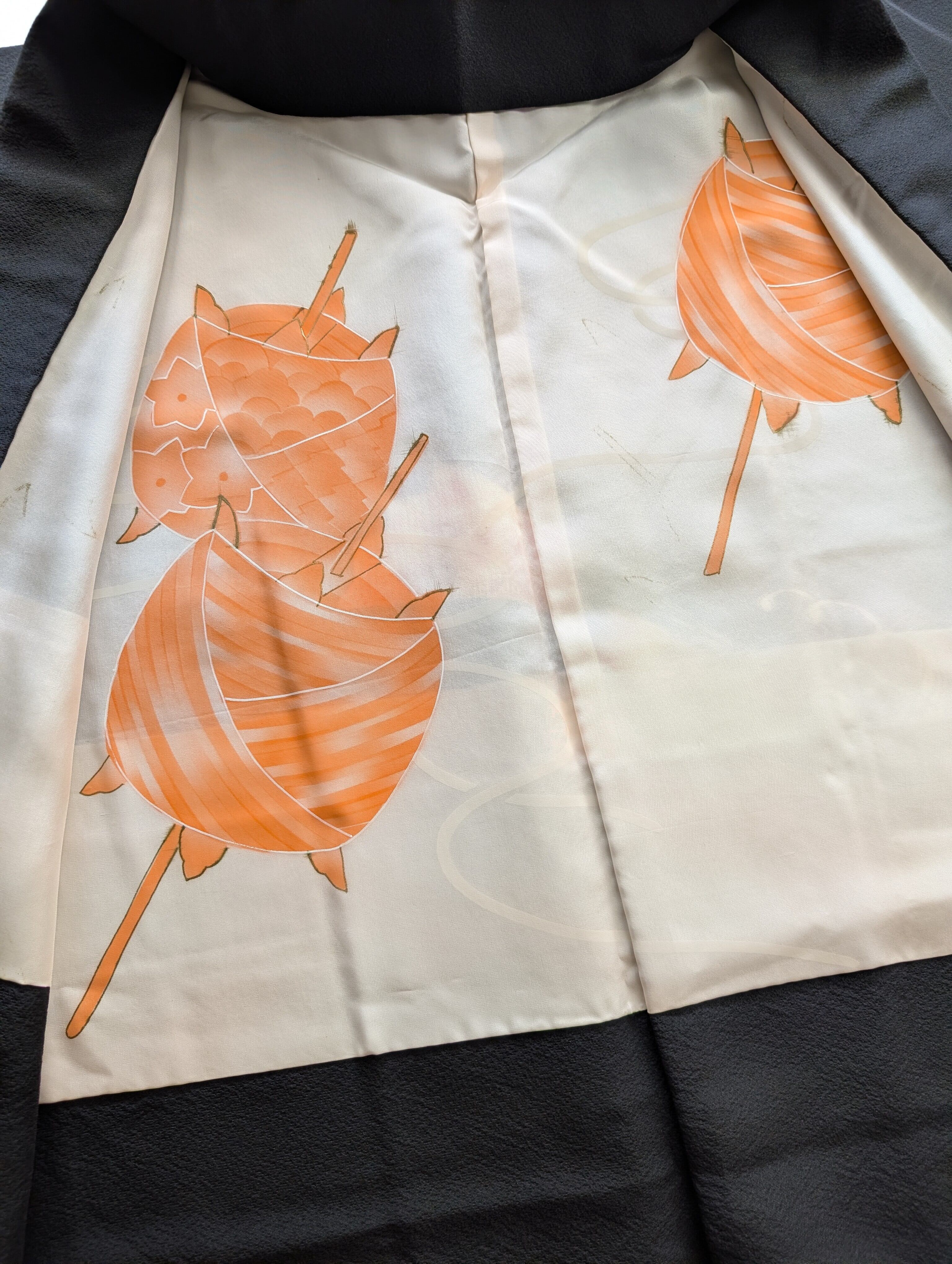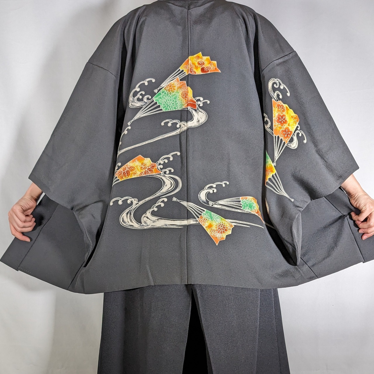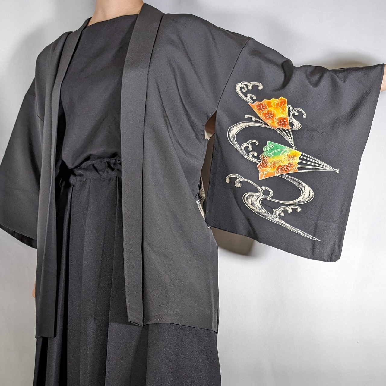 【14431】 ヴィンテージ 夏物羽織 カットワーク 黒 赤 和洋折衷コーデ / Japanese vintage kimono black sheer haori jacket