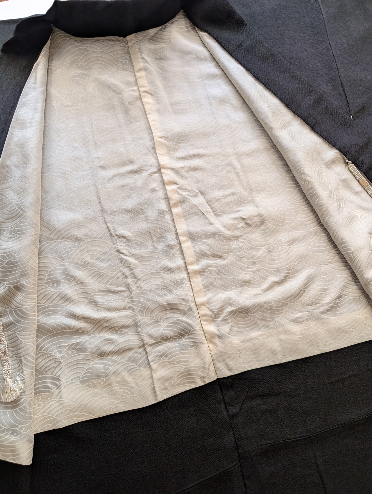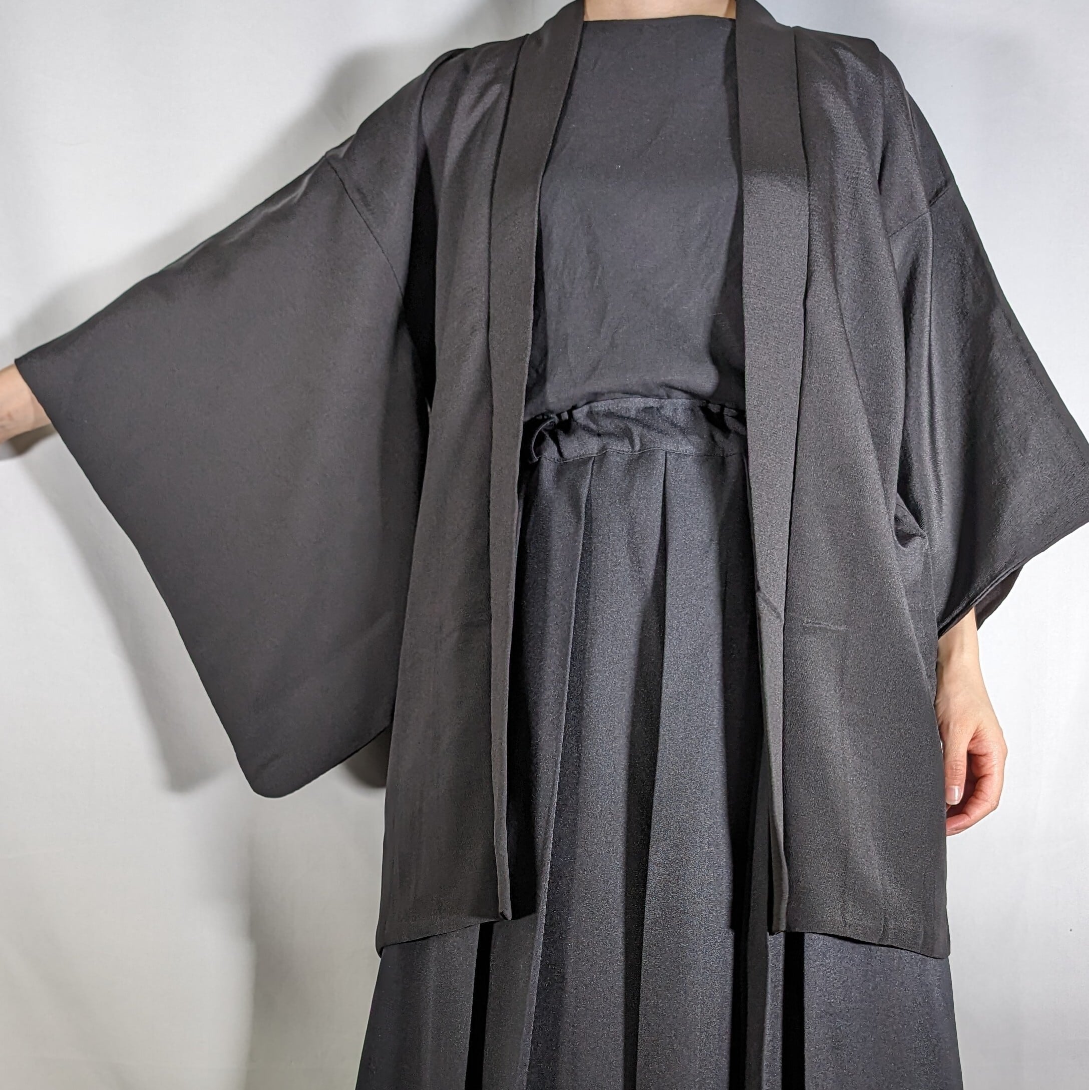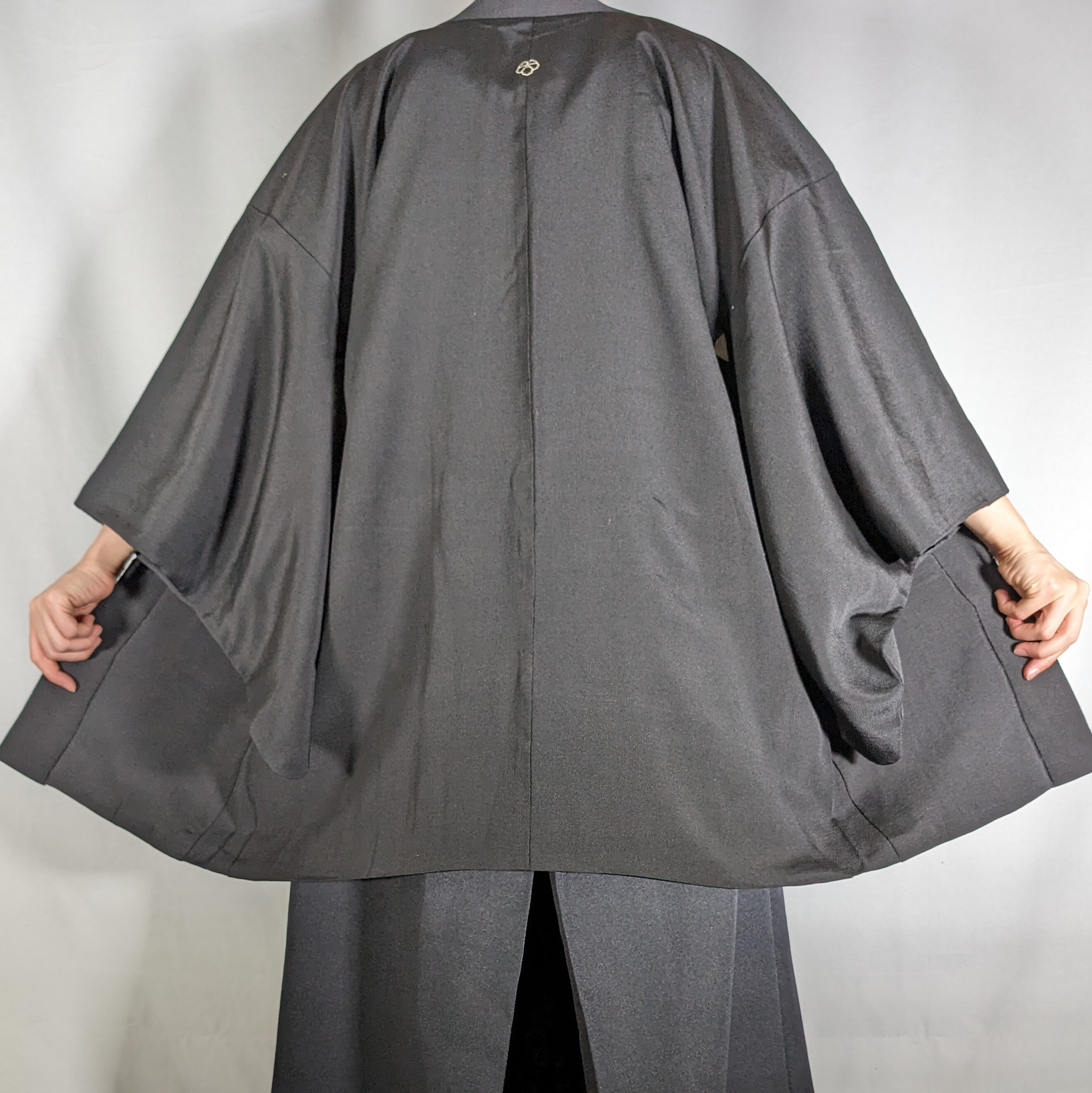 【14434】 ヴィンテージ 黒羽織 無地 和洋折衷コーデ / Japanese vintage kimono black haori jacket