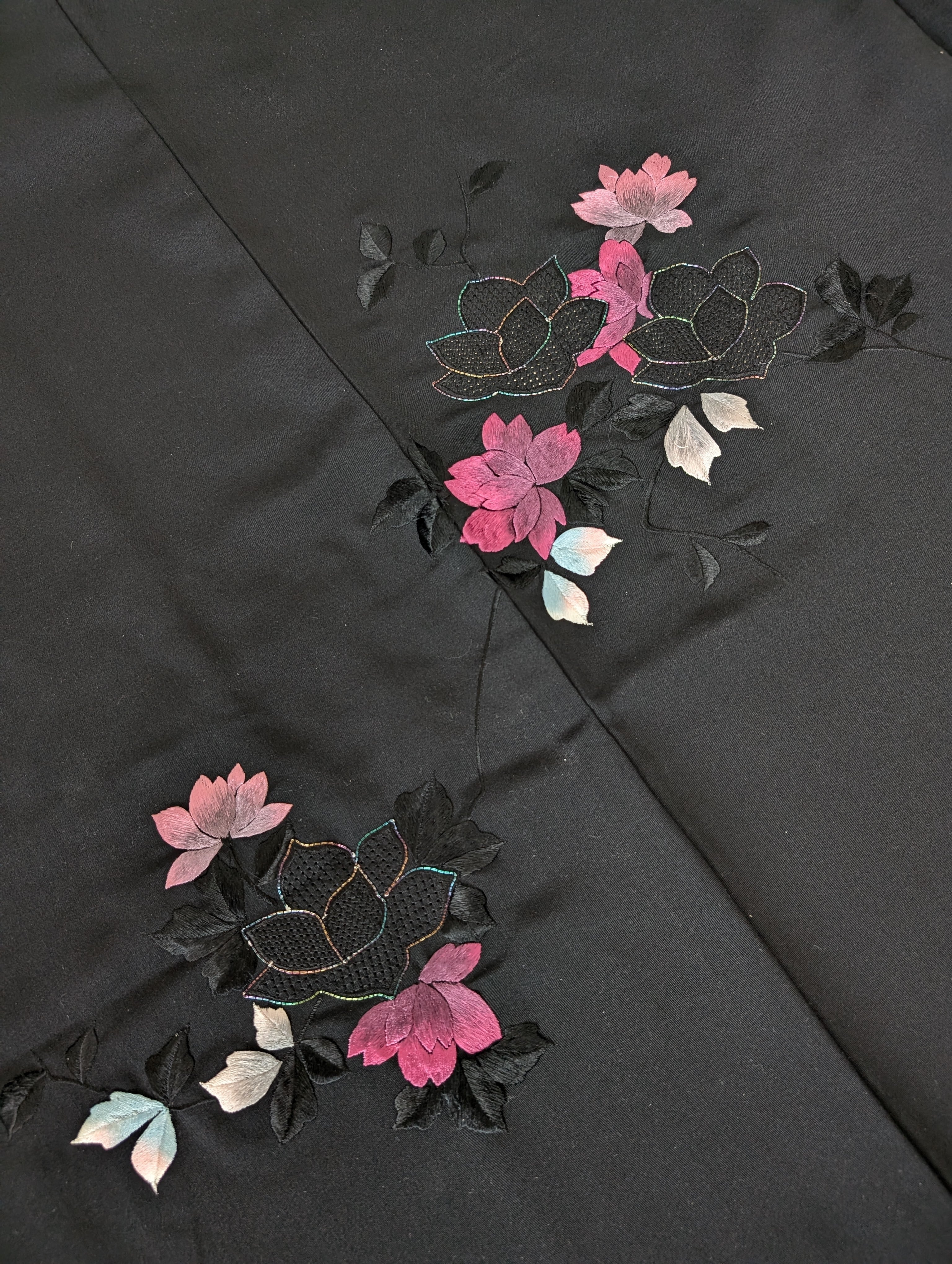 【14444】 ヴィンテージ 黒羽織 刺繍 ピンク 和洋折衷コーデ / Japanese vintage kimono black haori jacket