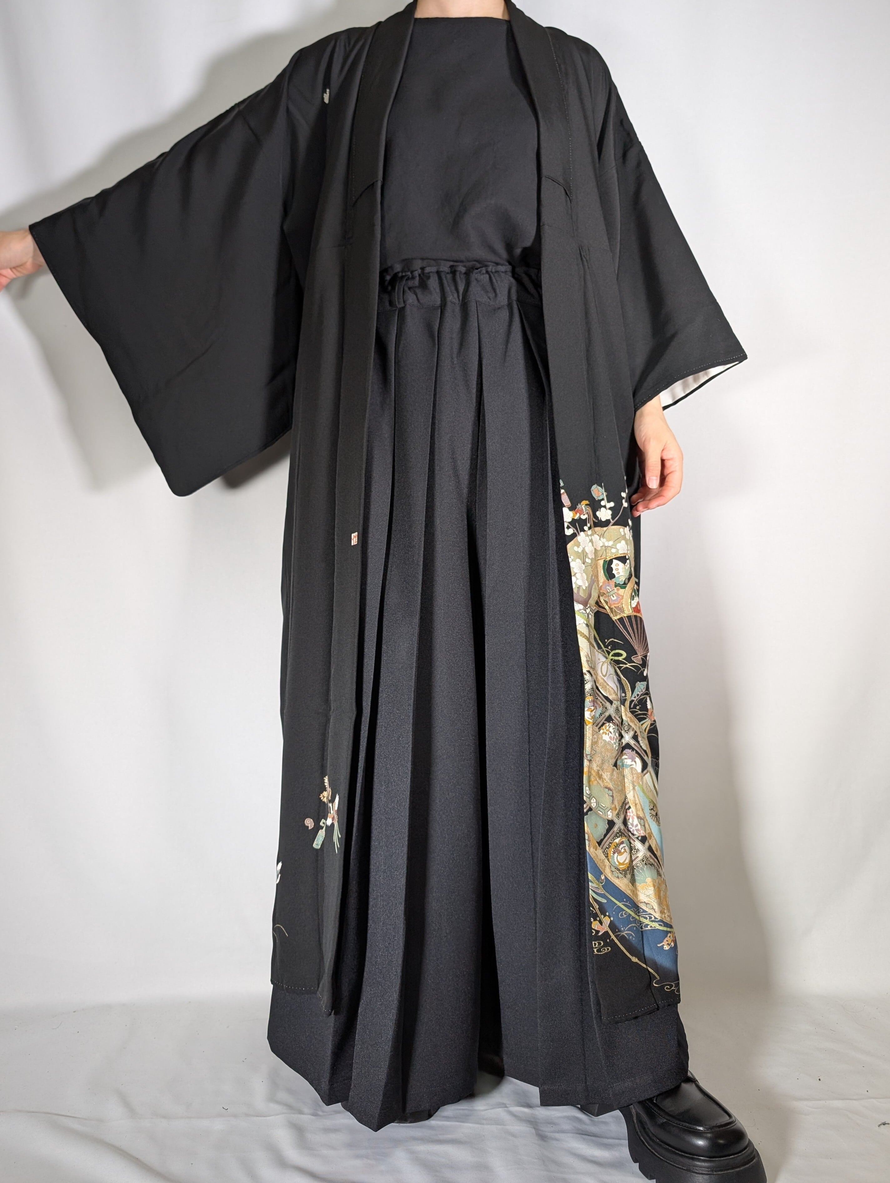 【14466】 着物リメイク 黒留袖 ロングコート kimono tomesode remake long coat black